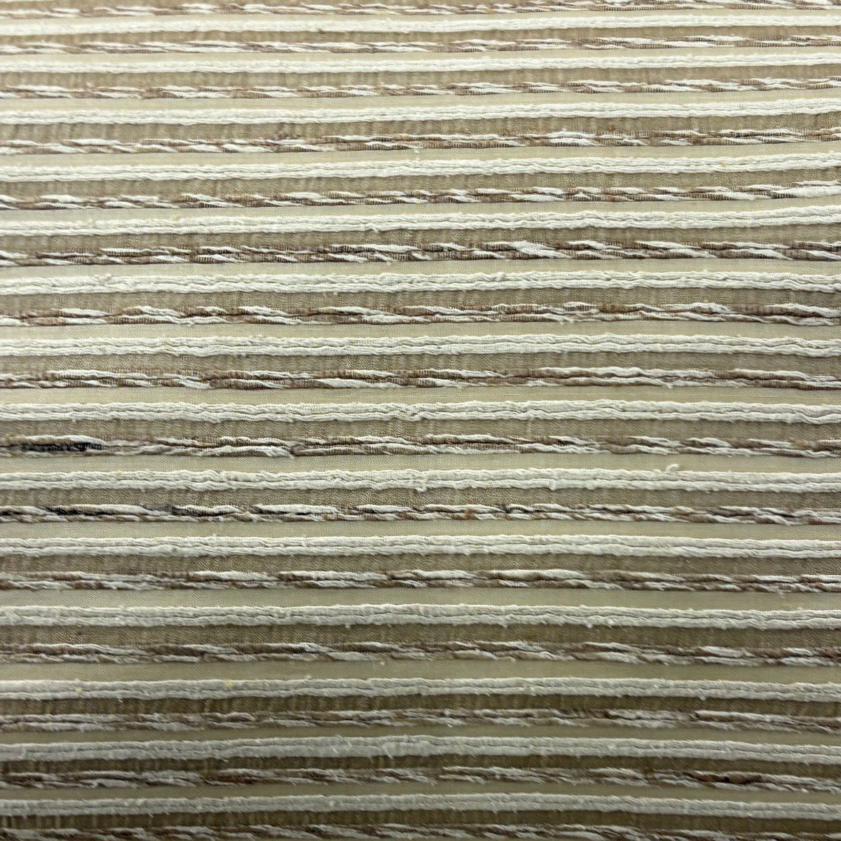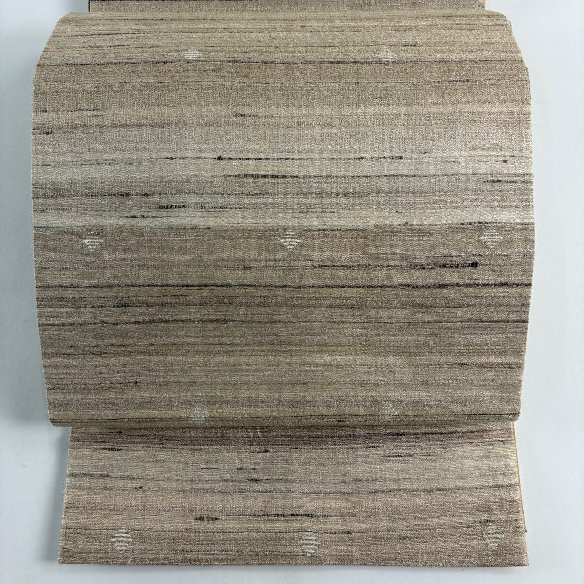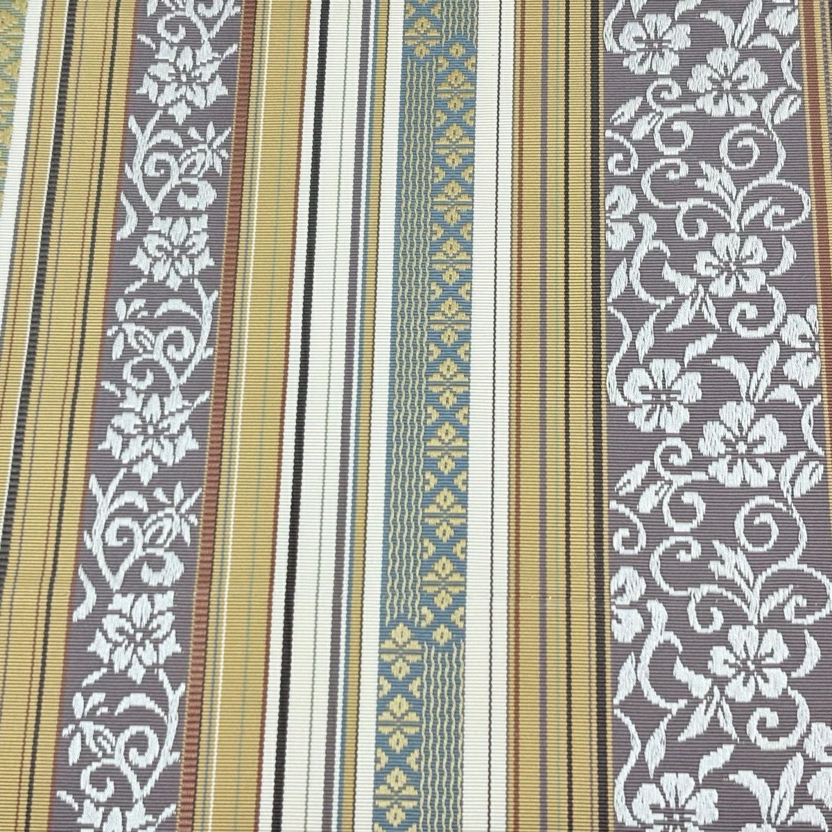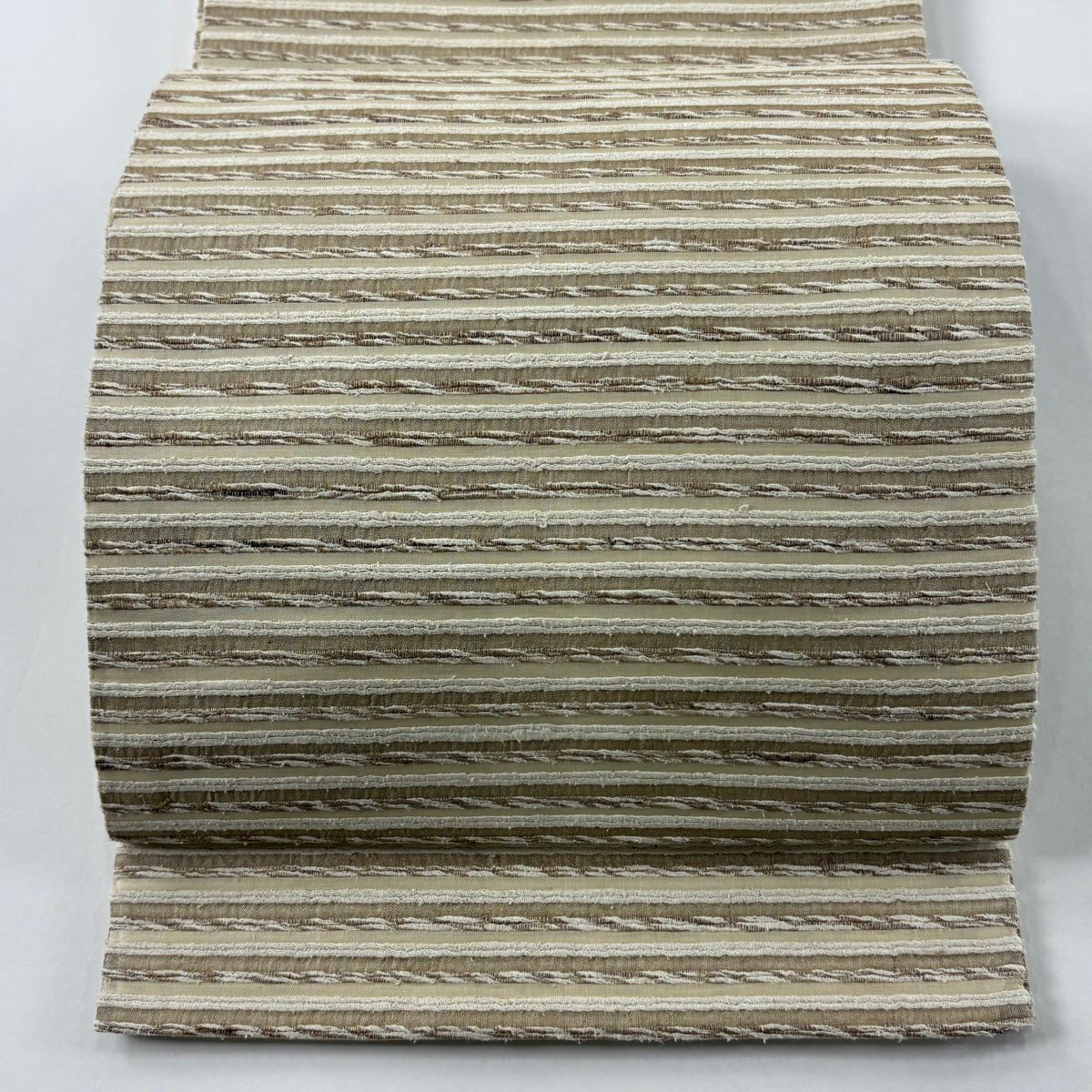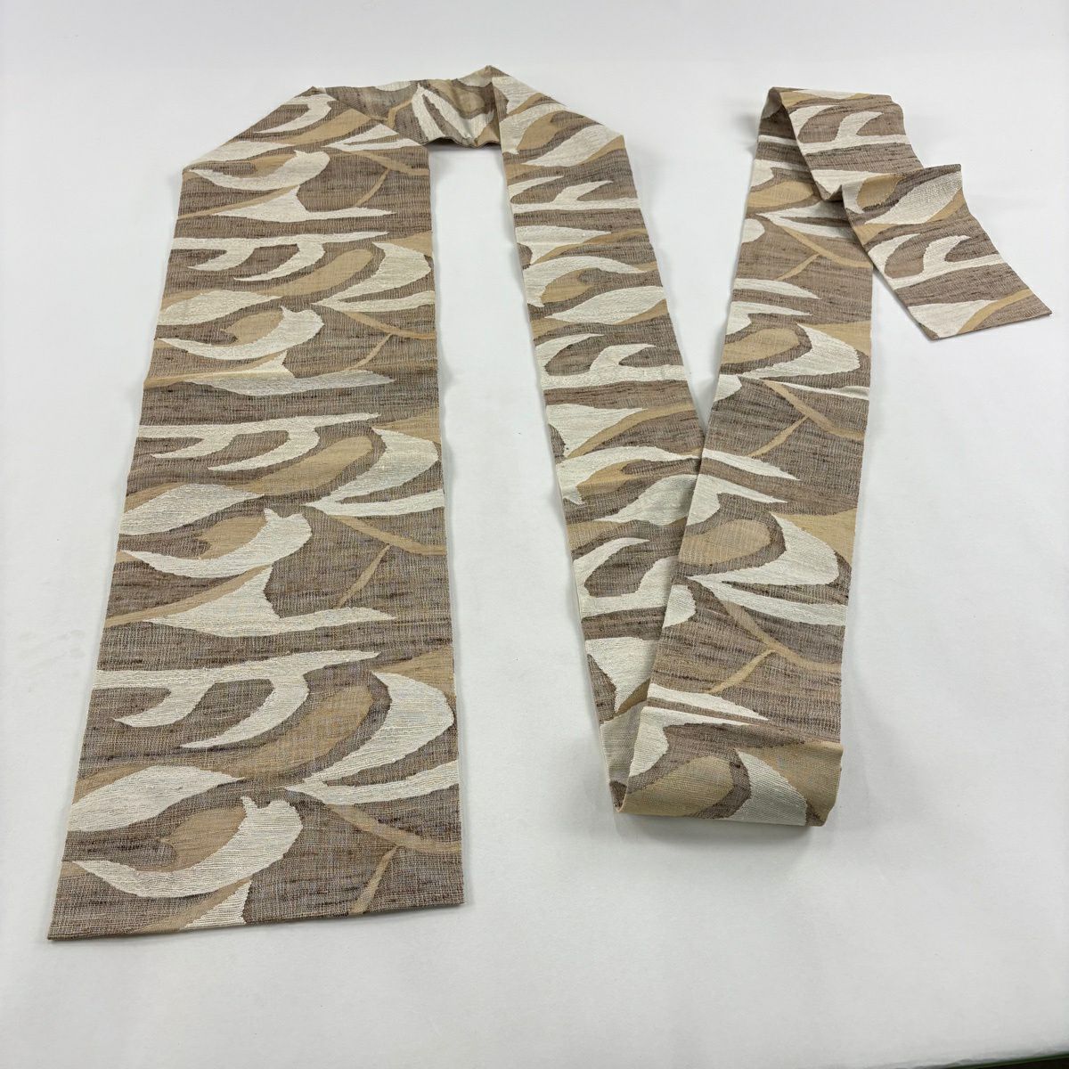 袋帯 逸品 縞 幾何学模様 薄茶色 全通 正絹