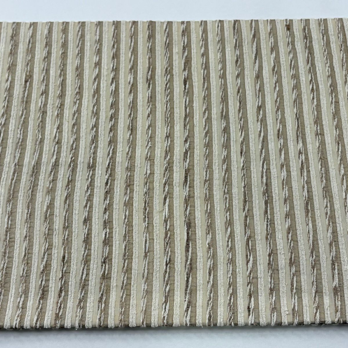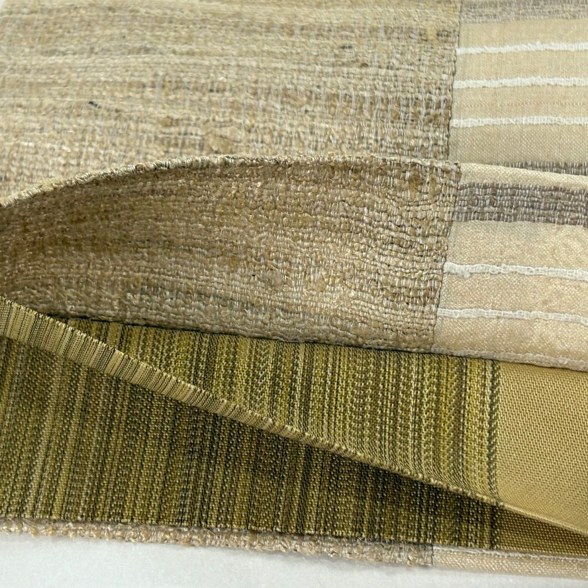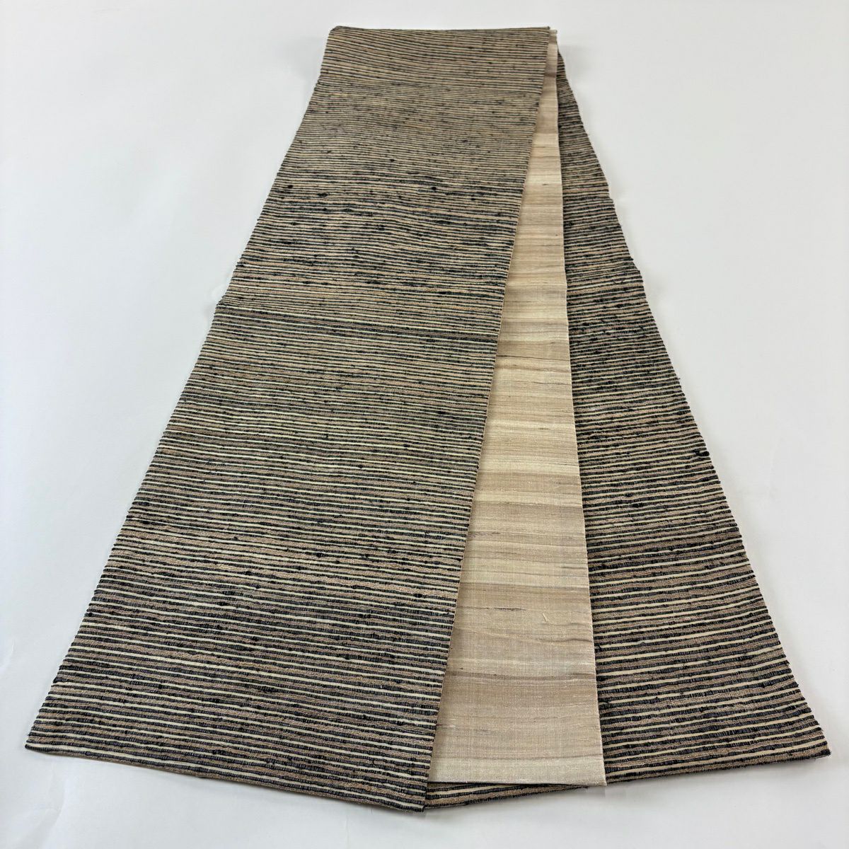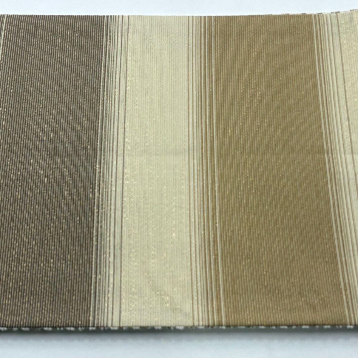【美品】 袋帯 逸品 縞 薄茶色 全通 正絹
