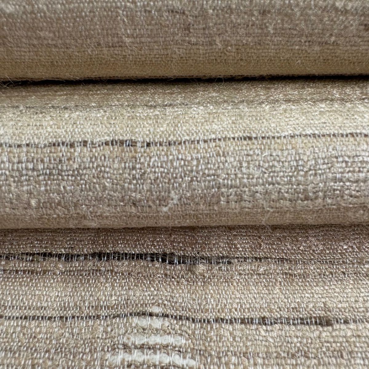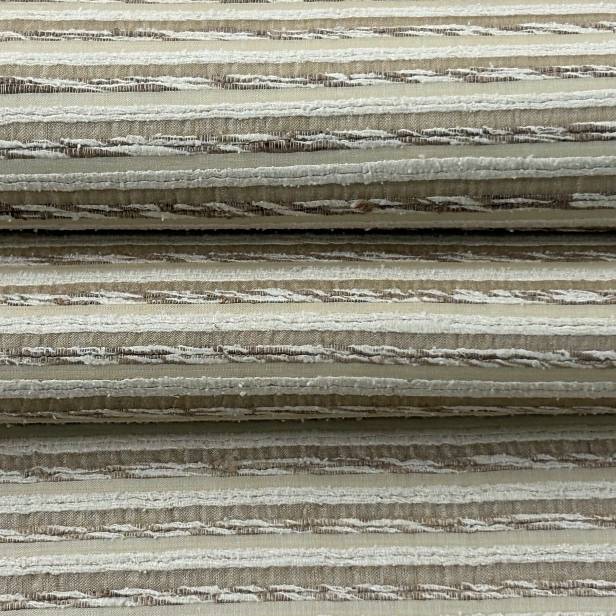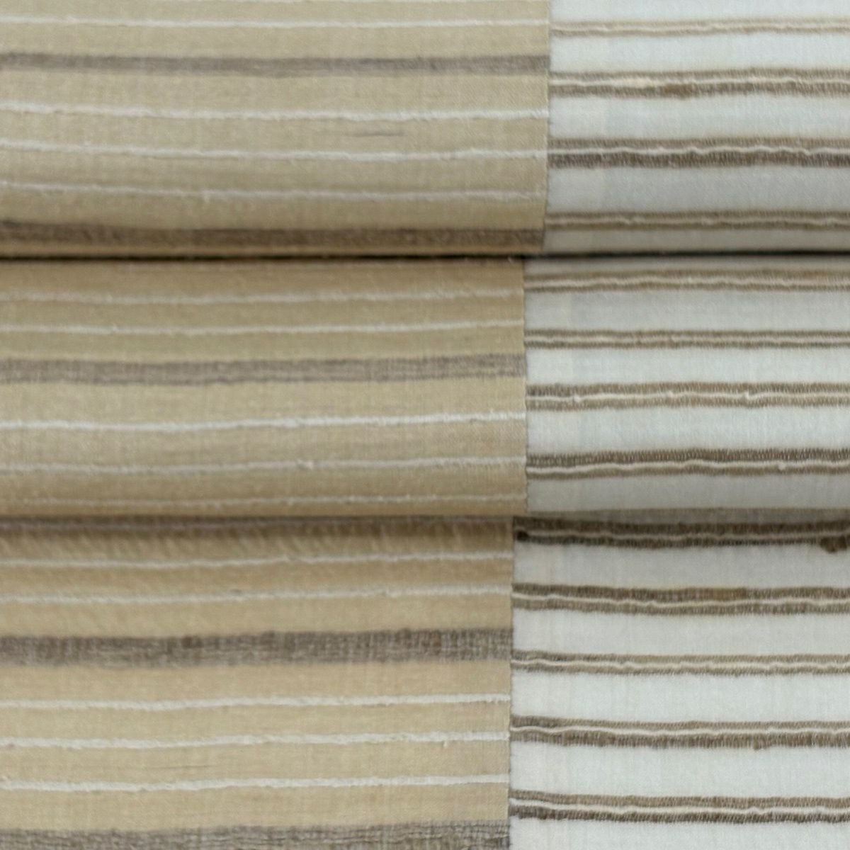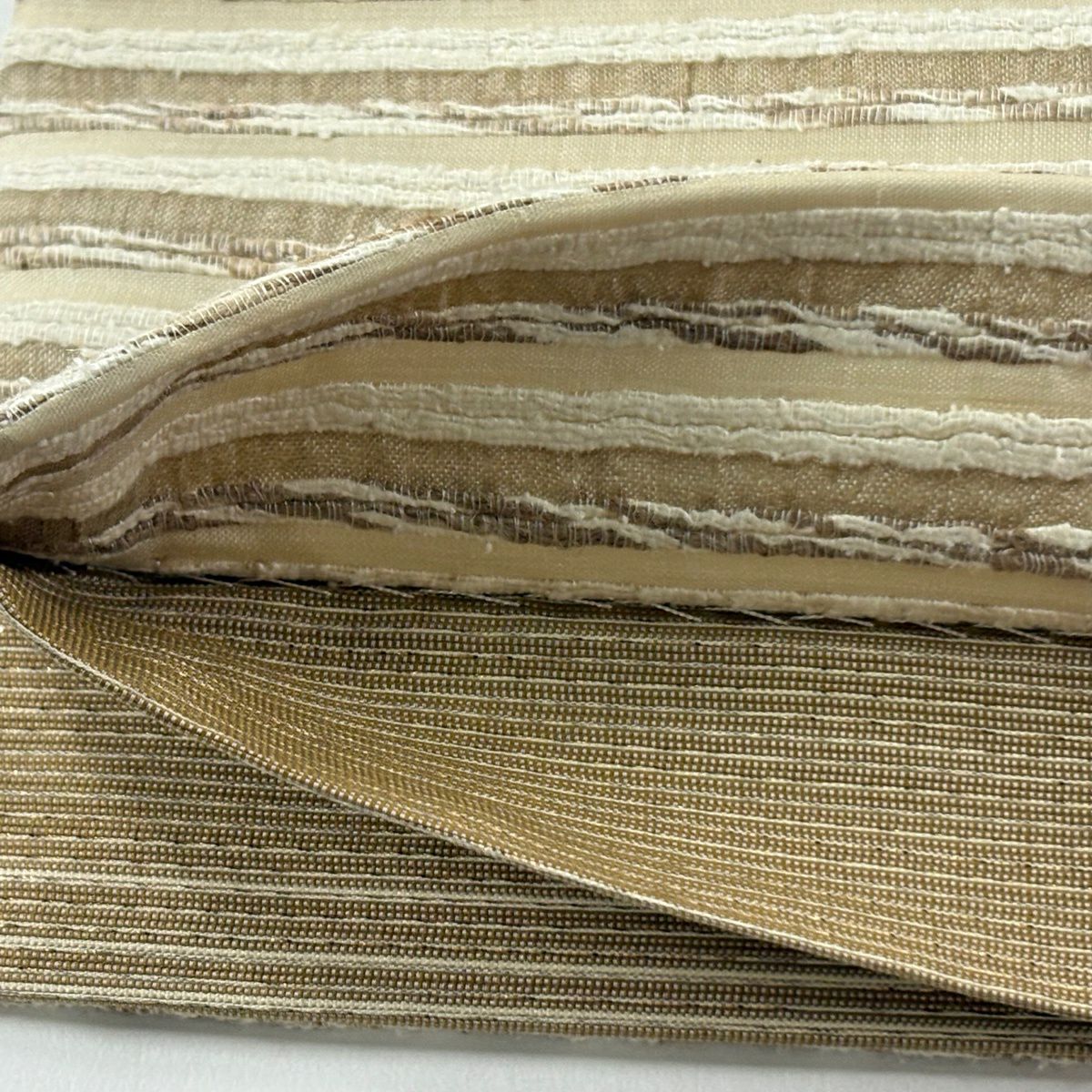 【美品】 袋帯 逸品 縞 薄茶色 全通 正絹