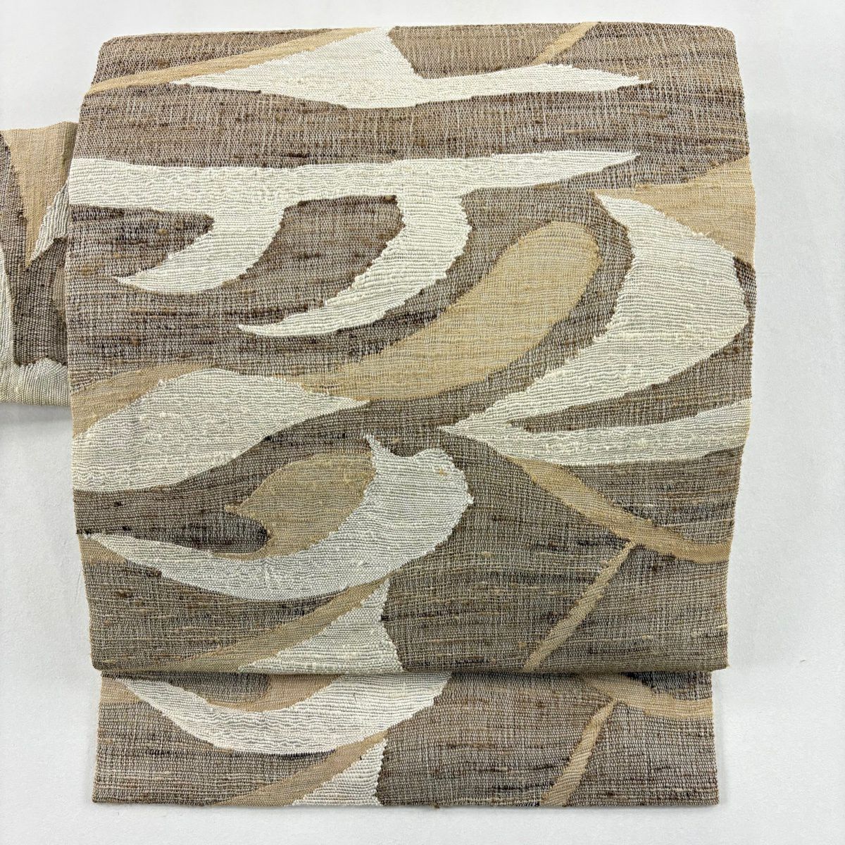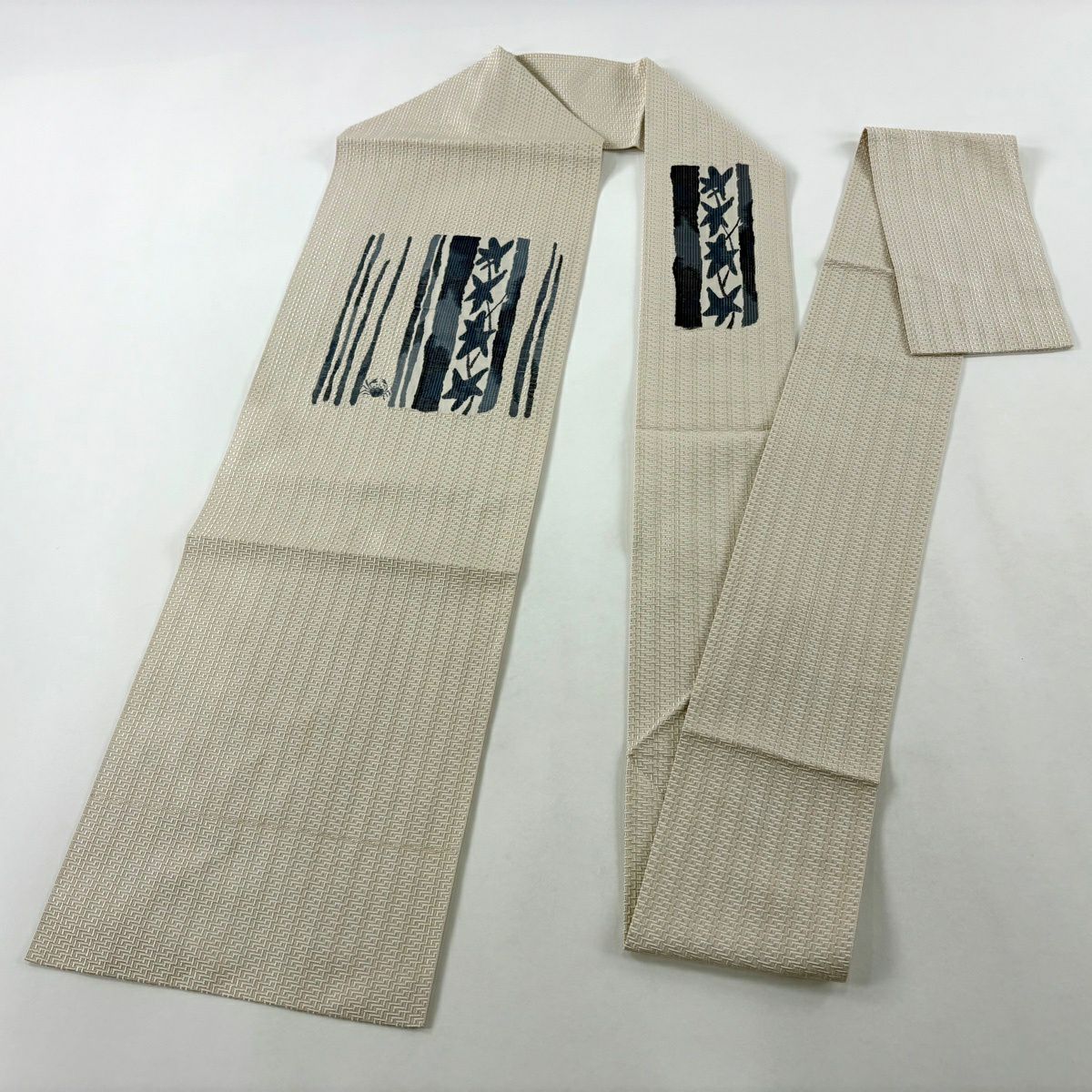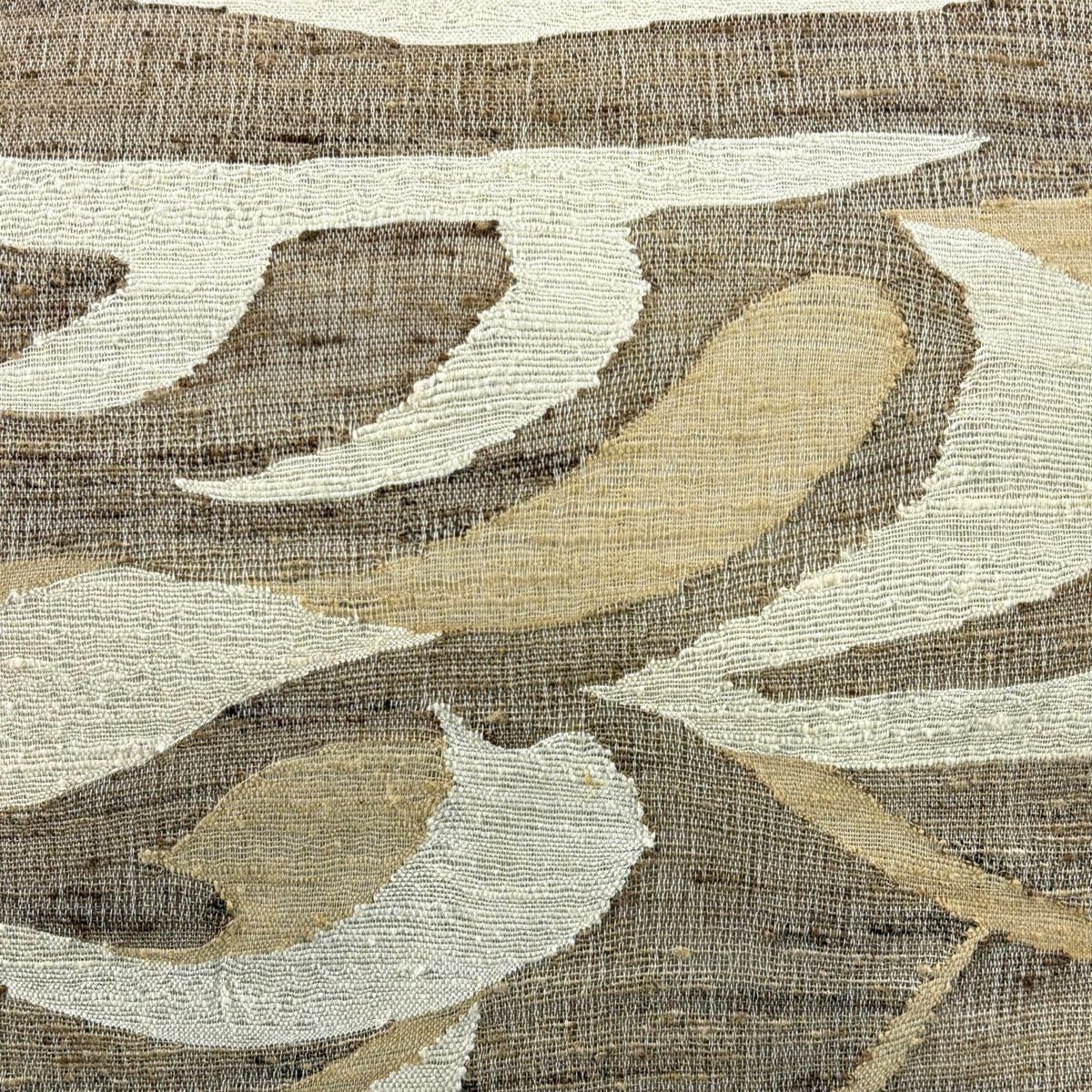 名古屋帯 逸品 蟹 葉柄 ベージュ 正絹