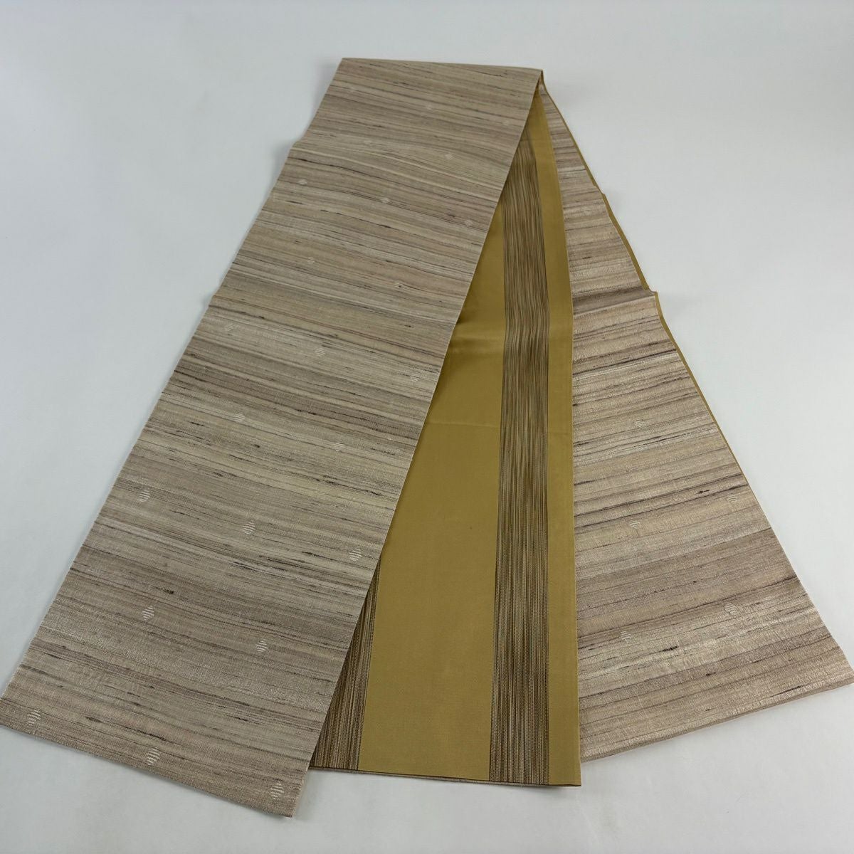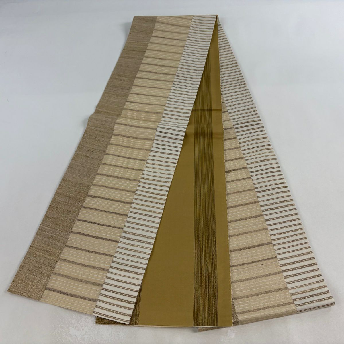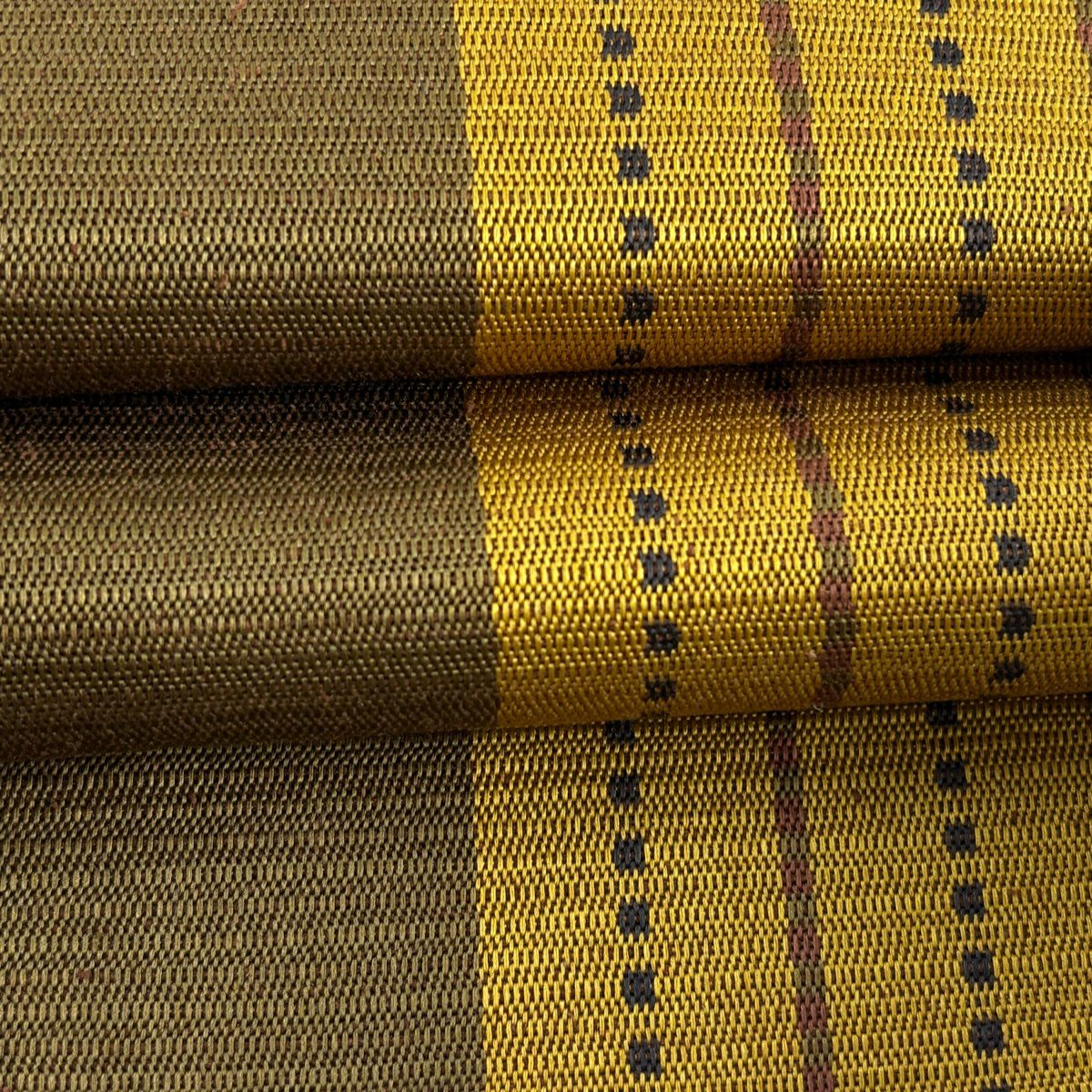 名古屋帯 逸品 紬地 亀甲 縞 黄土色 正絹