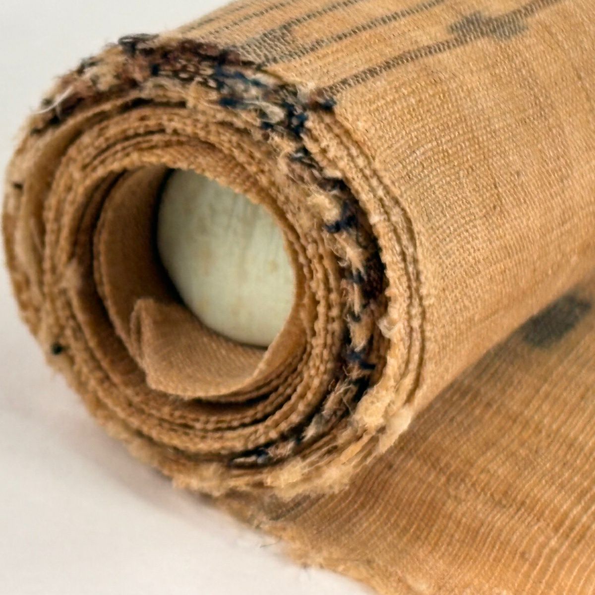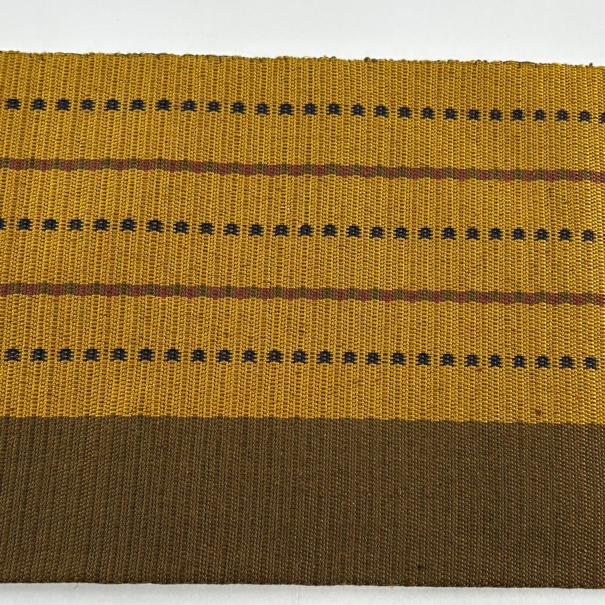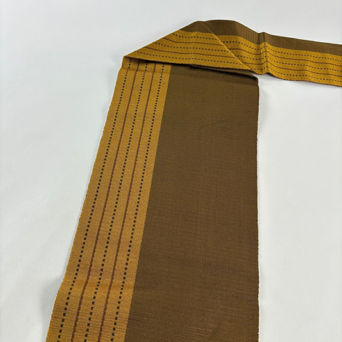 名古屋帯 逸品 紬地 亀甲 縞 黄土色 正絹