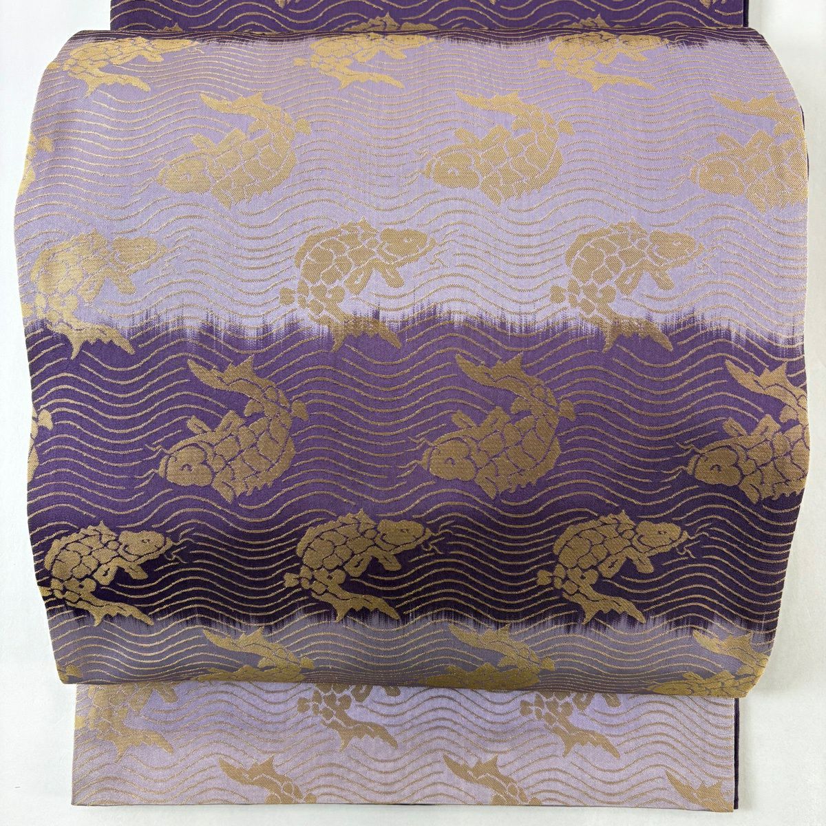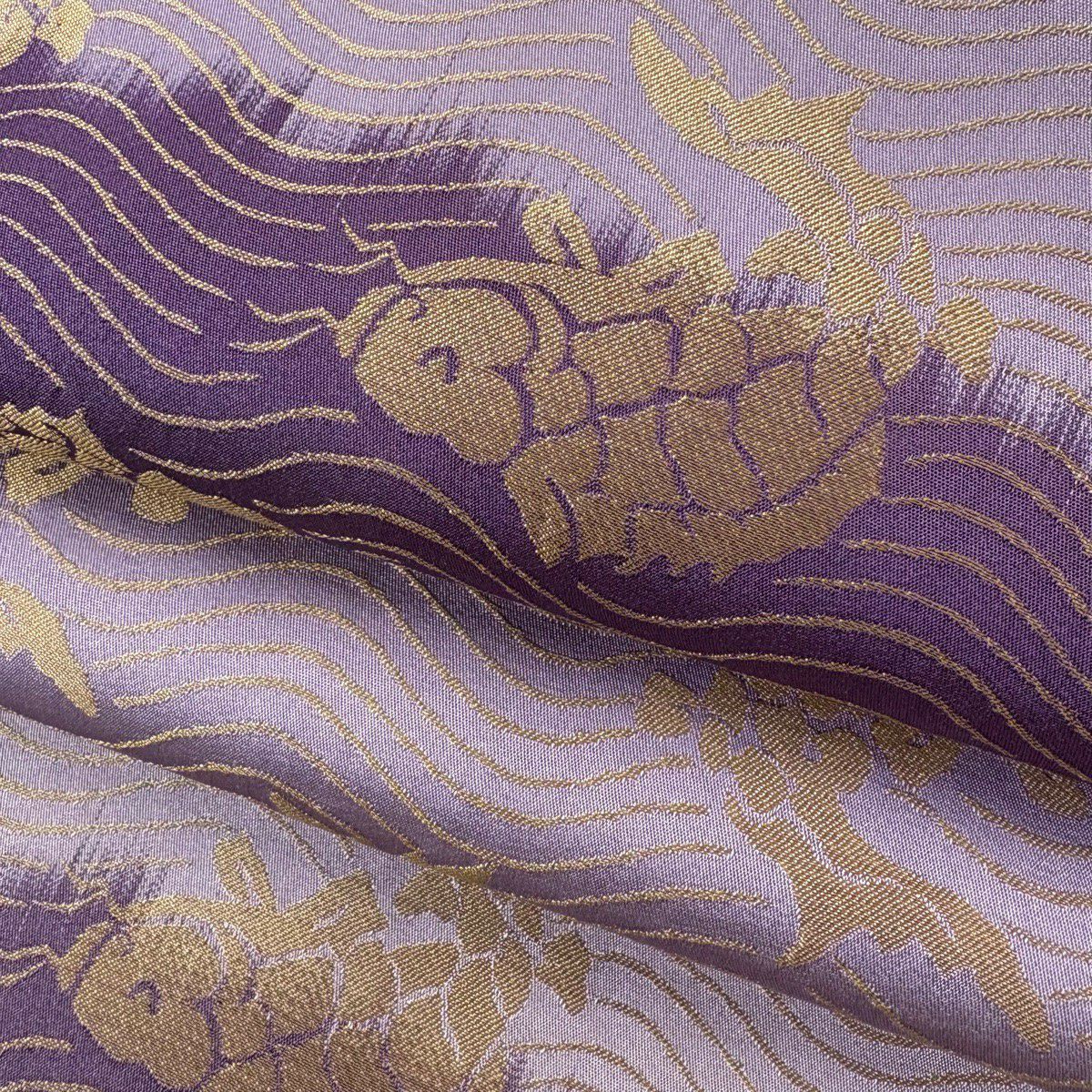 袋帯 逸品 黄金ムガ蚕 鱗 茶紫 全通 正絹