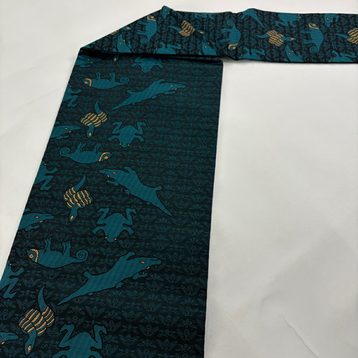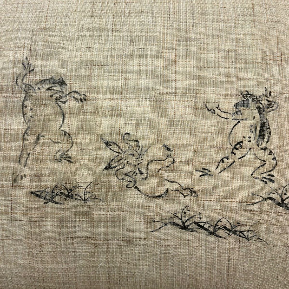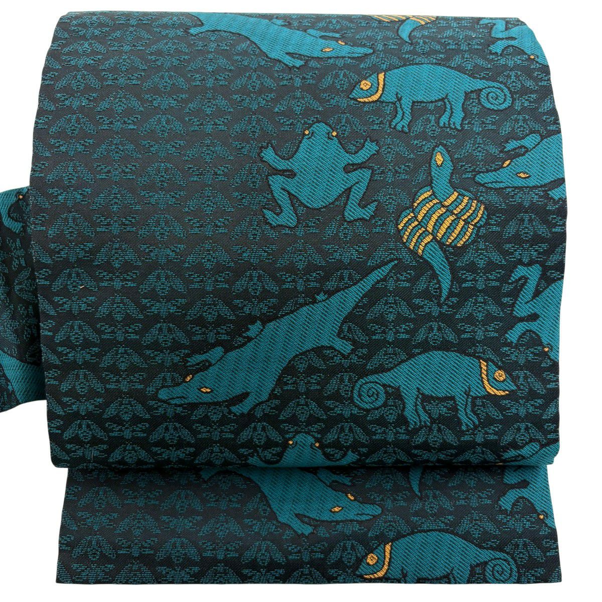【美品】 名古屋帯 逸品 蛇 蛙 青緑 正絹