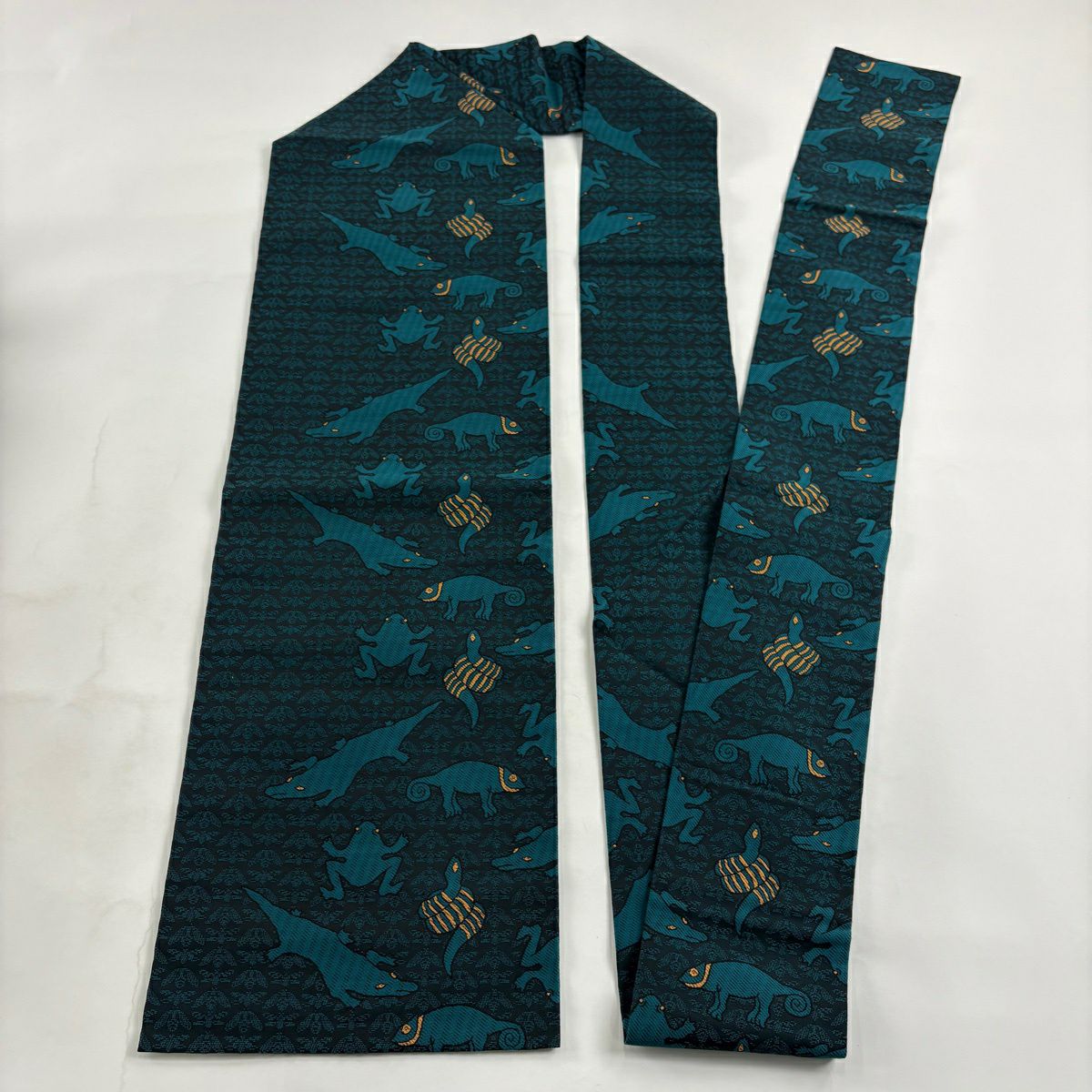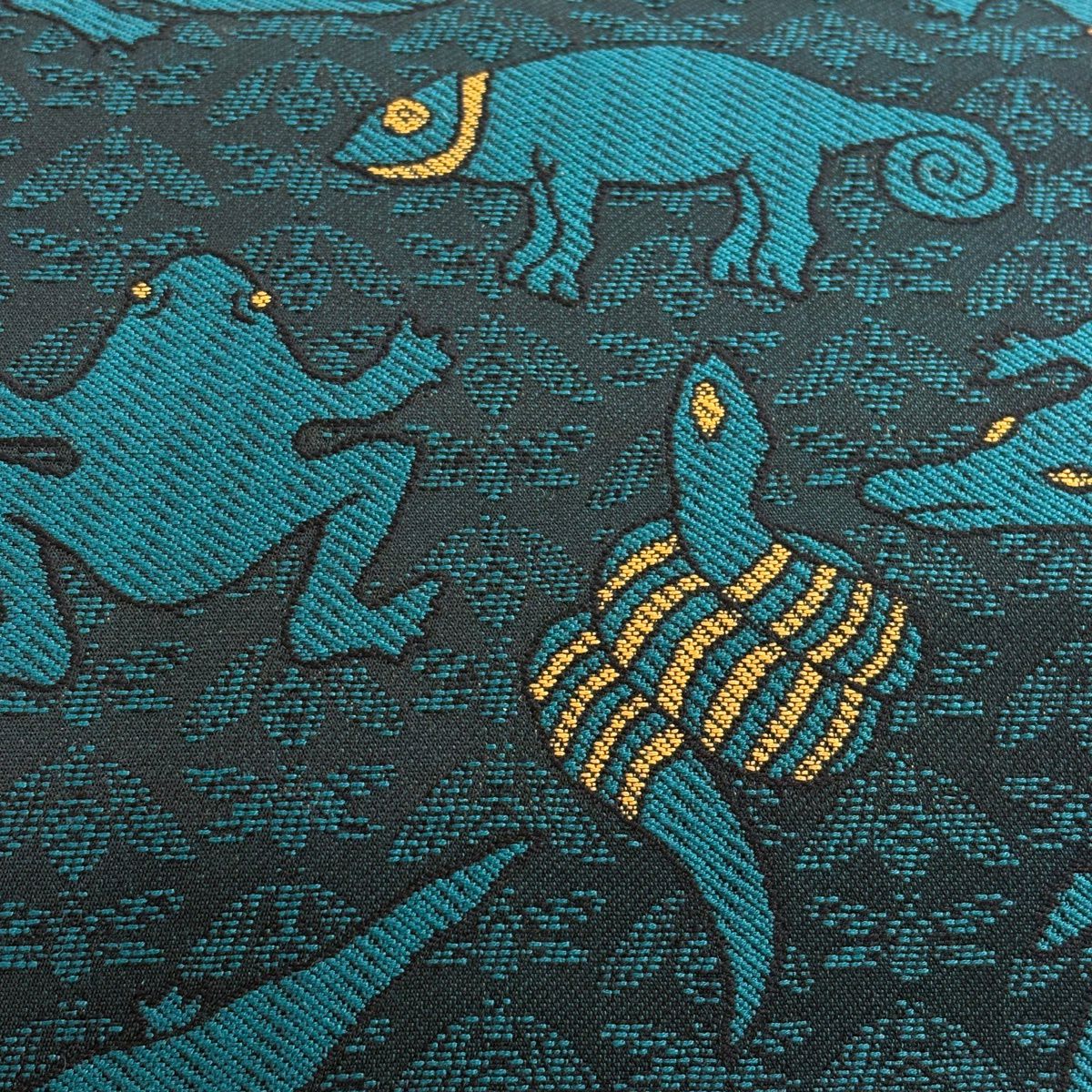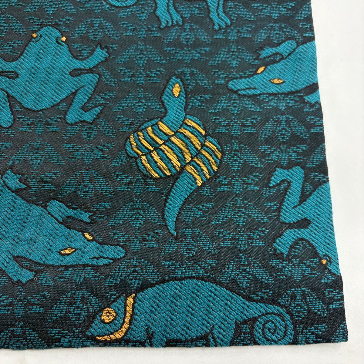 【美品】 名古屋帯 逸品 蛇 蛙 青緑 正絹