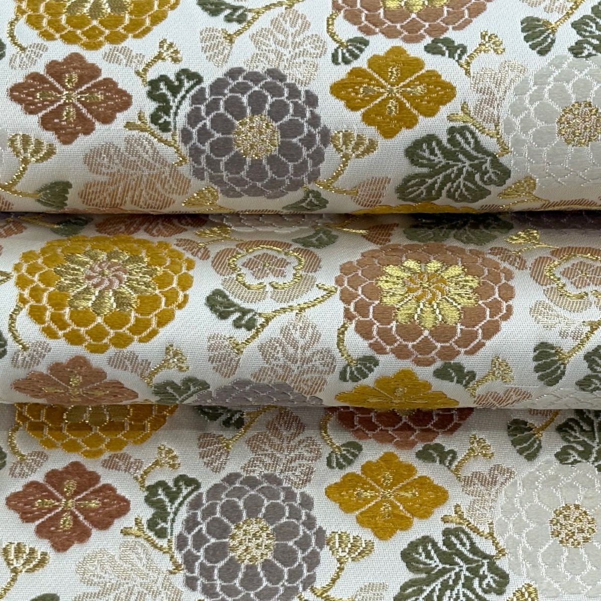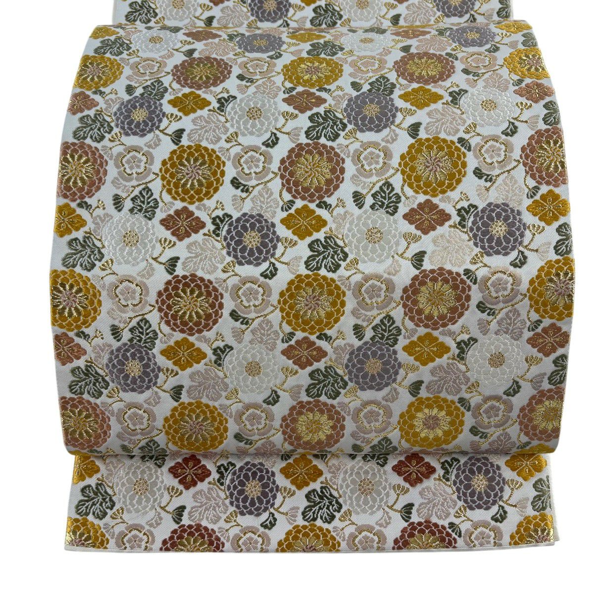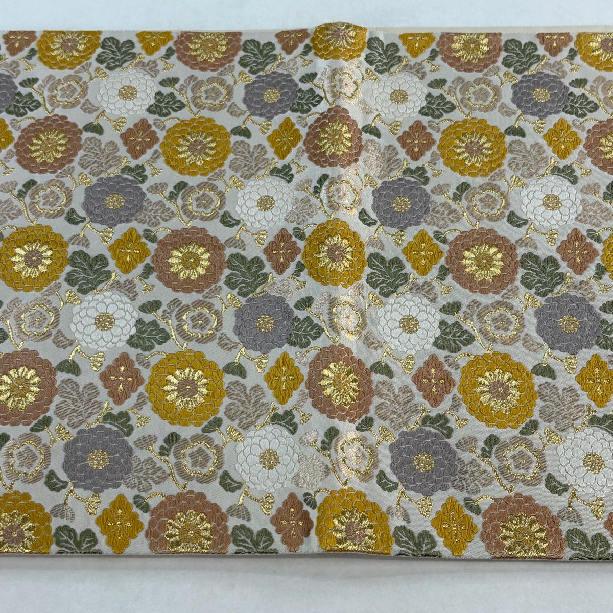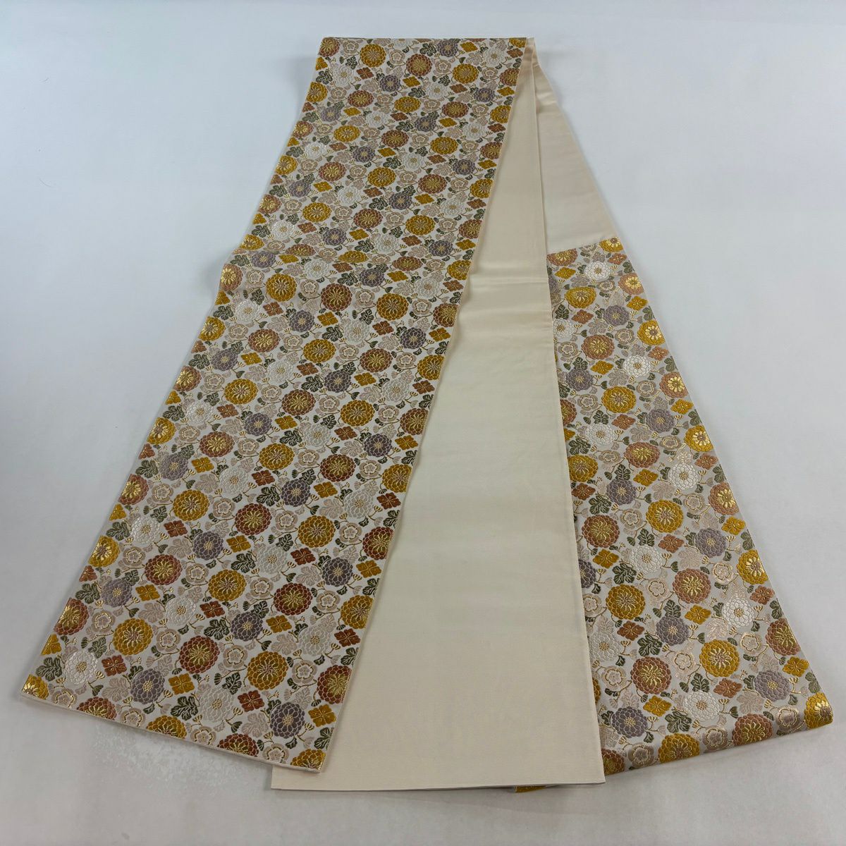 袋帯 逸品 菊 金糸 箔 クリーム 六通 正絹