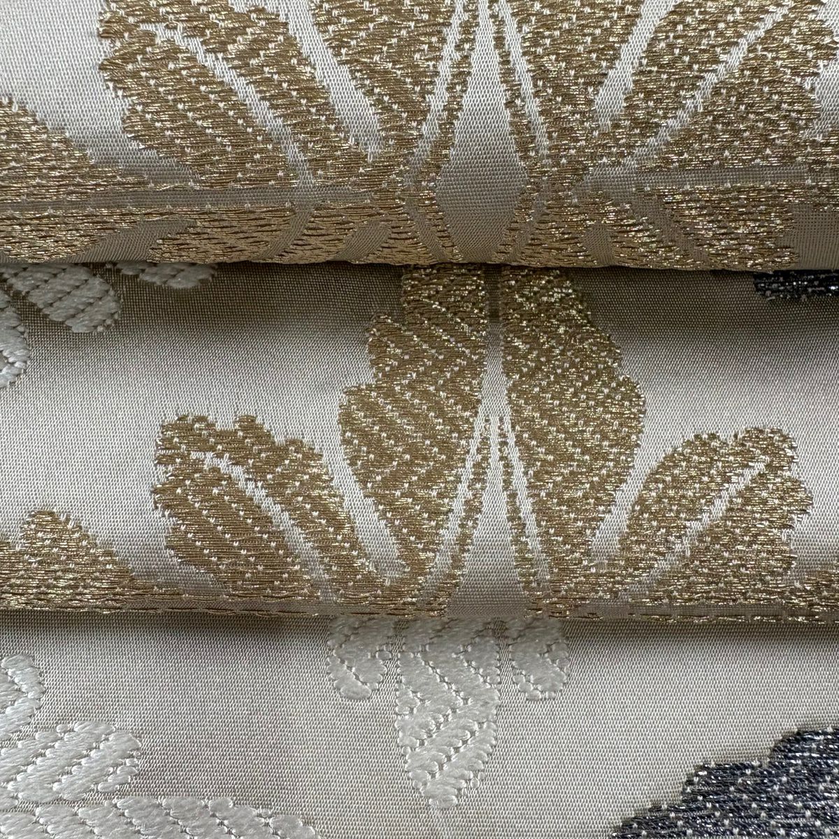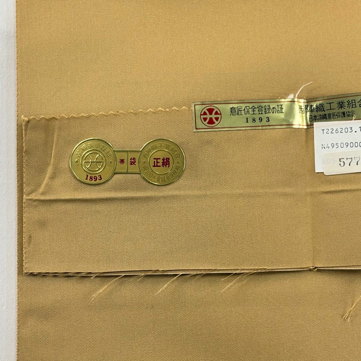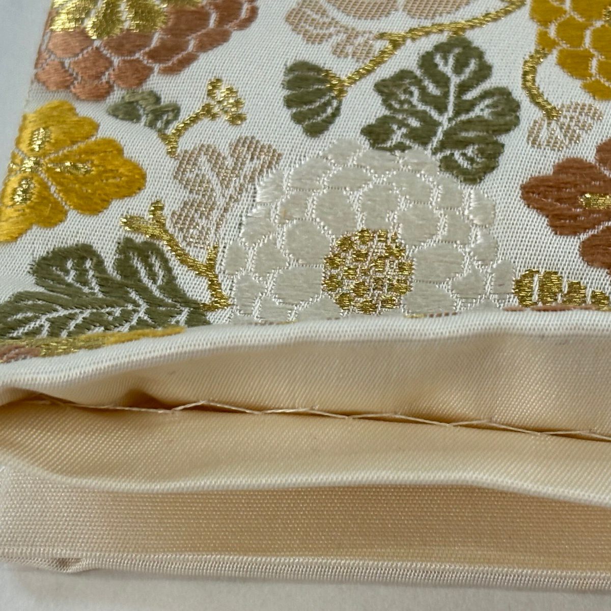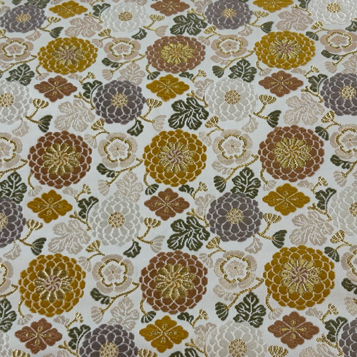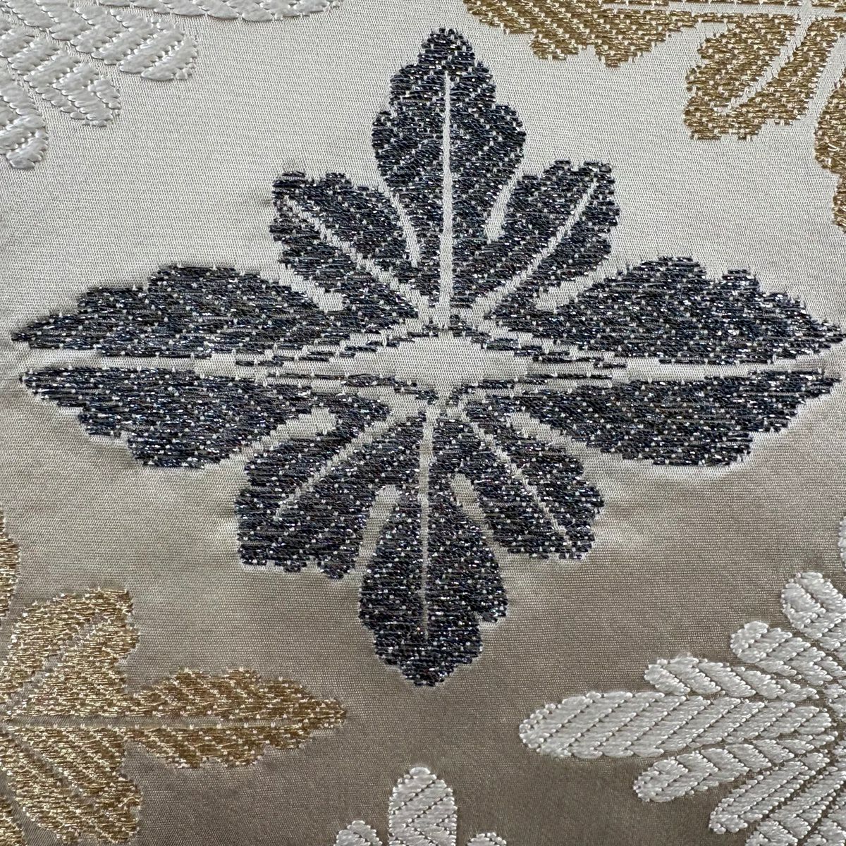 袋帯 逸品 菊 金糸 箔 クリーム 六通 正絹