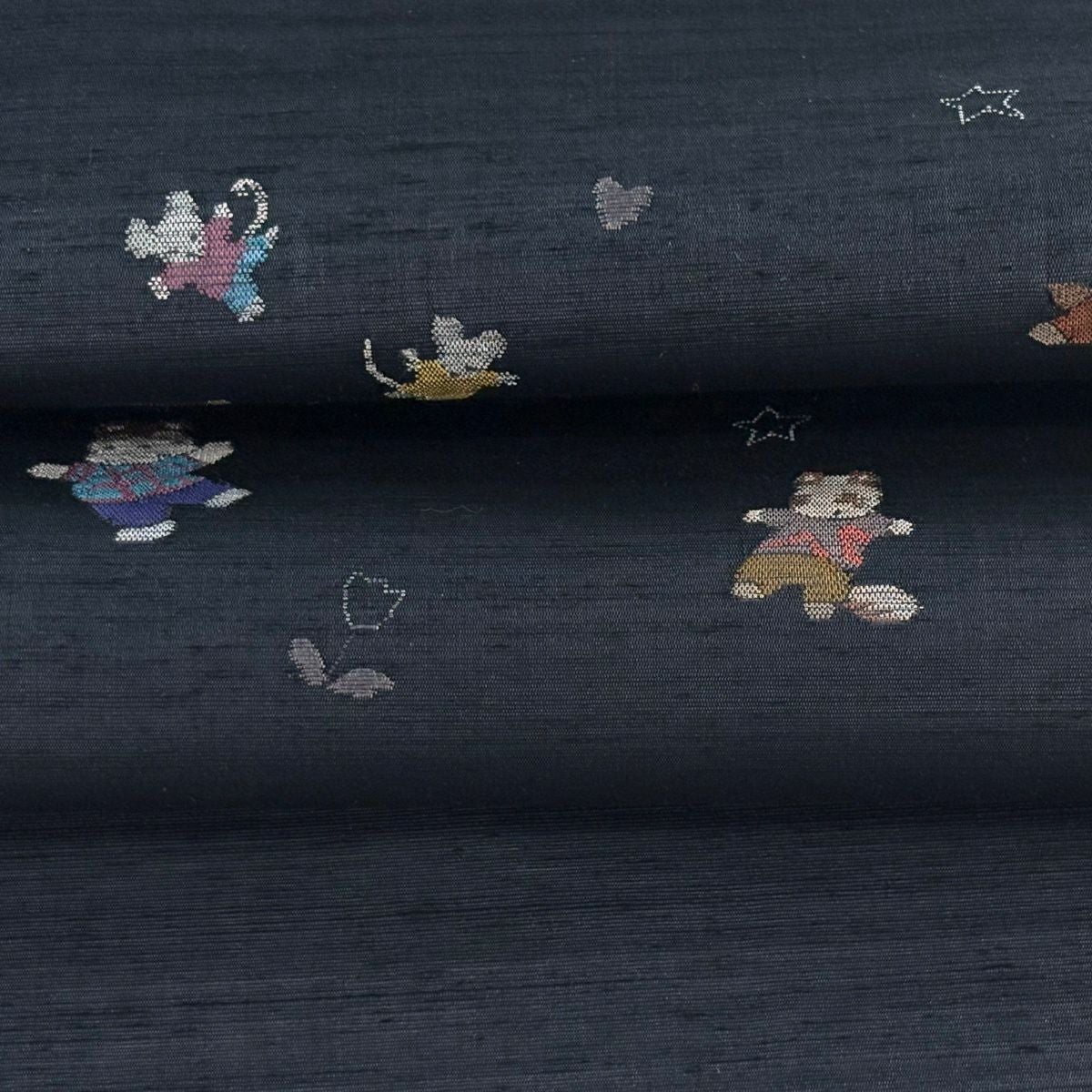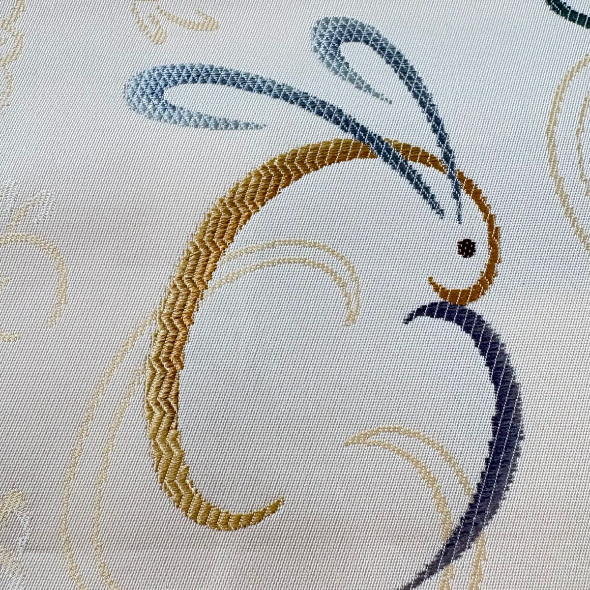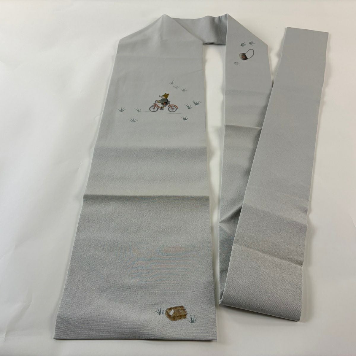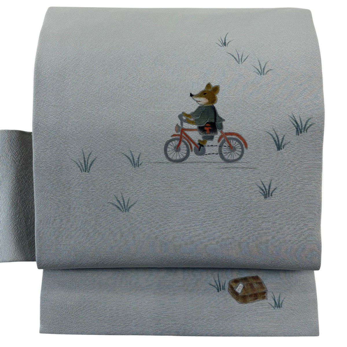 名古屋帯 逸品 きつね 自転車 青灰色 正絹