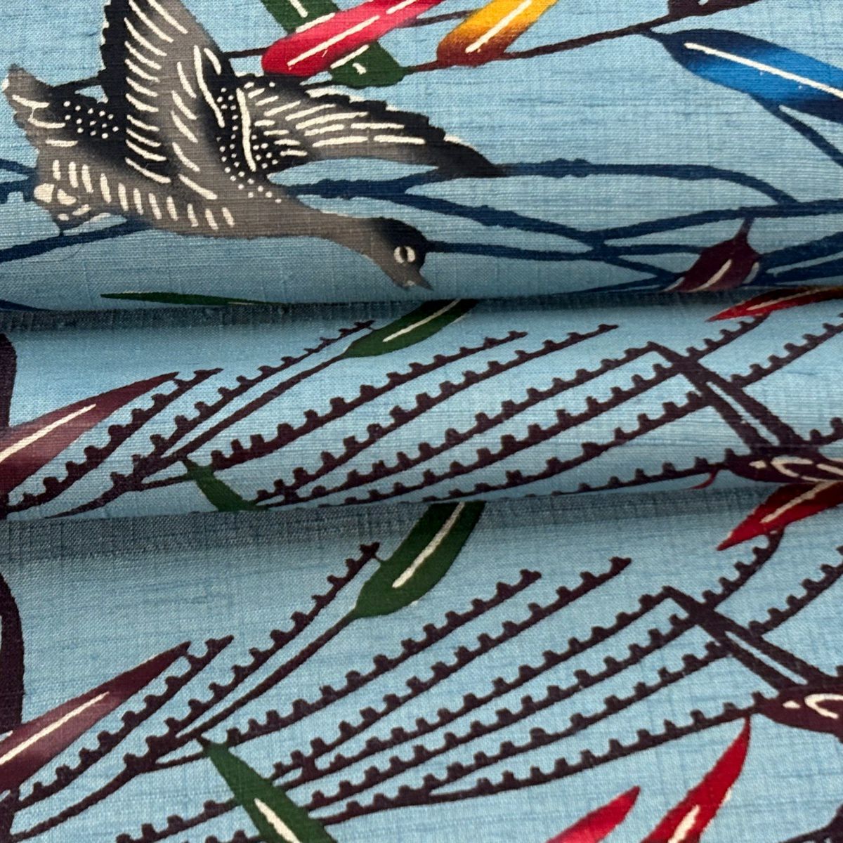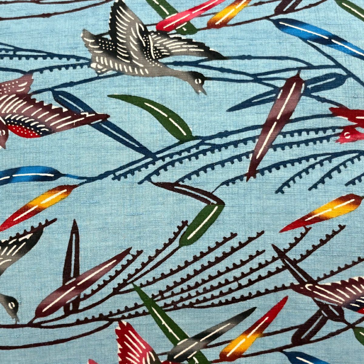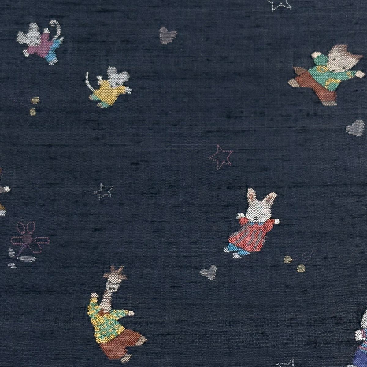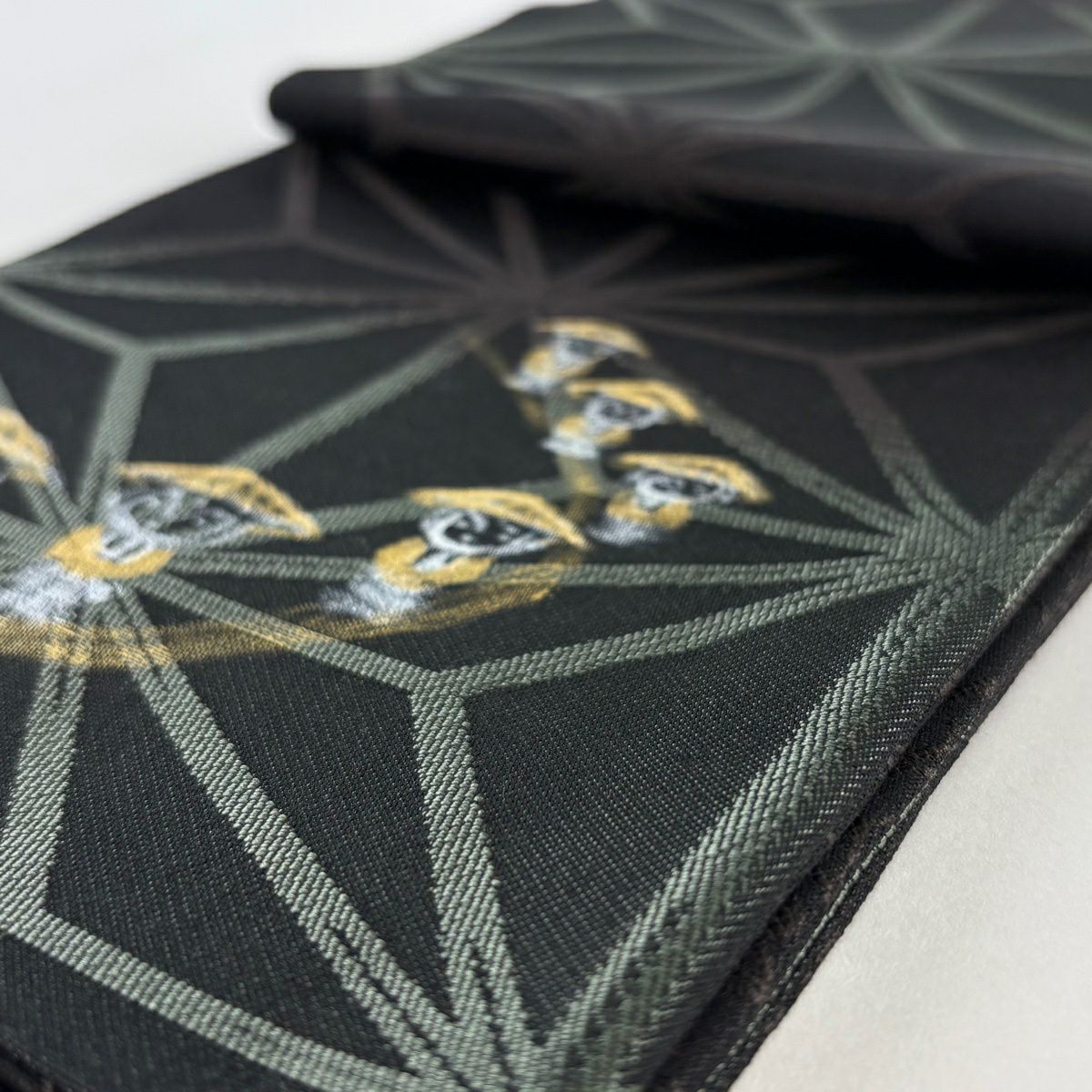 名古屋帯 逸品 きつね 自転車 青灰色 正絹