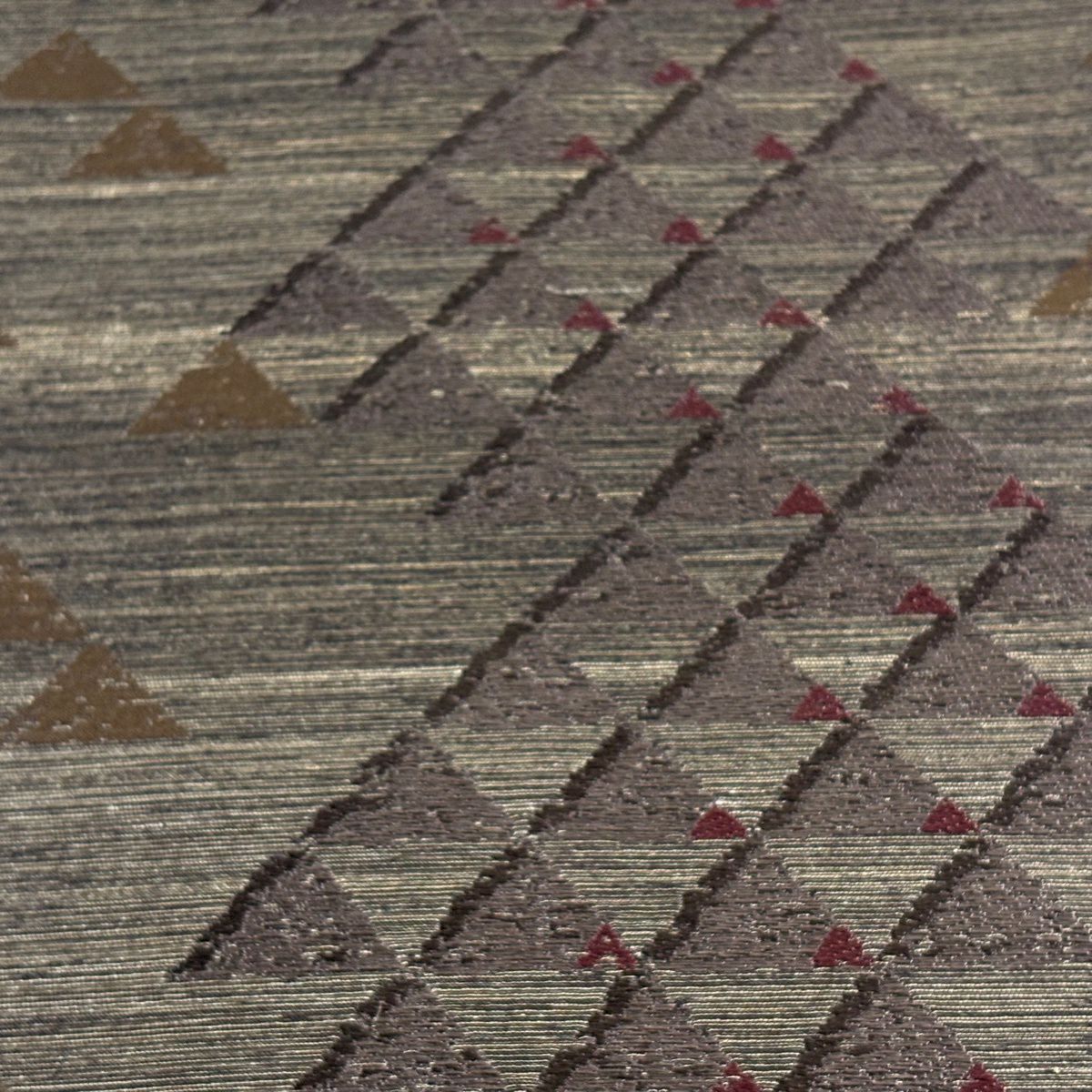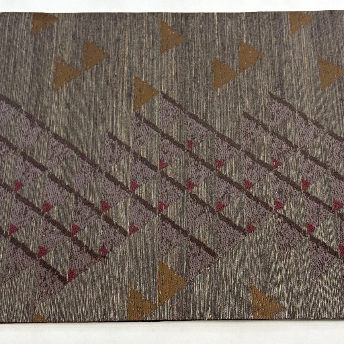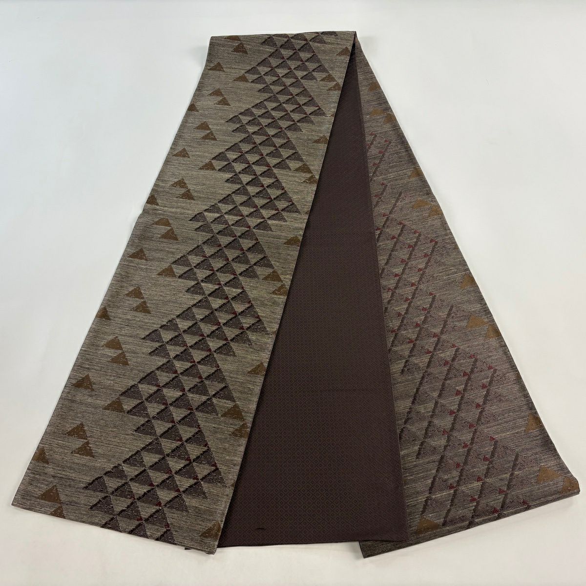 袋帯 逸品 幾何学模様 箔 赤茶 全通 正絹