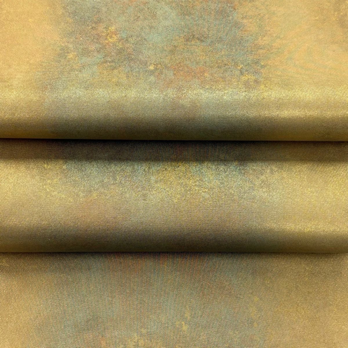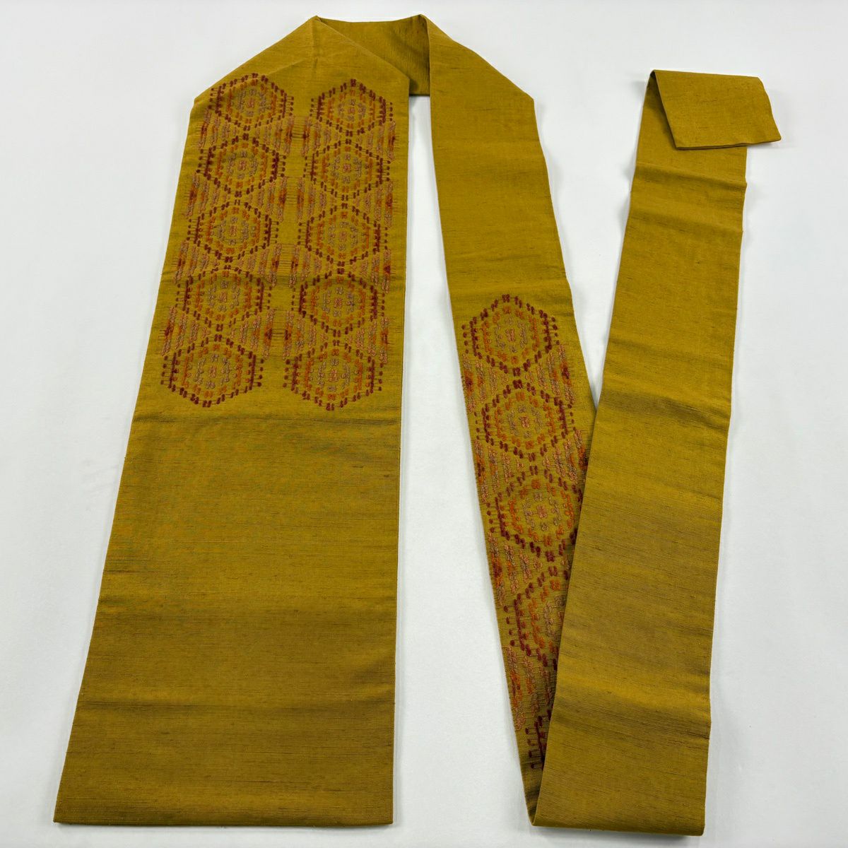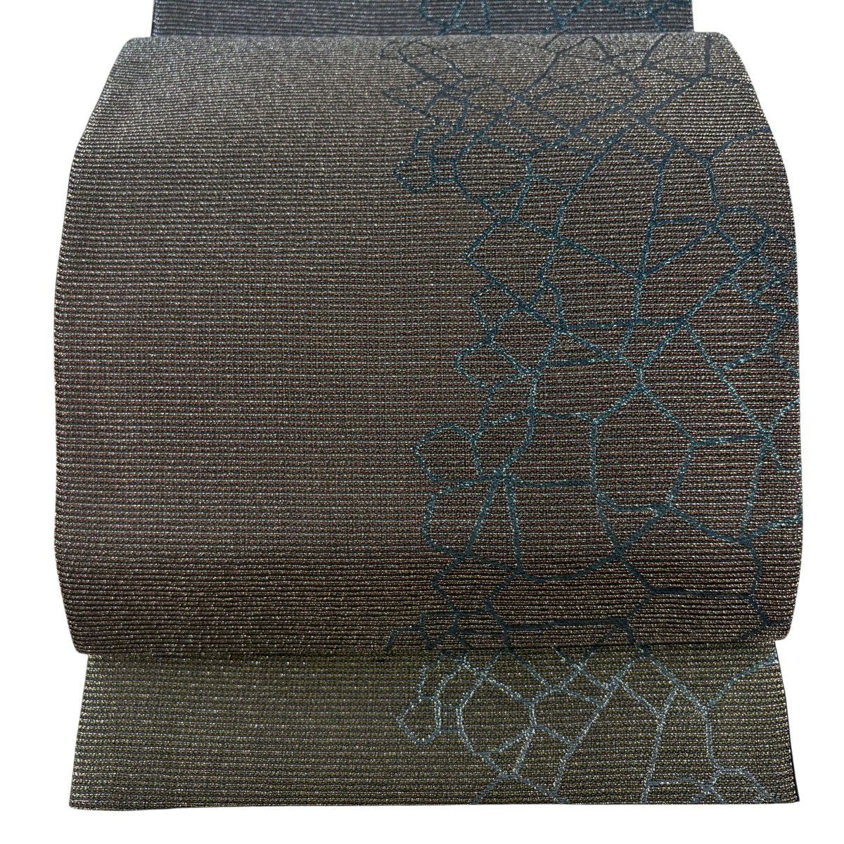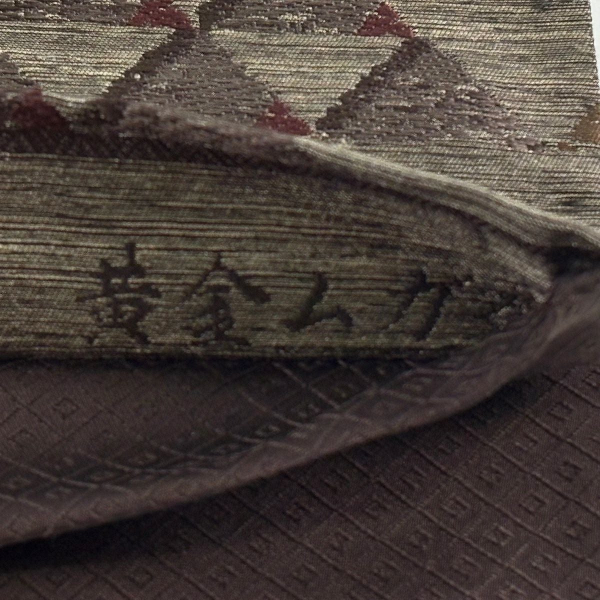 袋帯 逸品 幾何学模様 箔 赤茶 全通 正絹