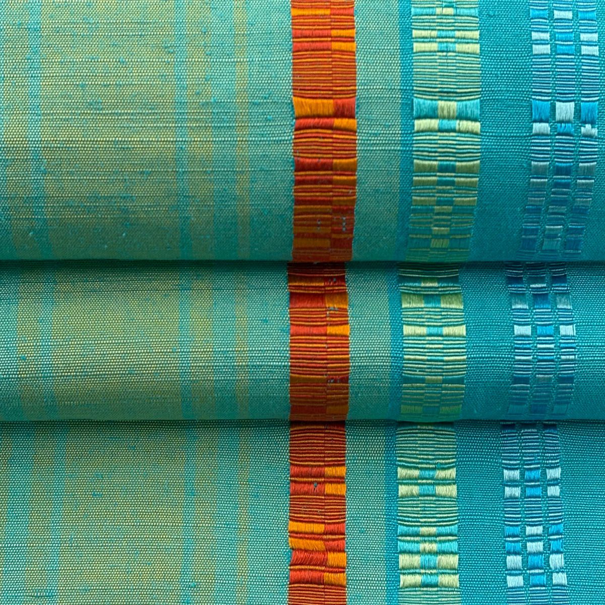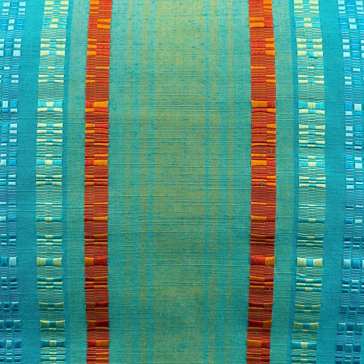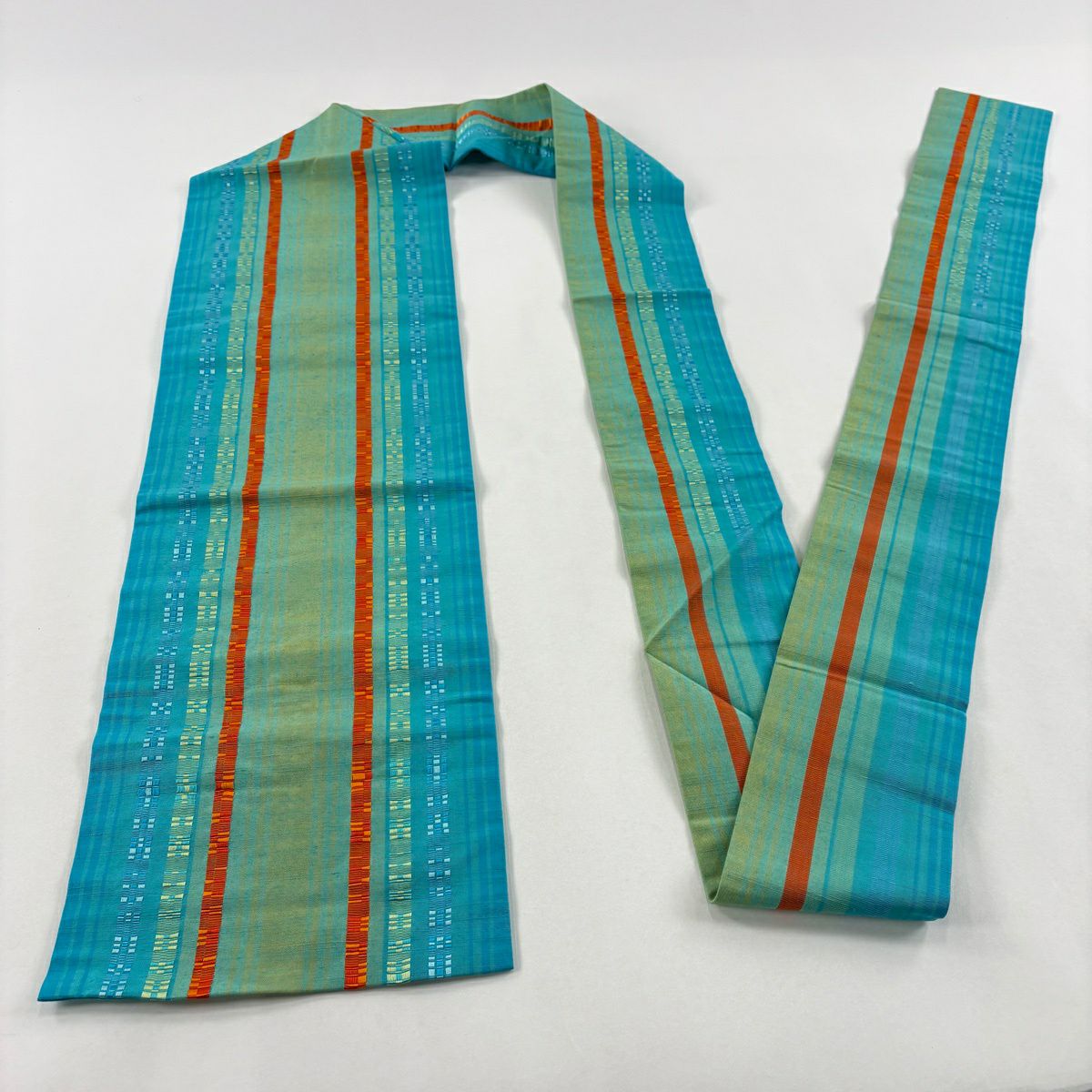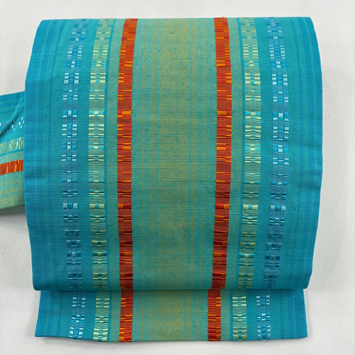 【美品】 名古屋帯 逸品 紬地 縞 水色 正絹