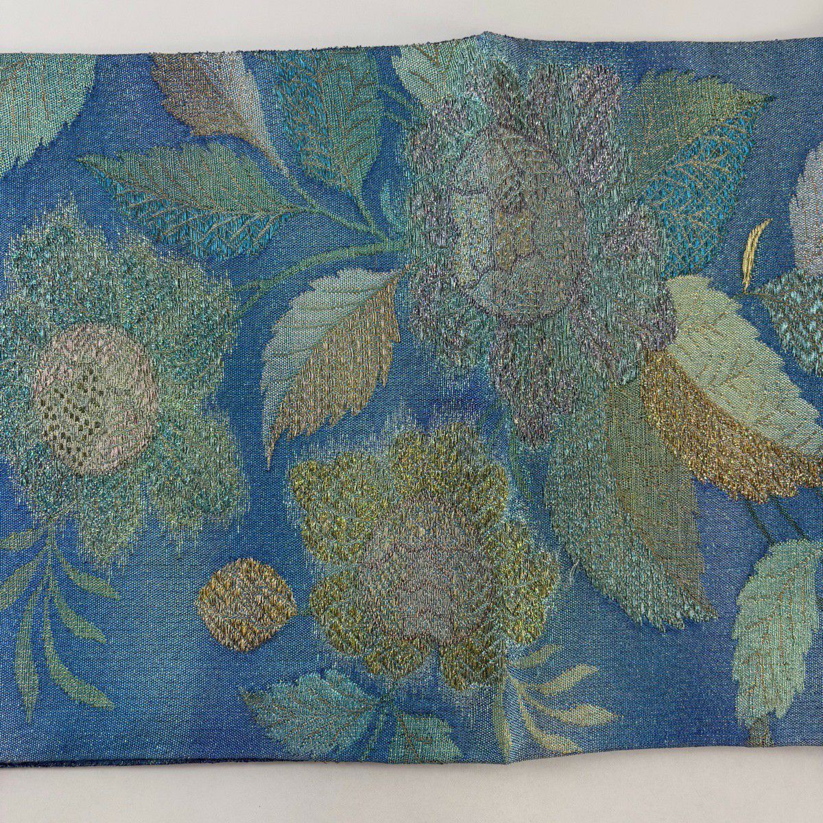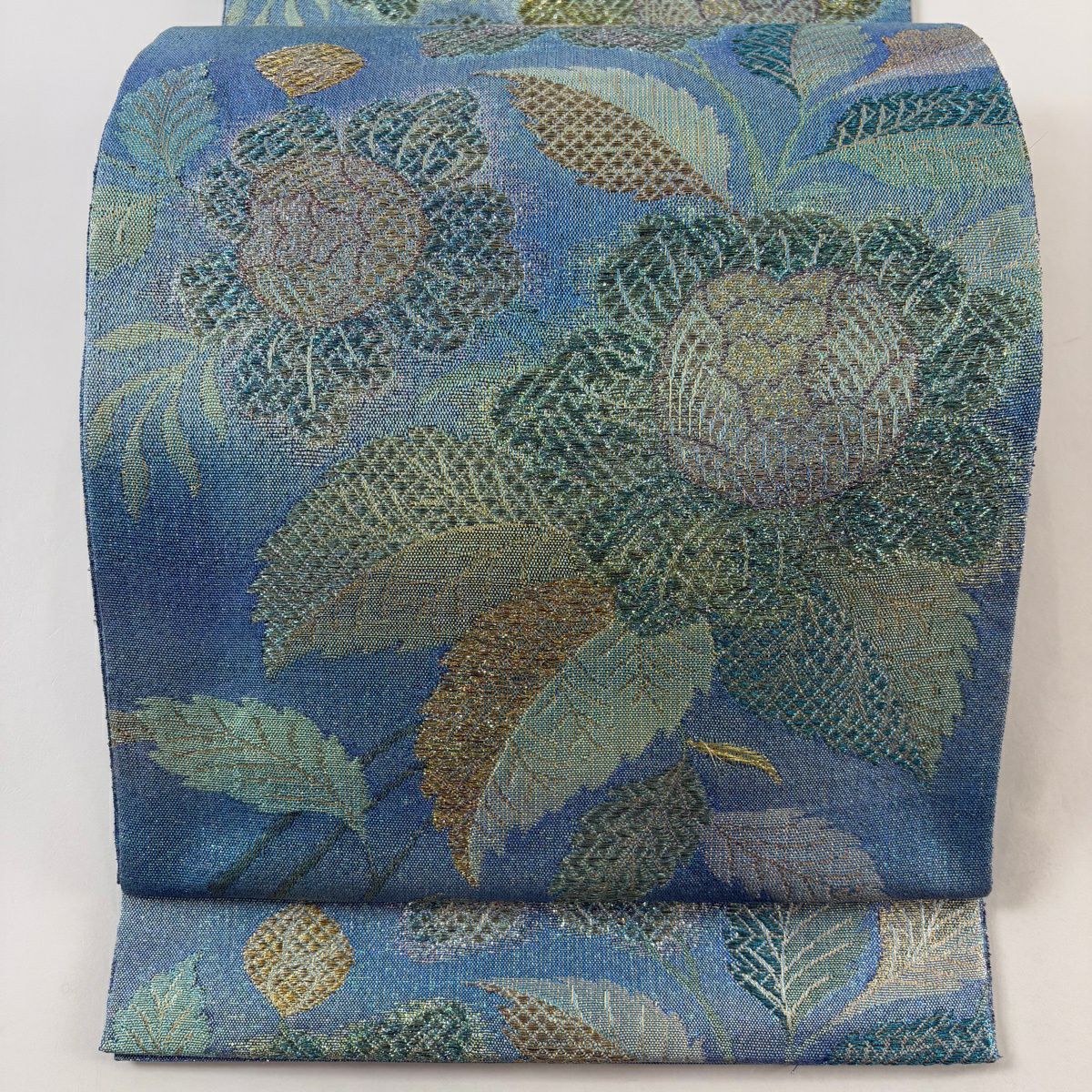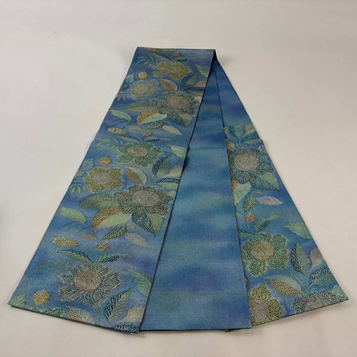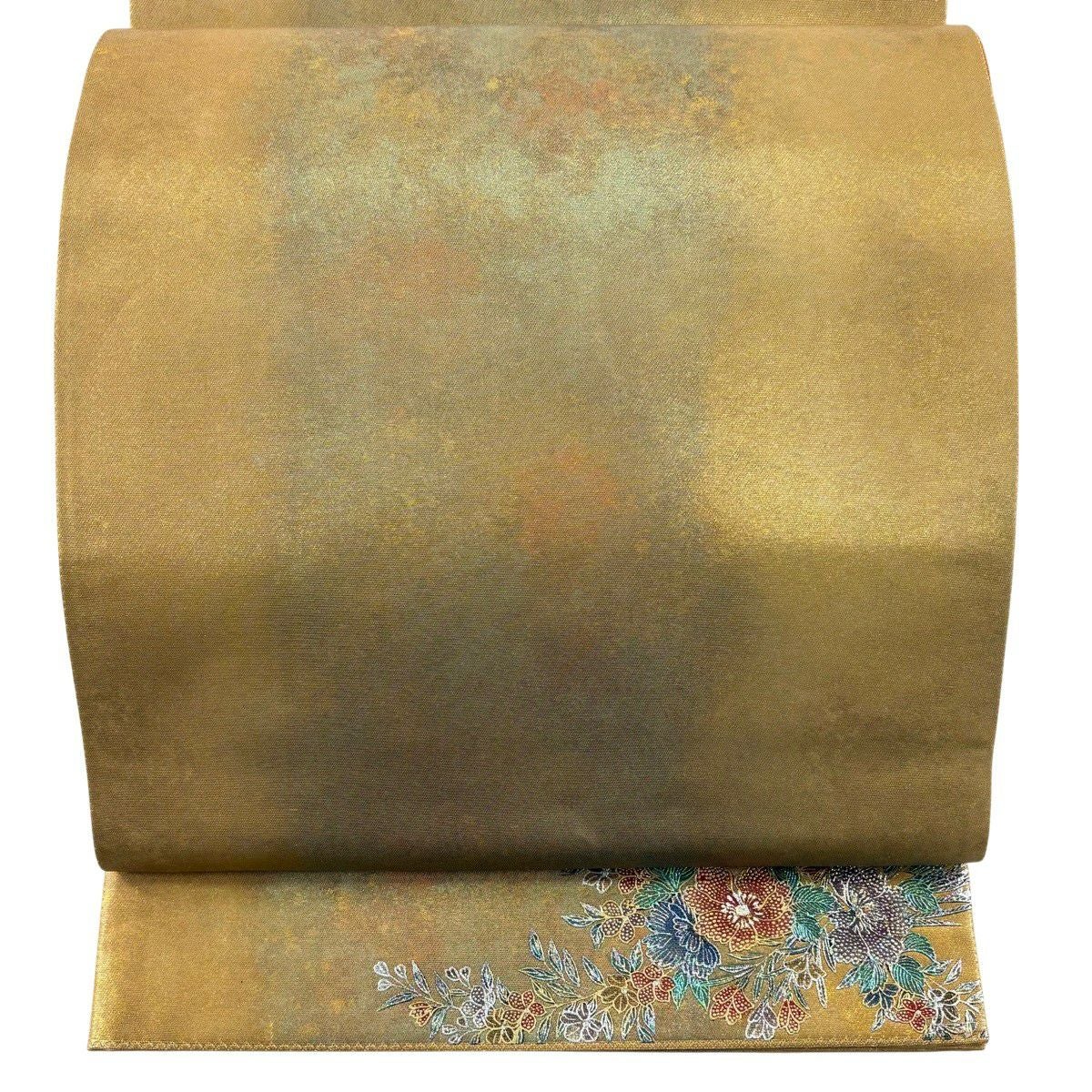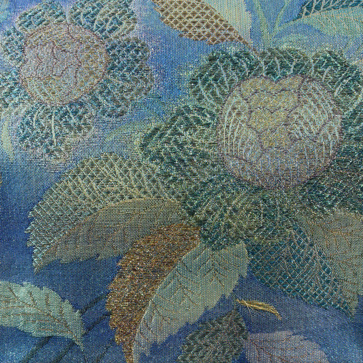 袋帯 逸品 草花 金糸 箔 水色 六通 正絹