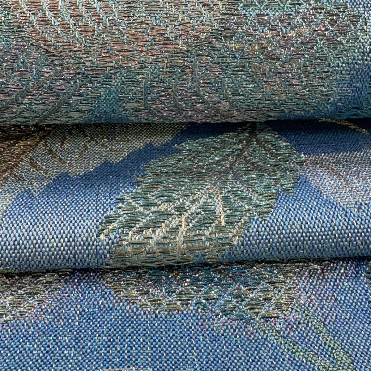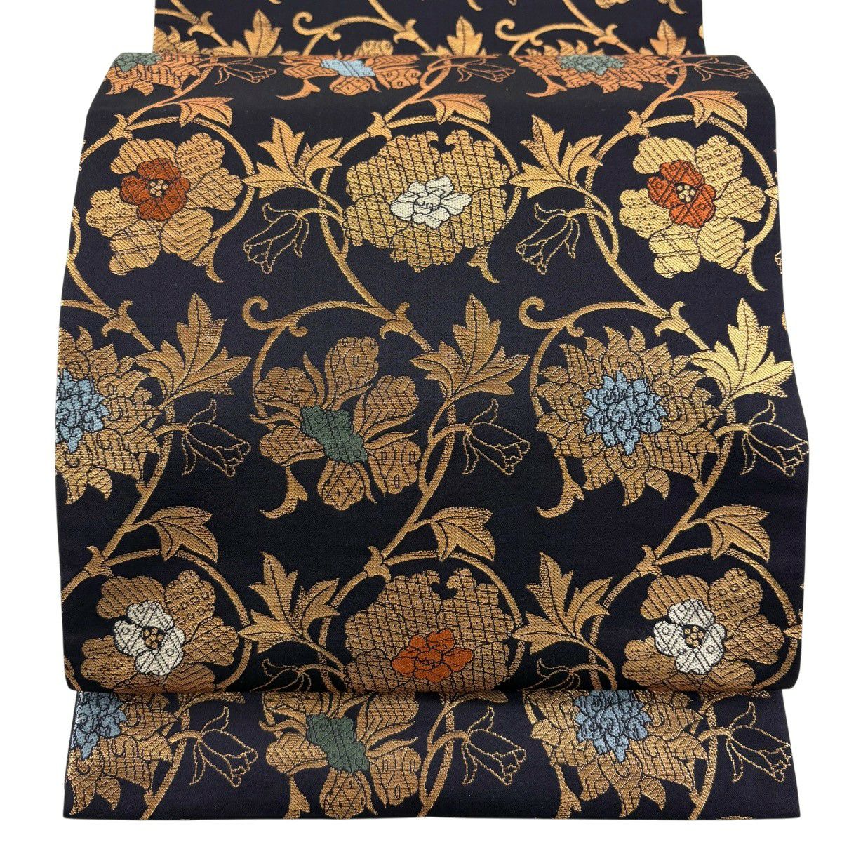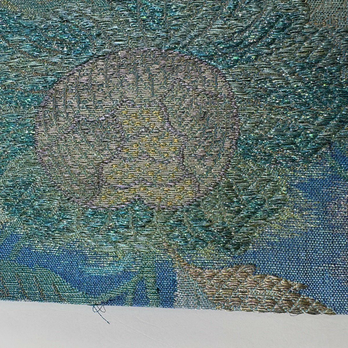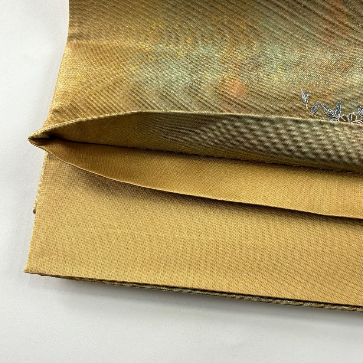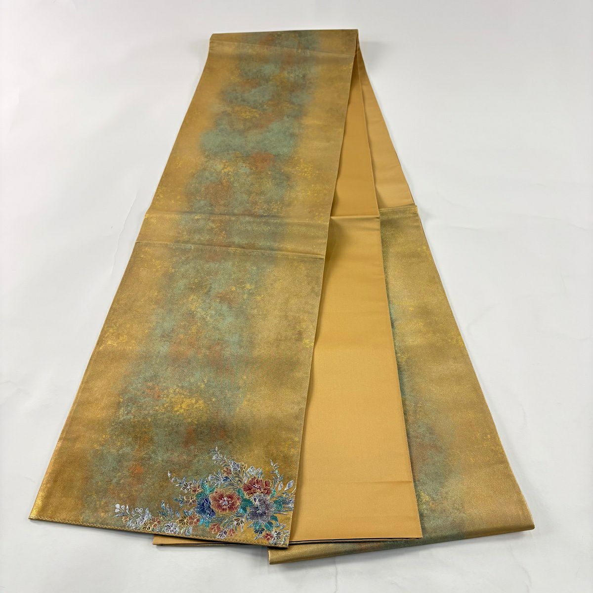 袋帯 逸品 草花 金糸 箔 水色 六通 正絹