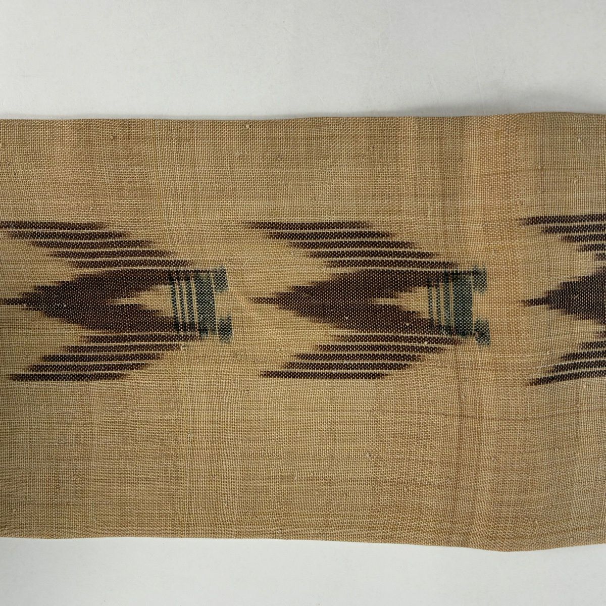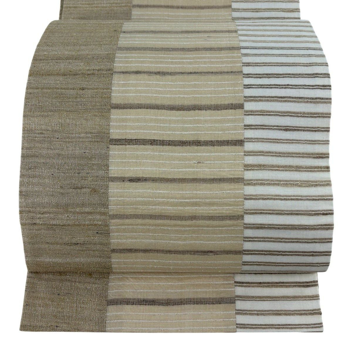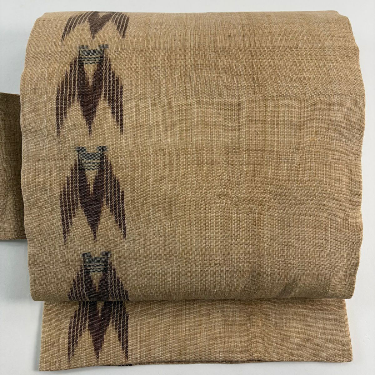 反物 逸品 帯反 夏帯 縞 絣柄 茶色 芭蕉