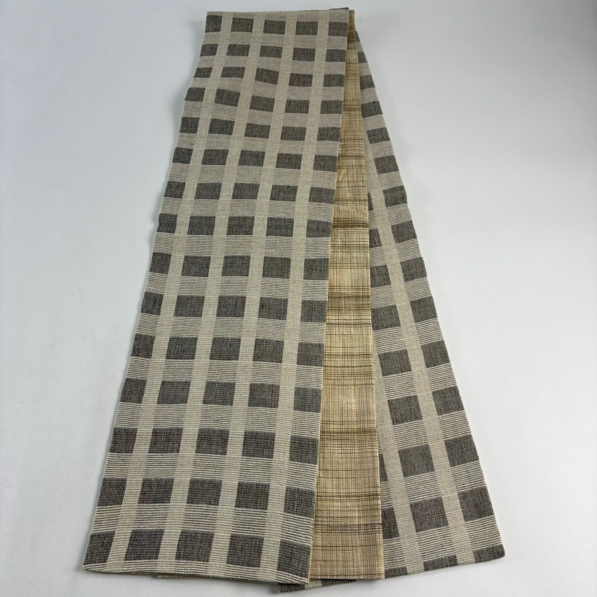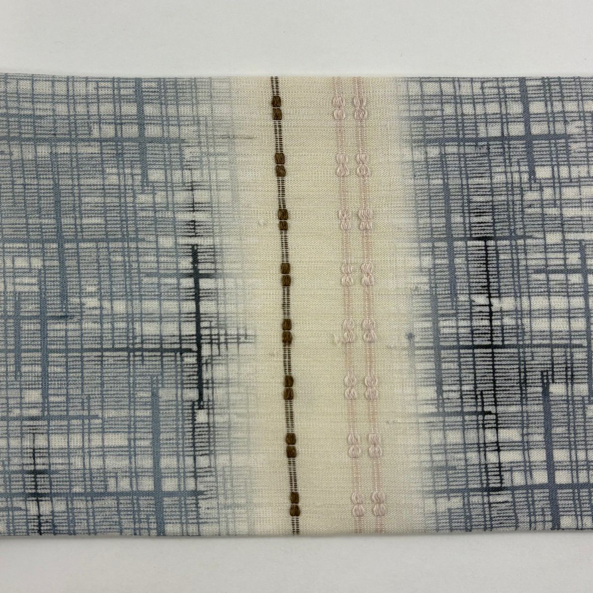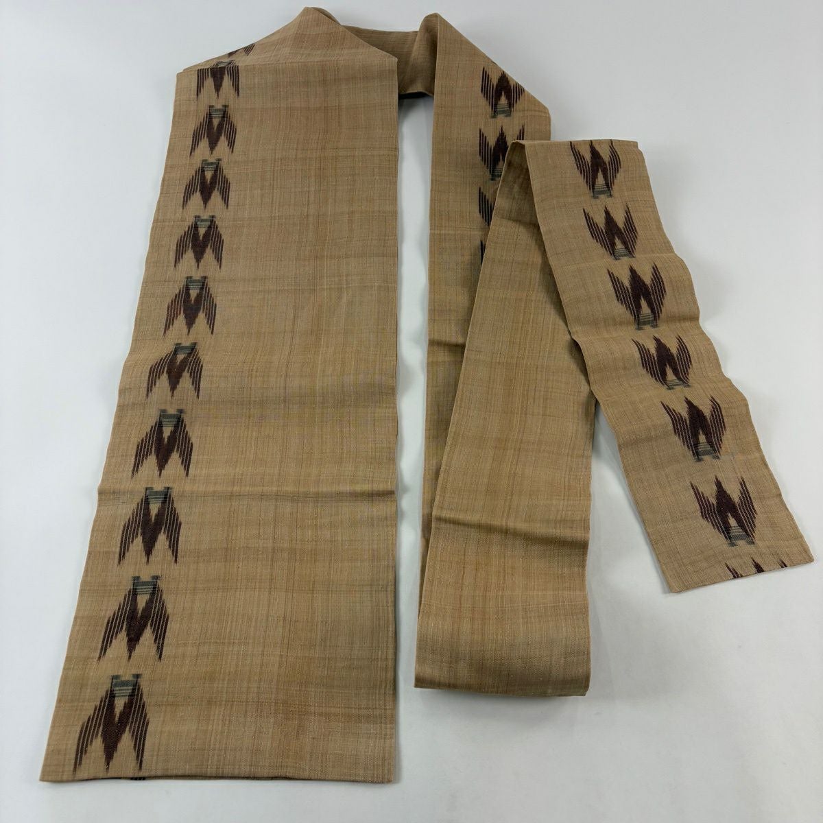 反物 逸品 帯反 夏帯 縞 絣柄 茶色 芭蕉