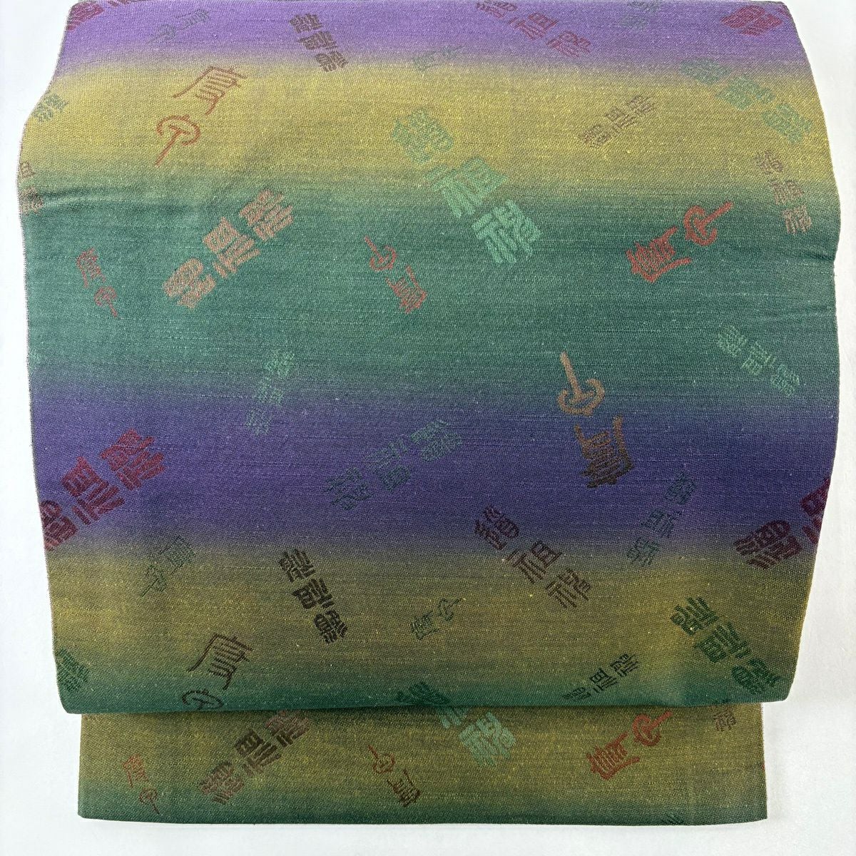 袋帯 逸品 文字文 ぼかし 紫 お太鼓柄 正絹