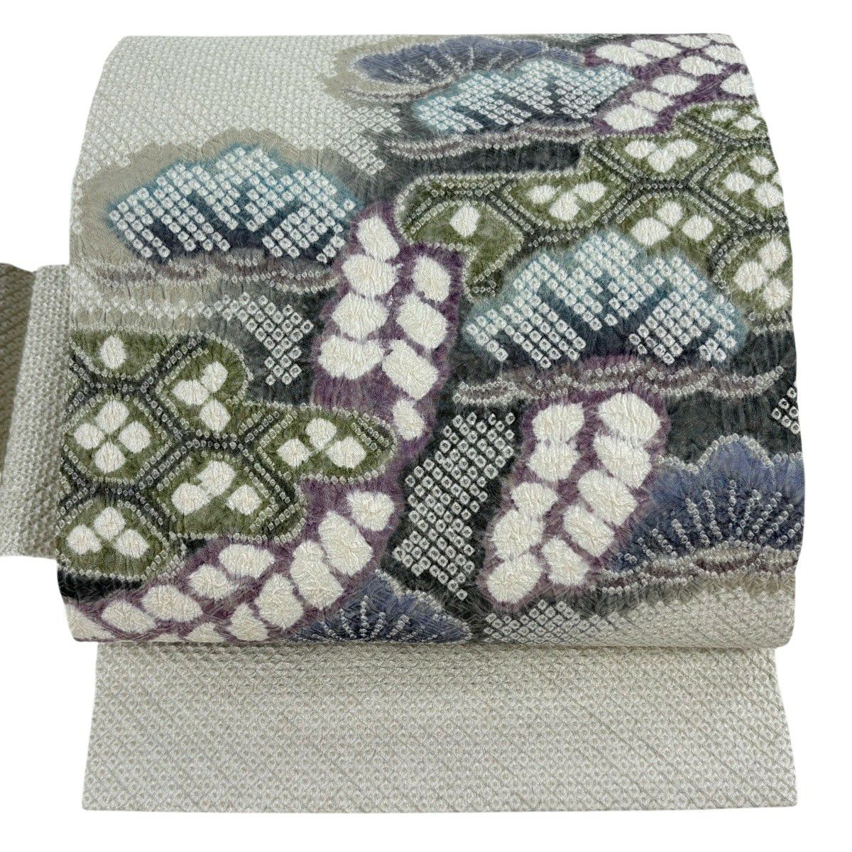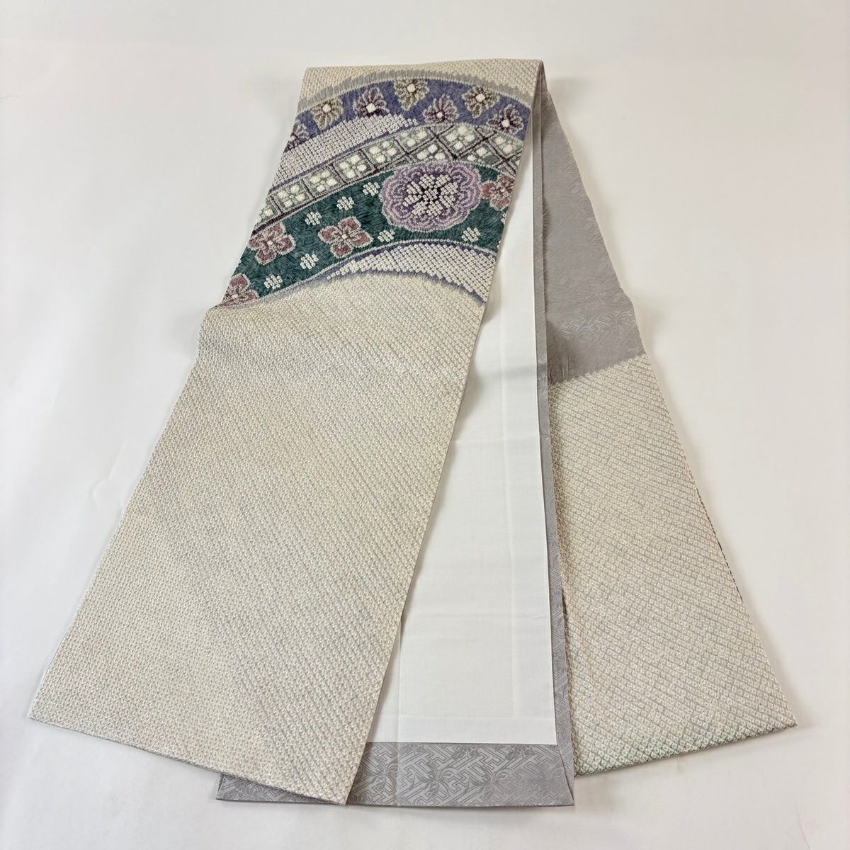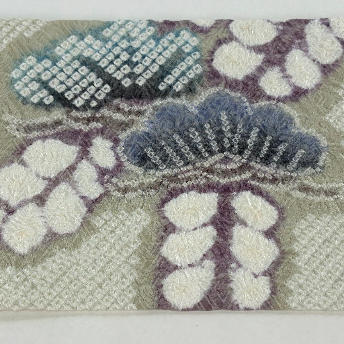 開き名古屋帯 逸品 花 菱 絞り 灰紫 正絹