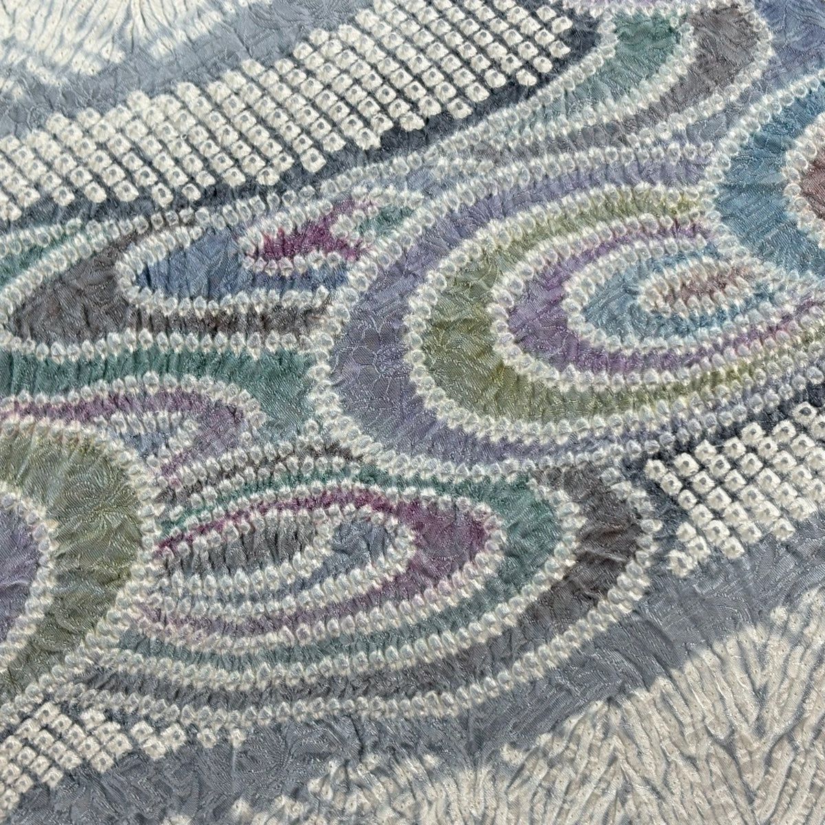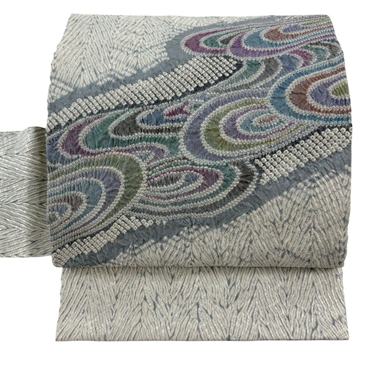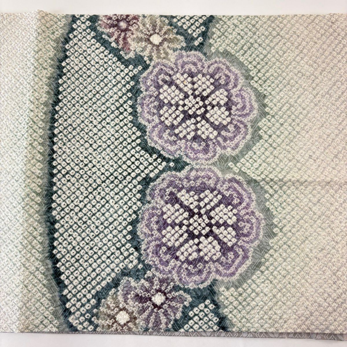 開き名古屋帯 逸品 花 菱 絞り 灰紫 正絹