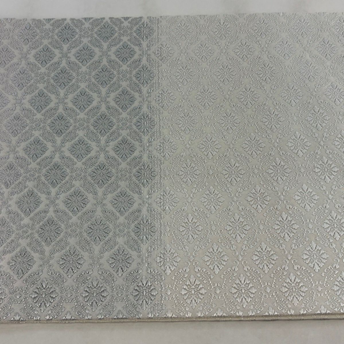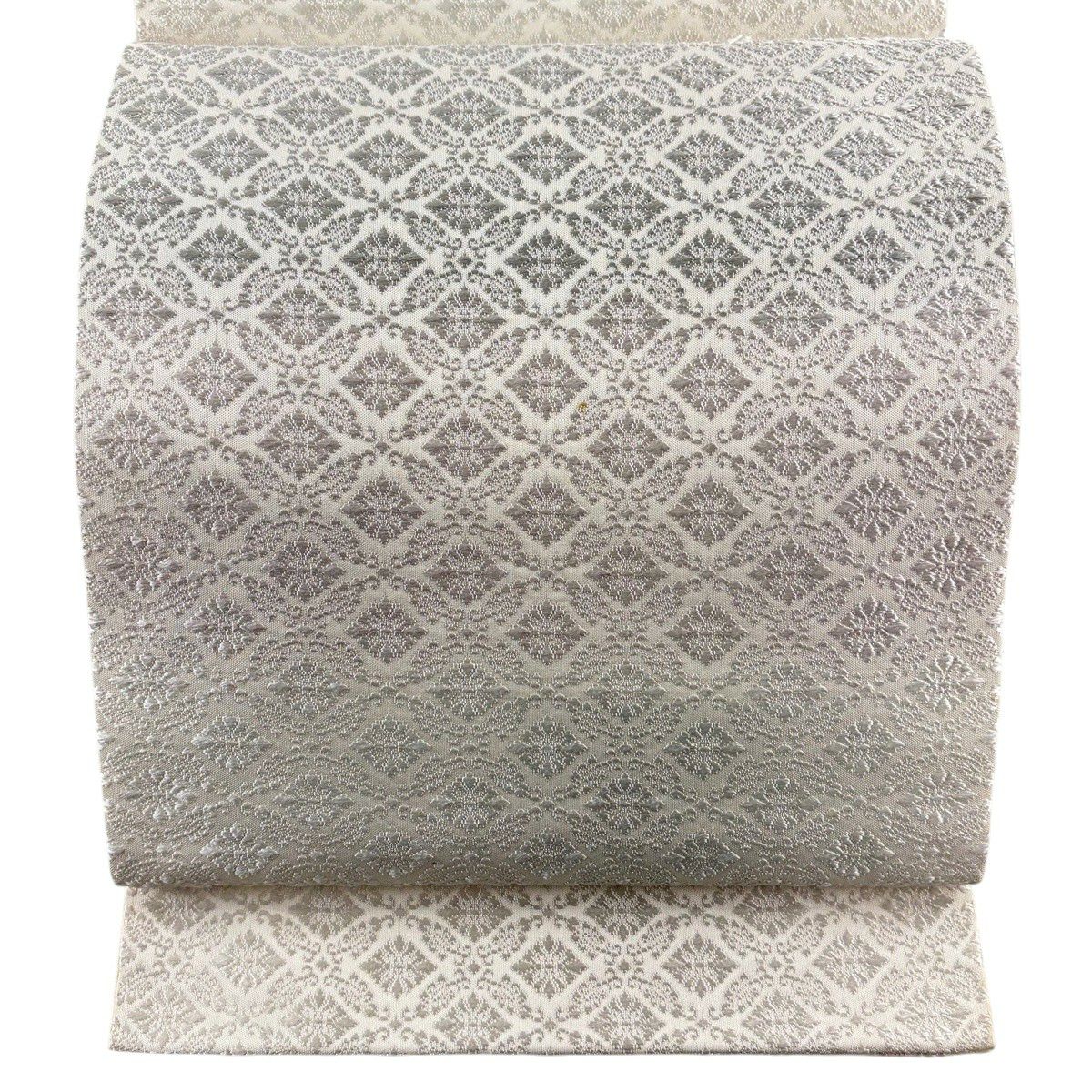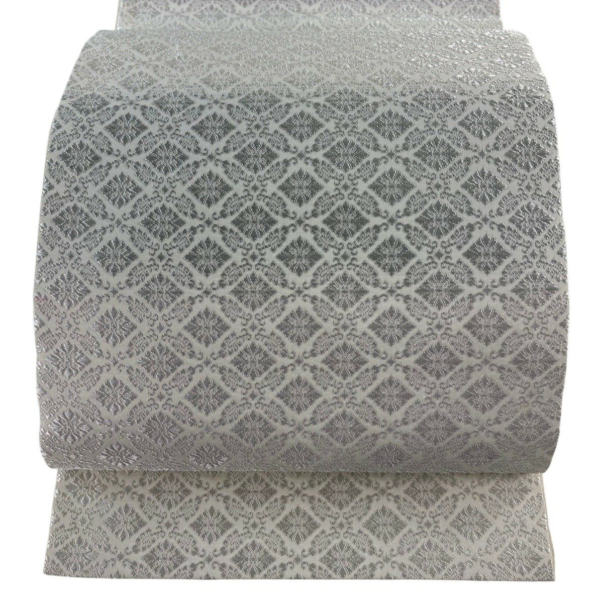 袋帯 逸品 唐織 菱 七宝 唐織 灰紫 六通 正絹