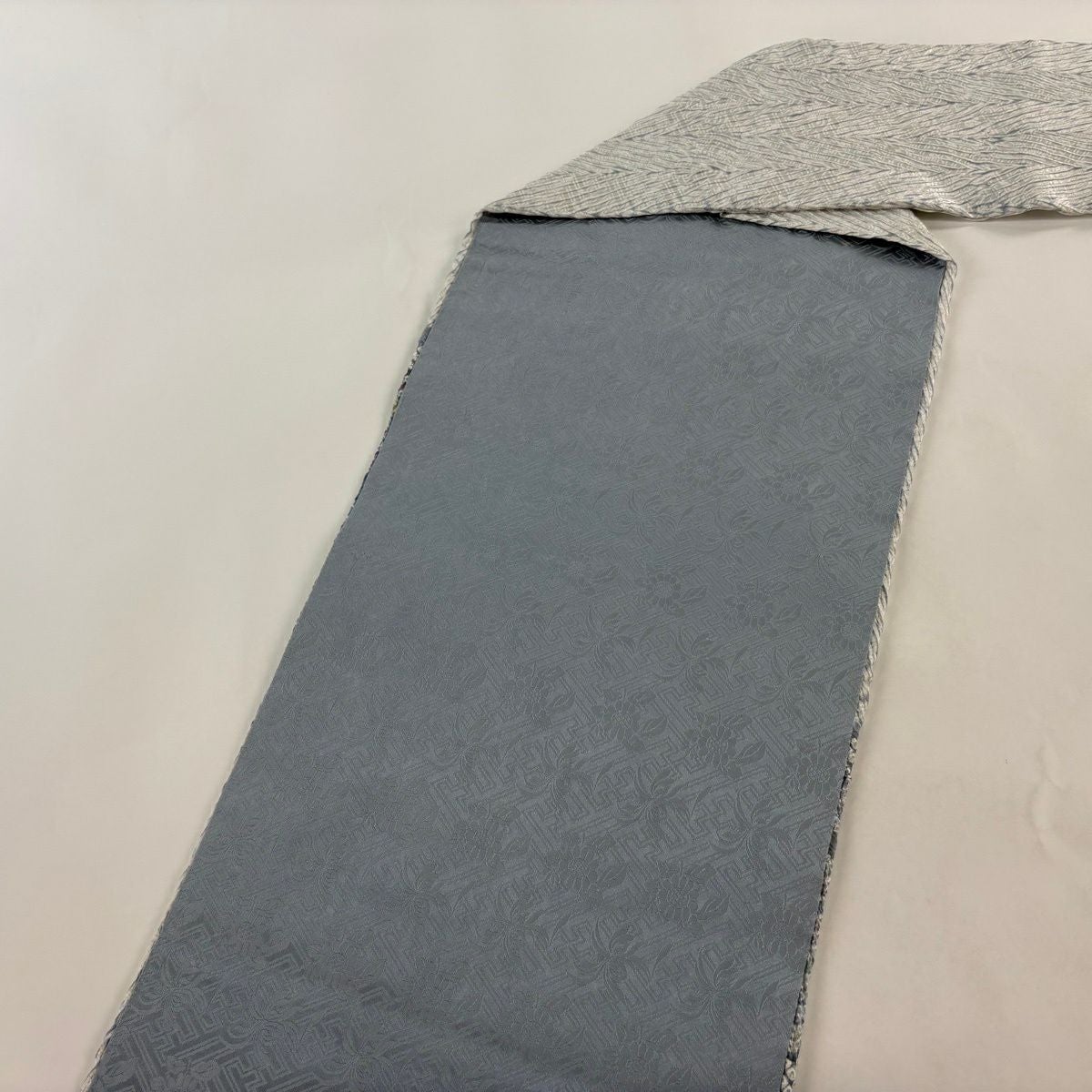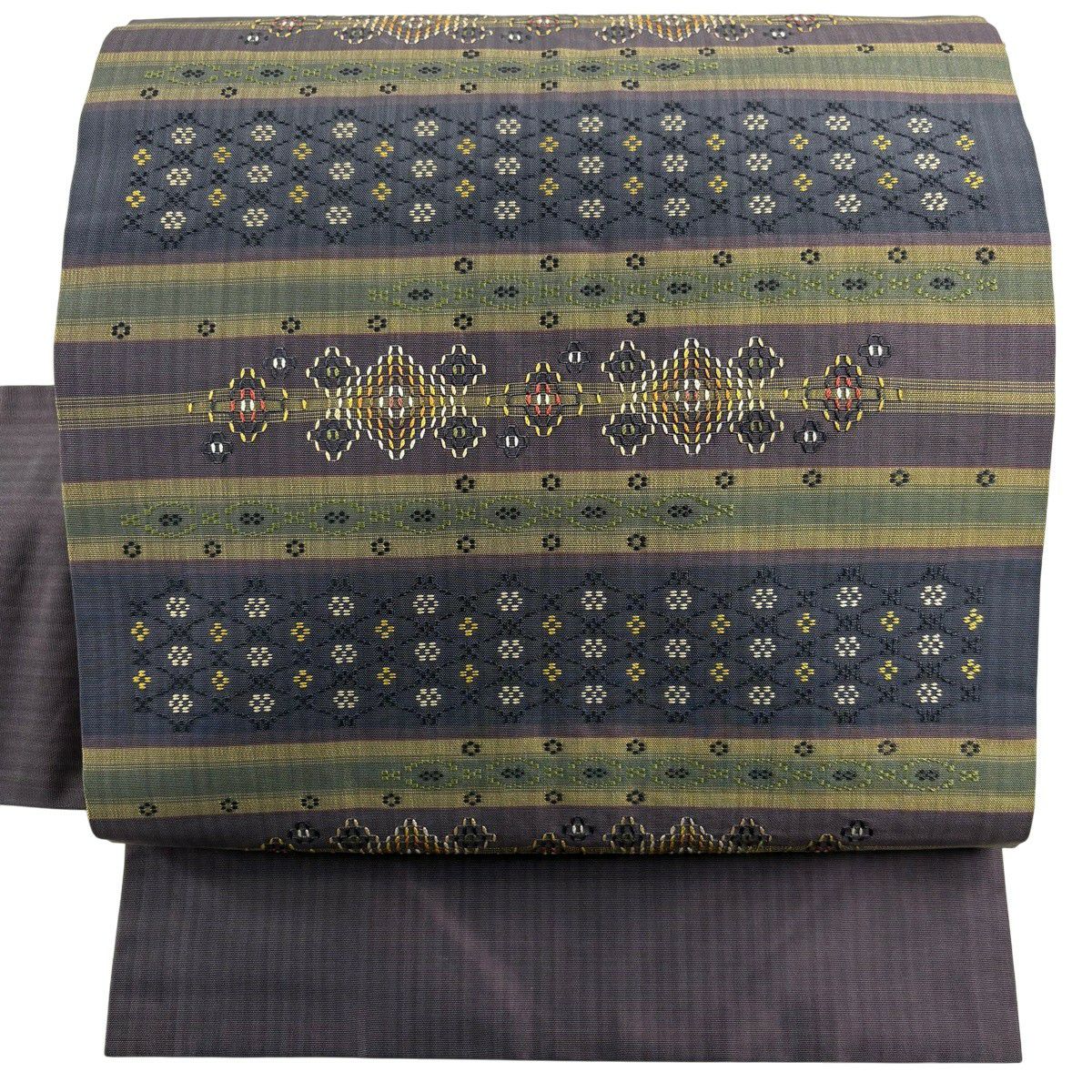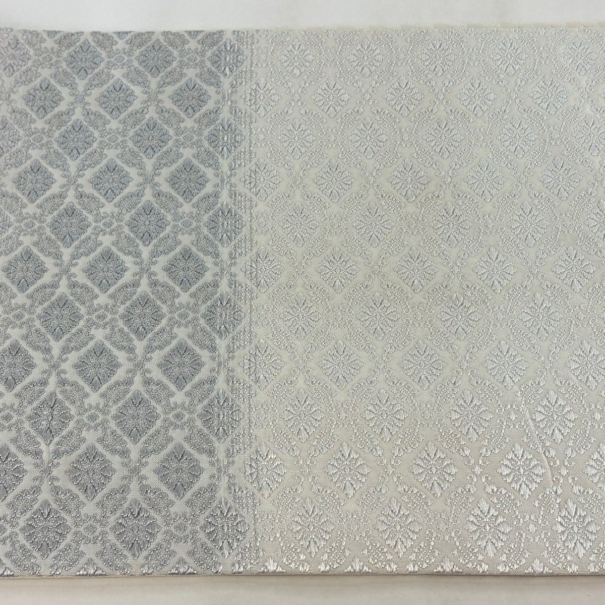 袋帯 逸品 唐織 菱 七宝 唐織 灰紫 六通 正絹