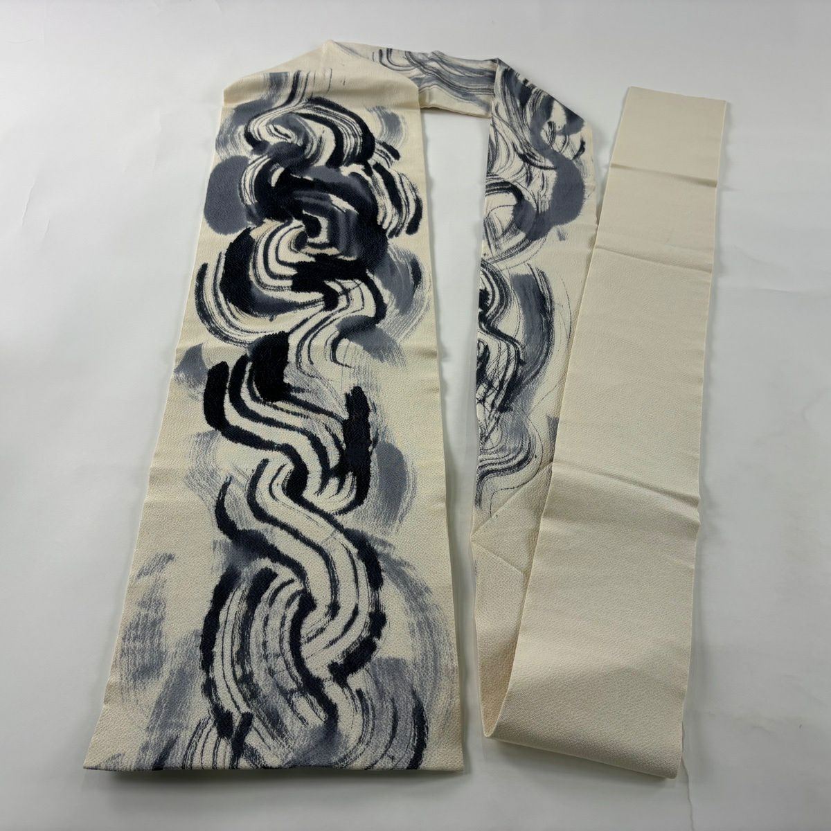 名古屋帯 逸品 刷毛目 縮緬 クリーム 正絹