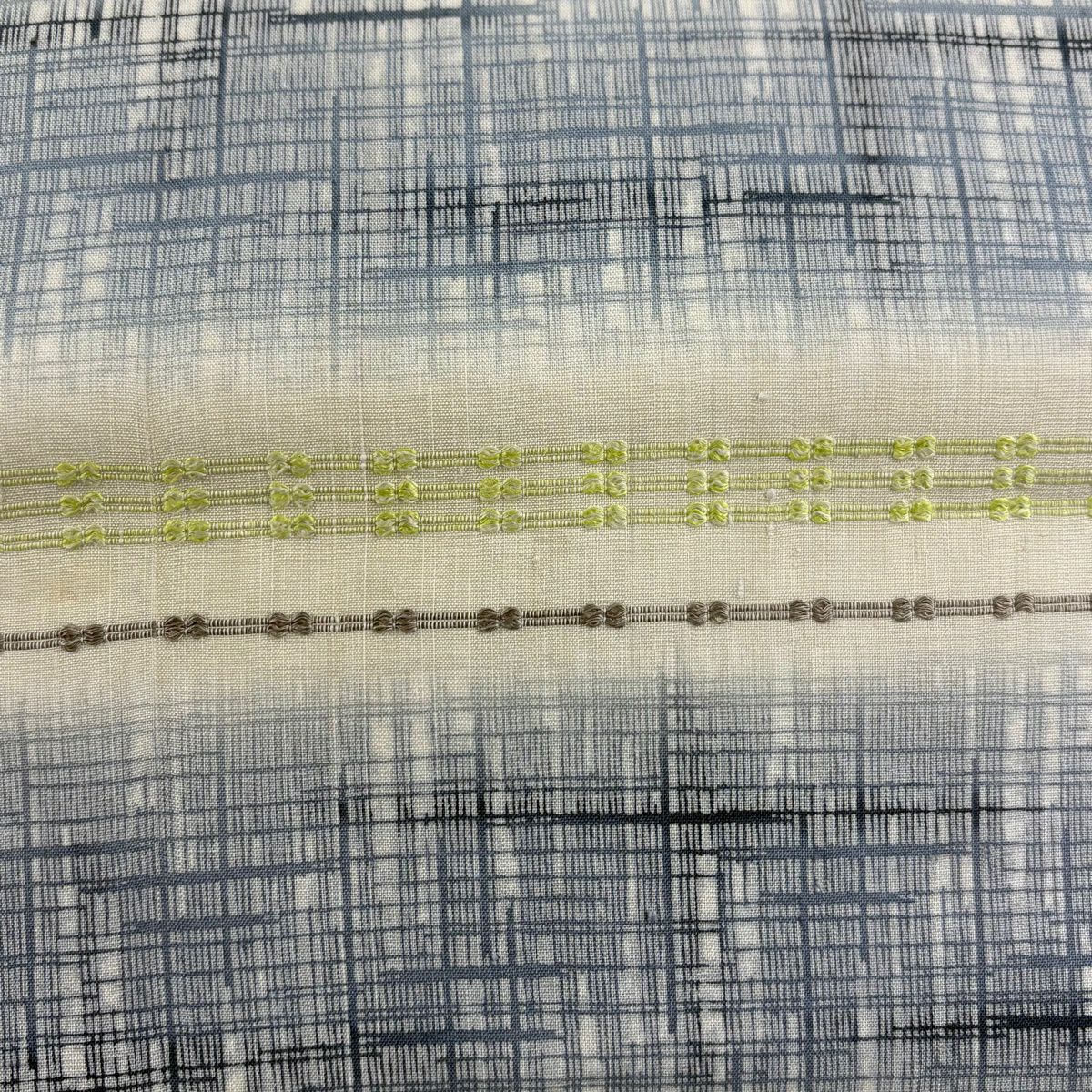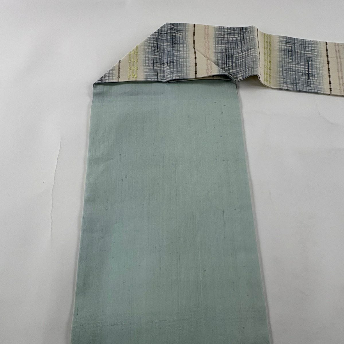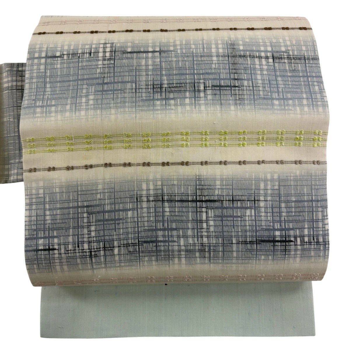 名古屋帯 逸品 紬地 縞 格子 青灰色 正絹