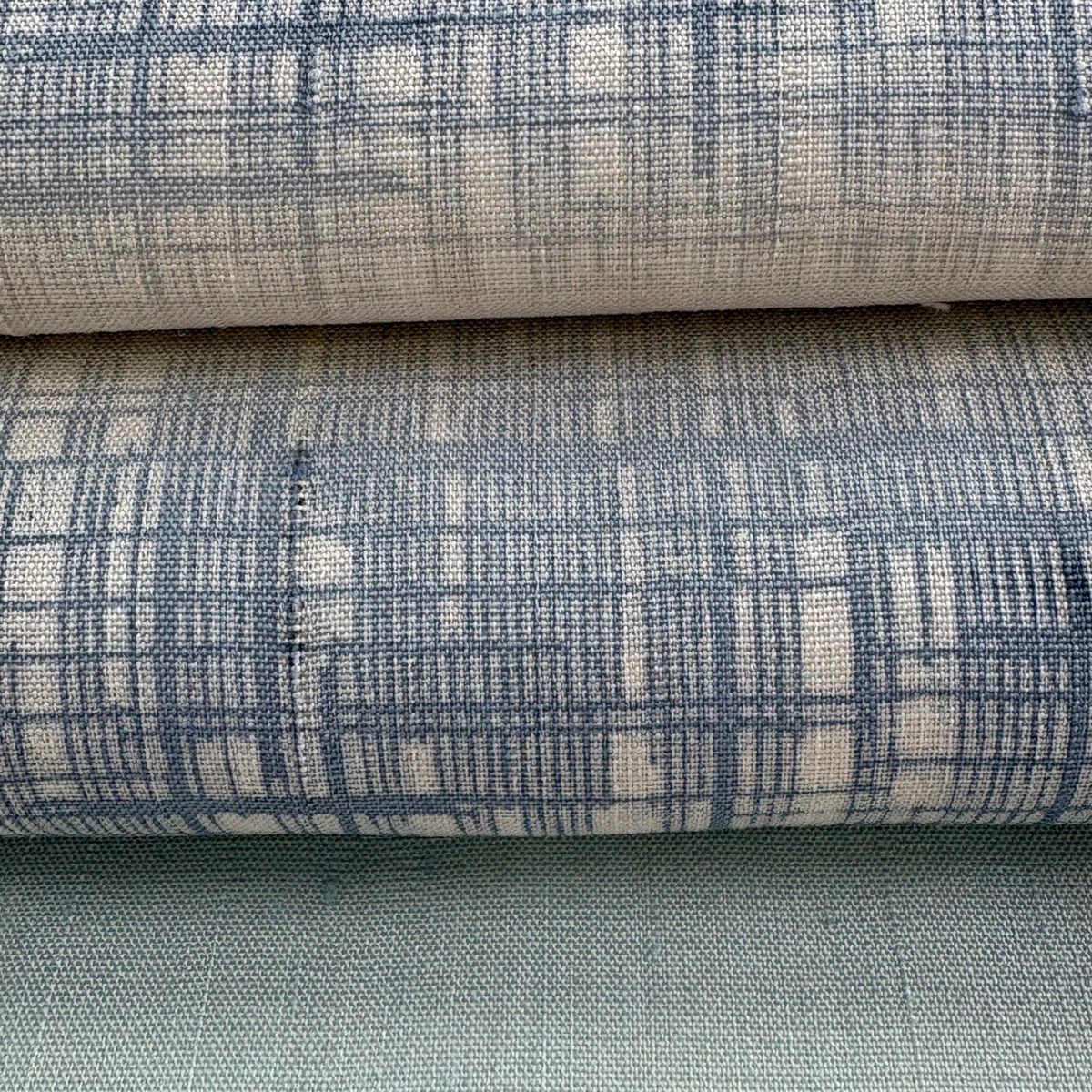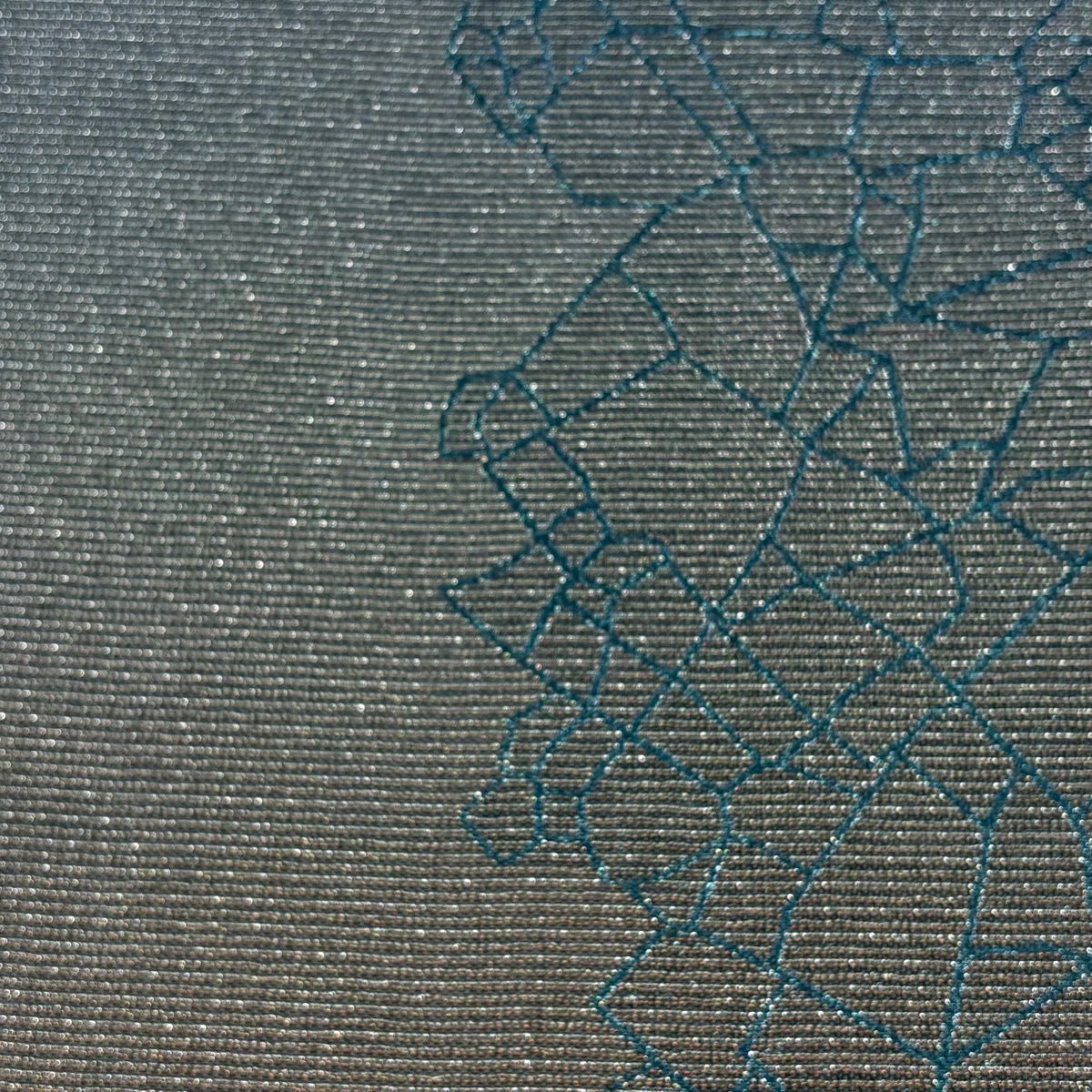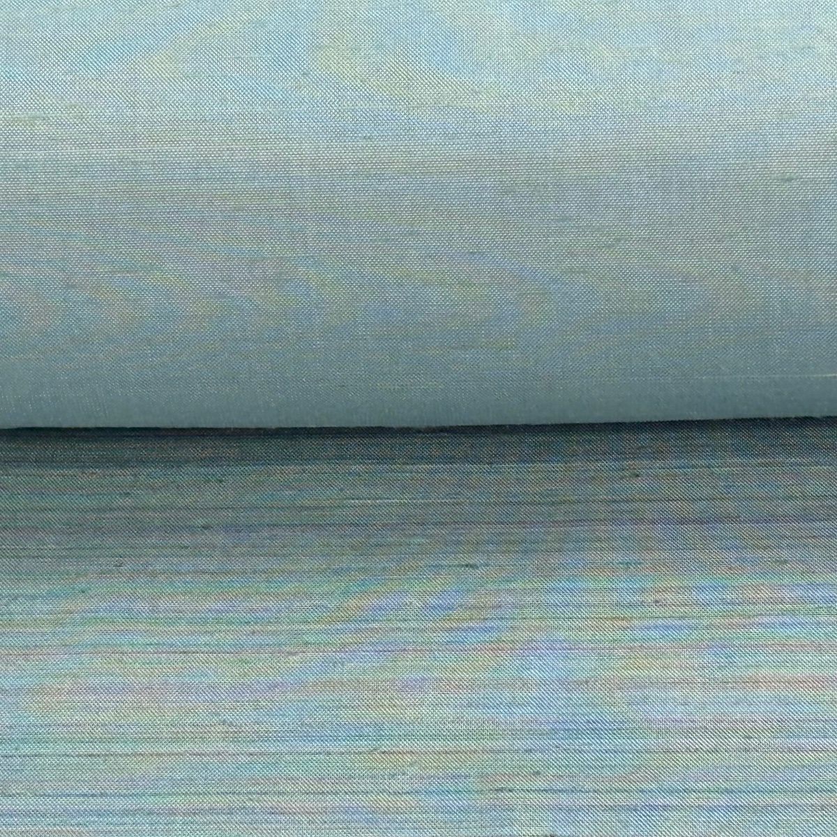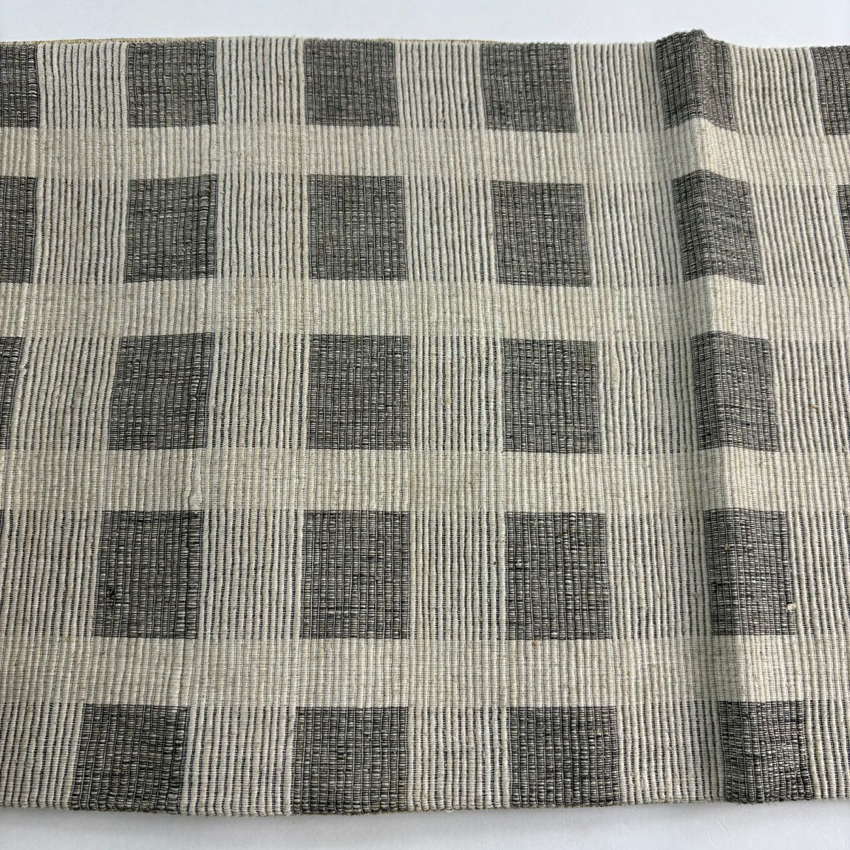 名古屋帯 逸品 紬地 縞 格子 青灰色 正絹