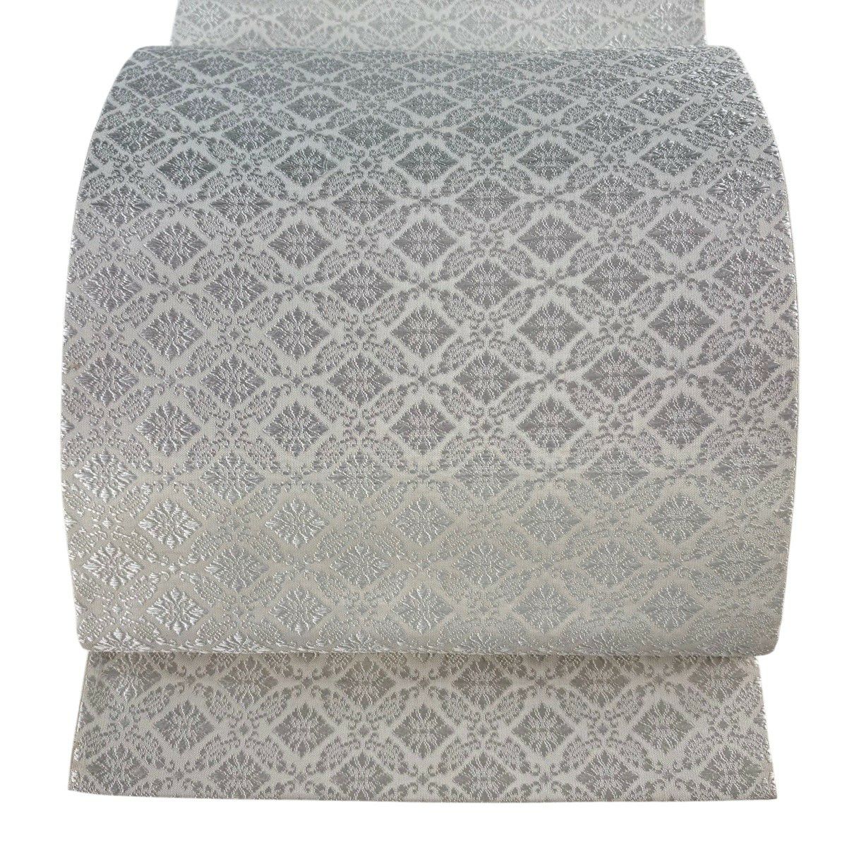 袋帯 逸品 花菱 七宝 唐織 白 六通 正絹