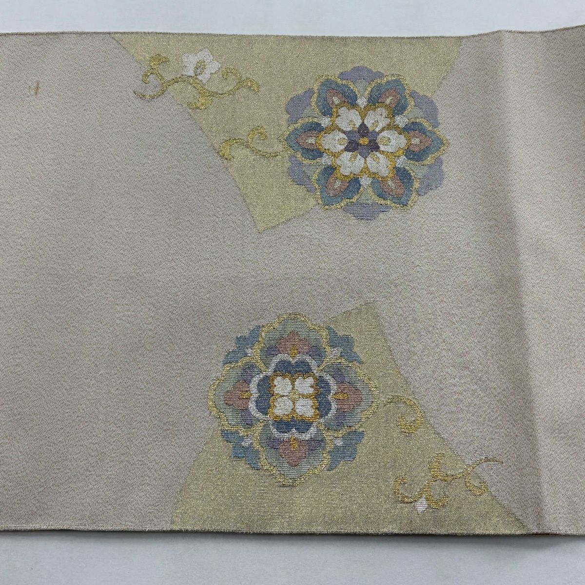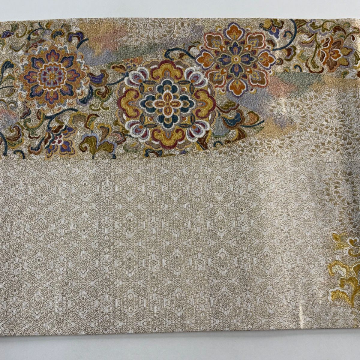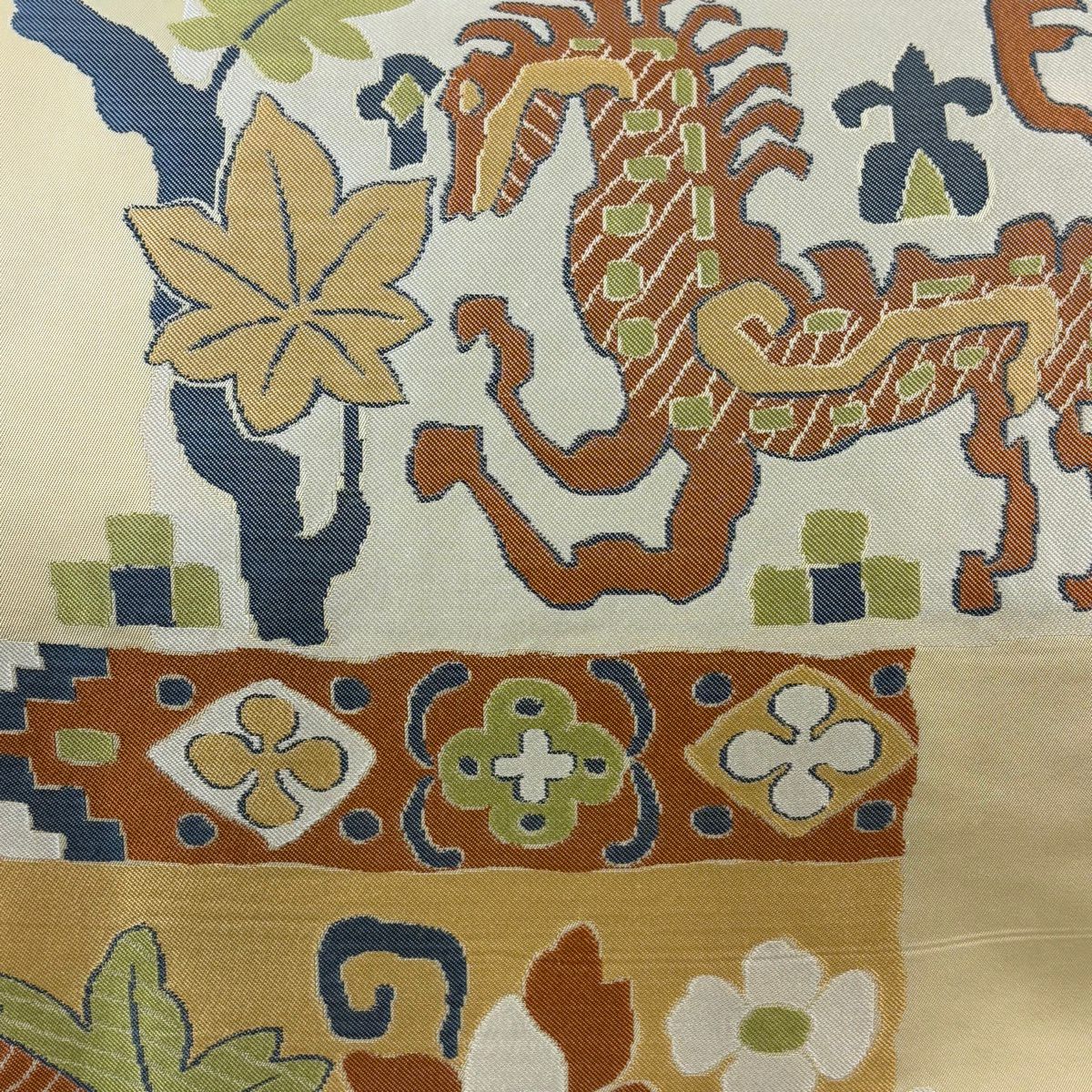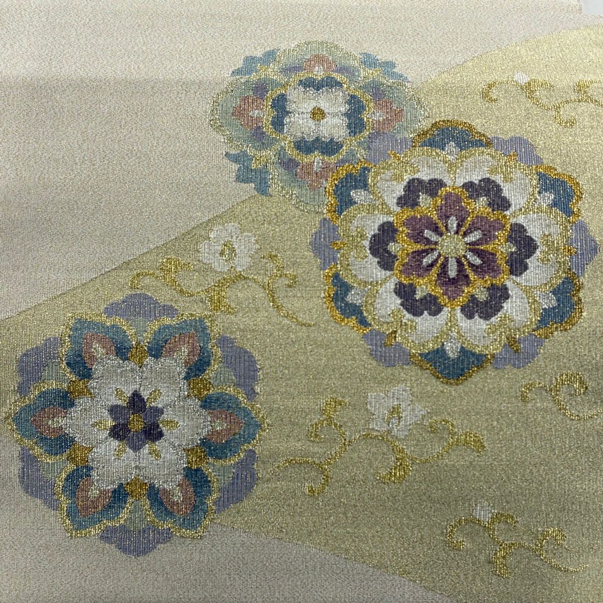 袋帯 逸品 やまと 華文 花唐草 金銀糸 ベージュ お太鼓柄 正絹