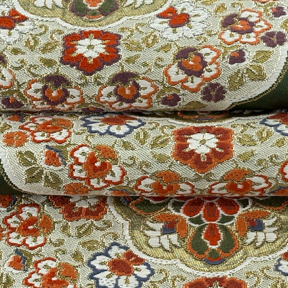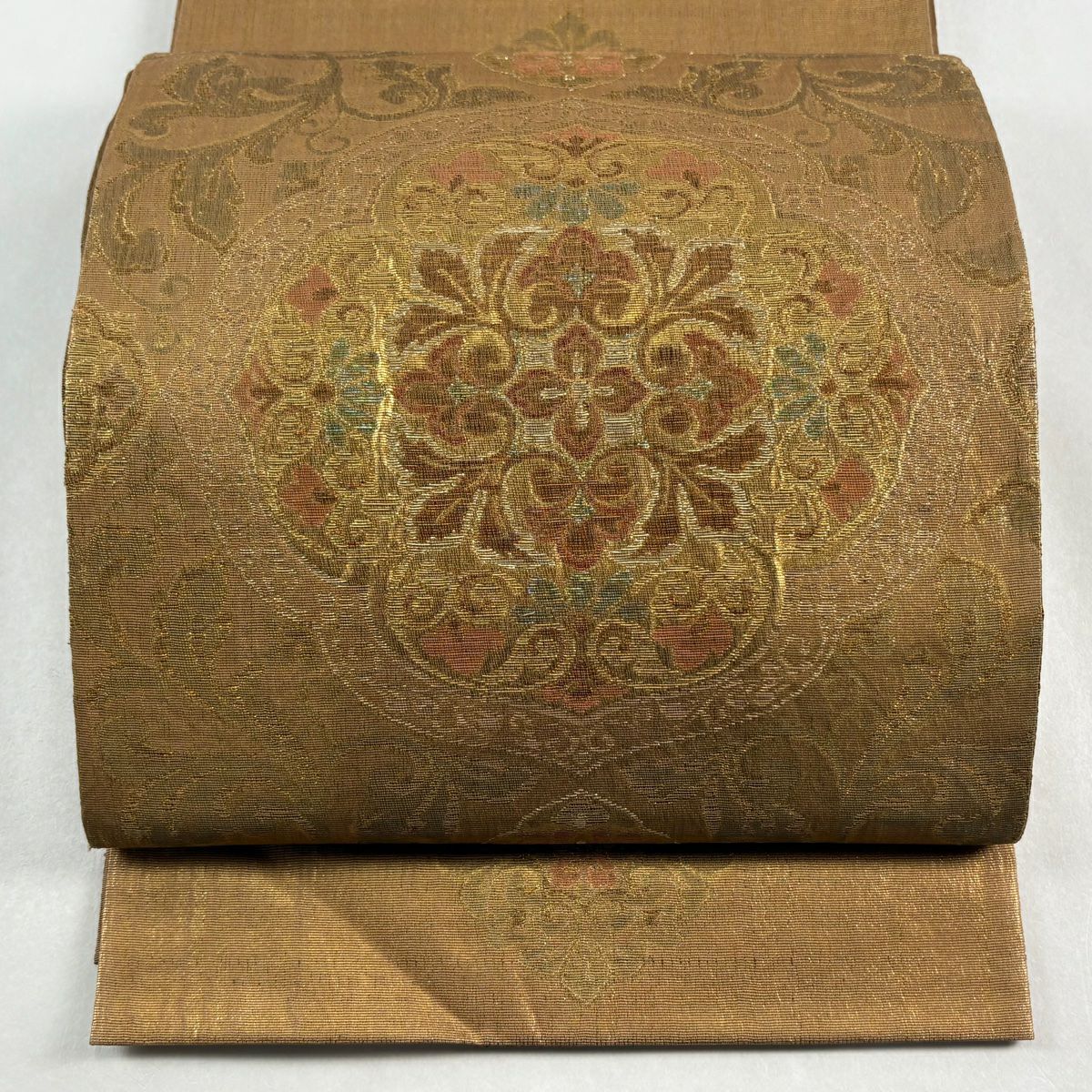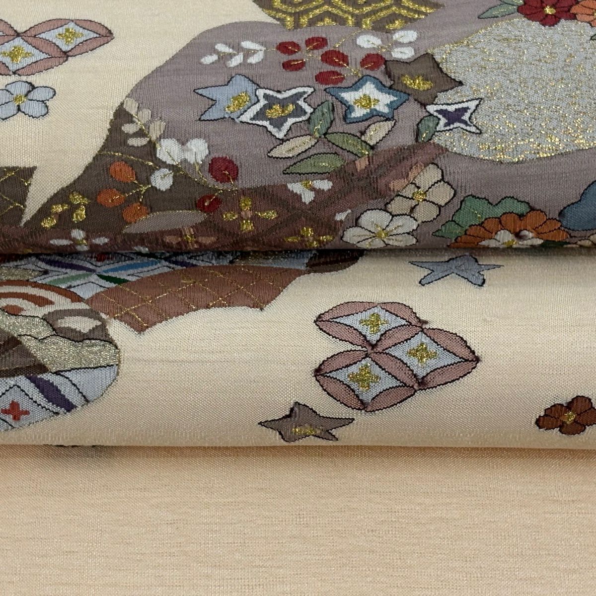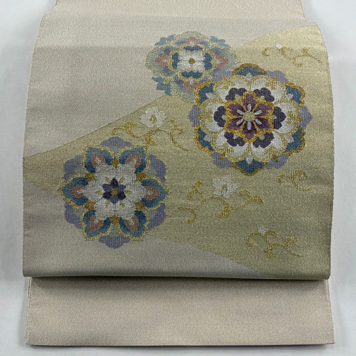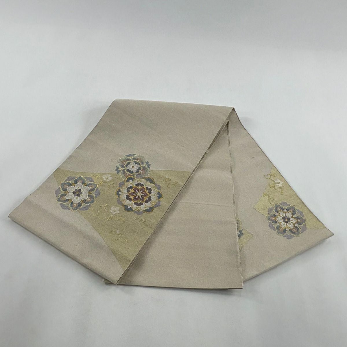 袋帯 逸品 やまと 華文 花唐草 金銀糸 ベージュ お太鼓柄 正絹