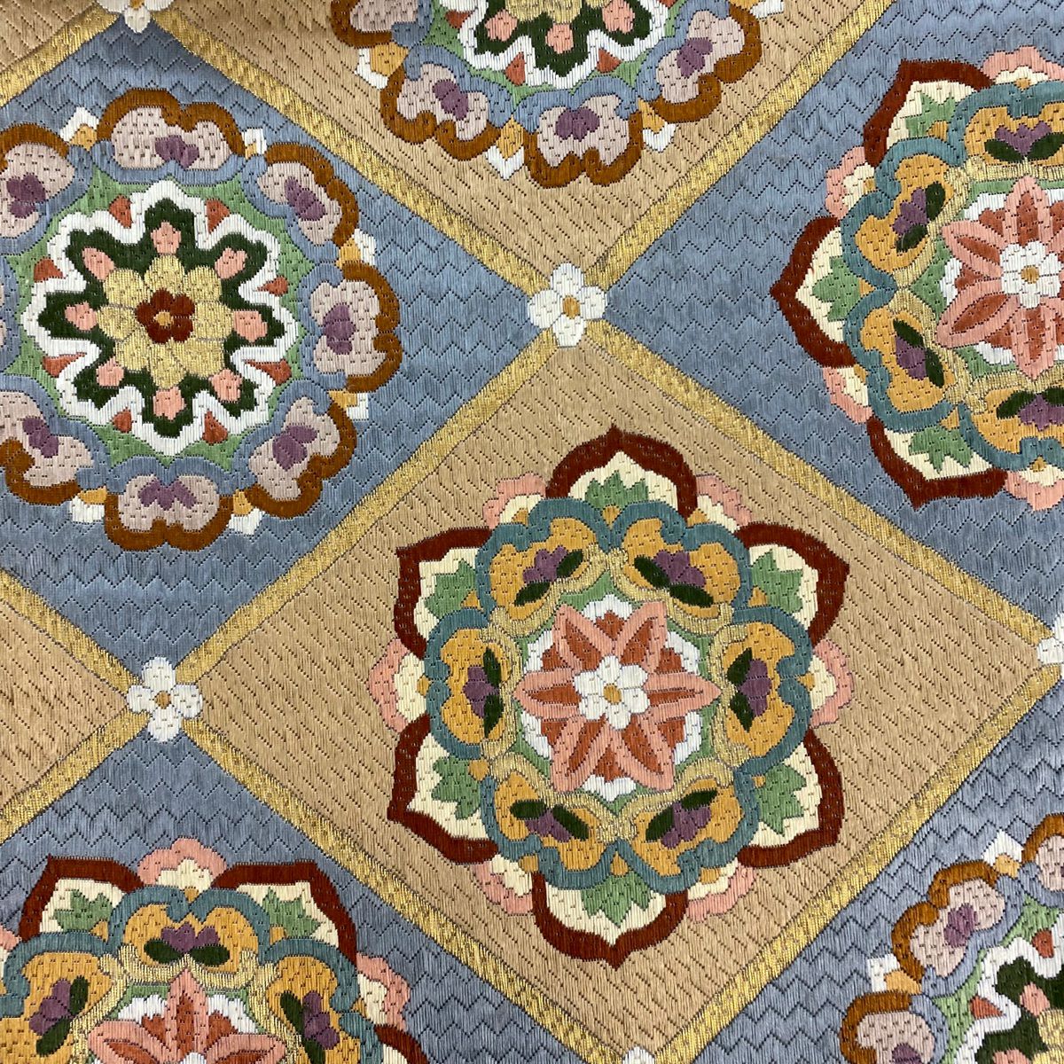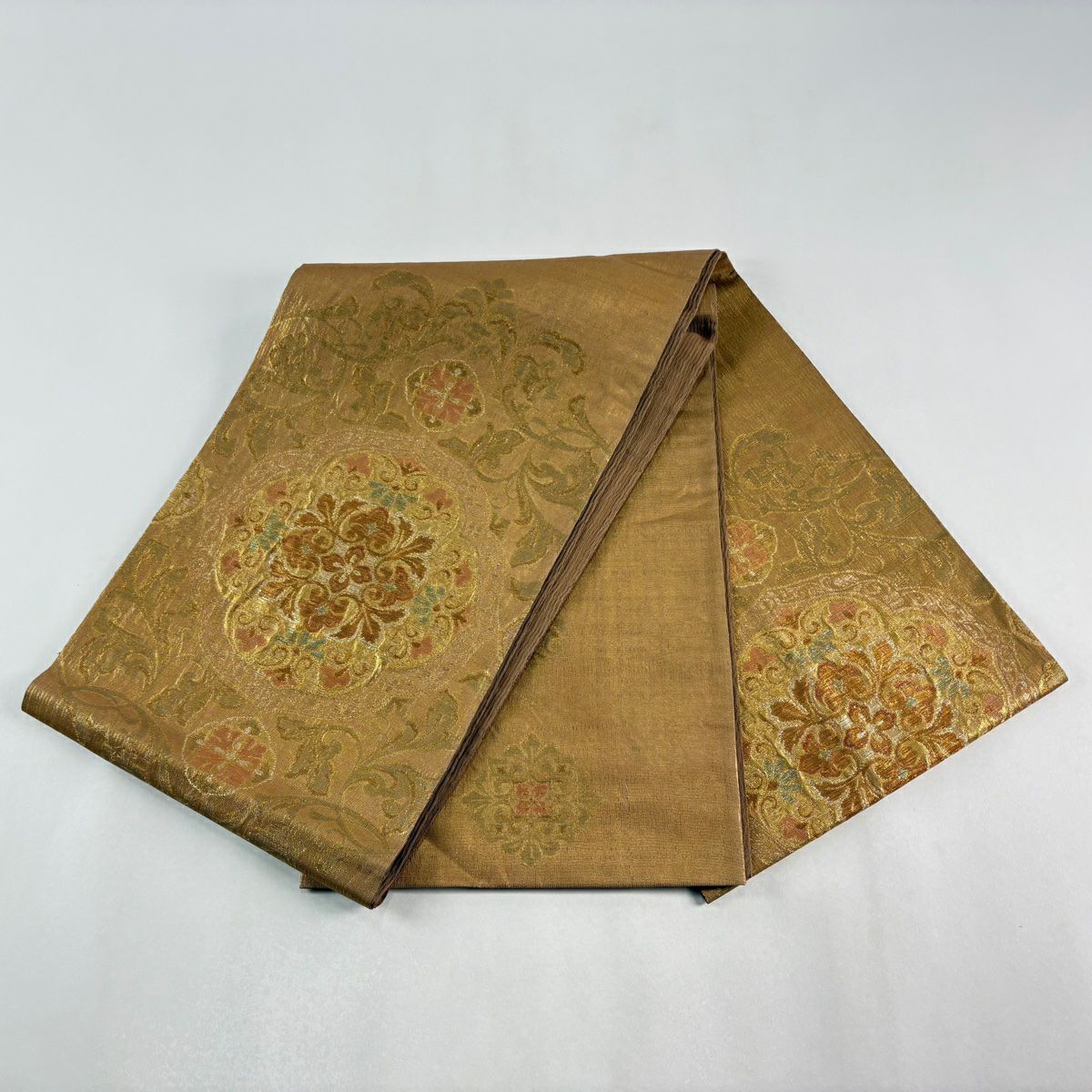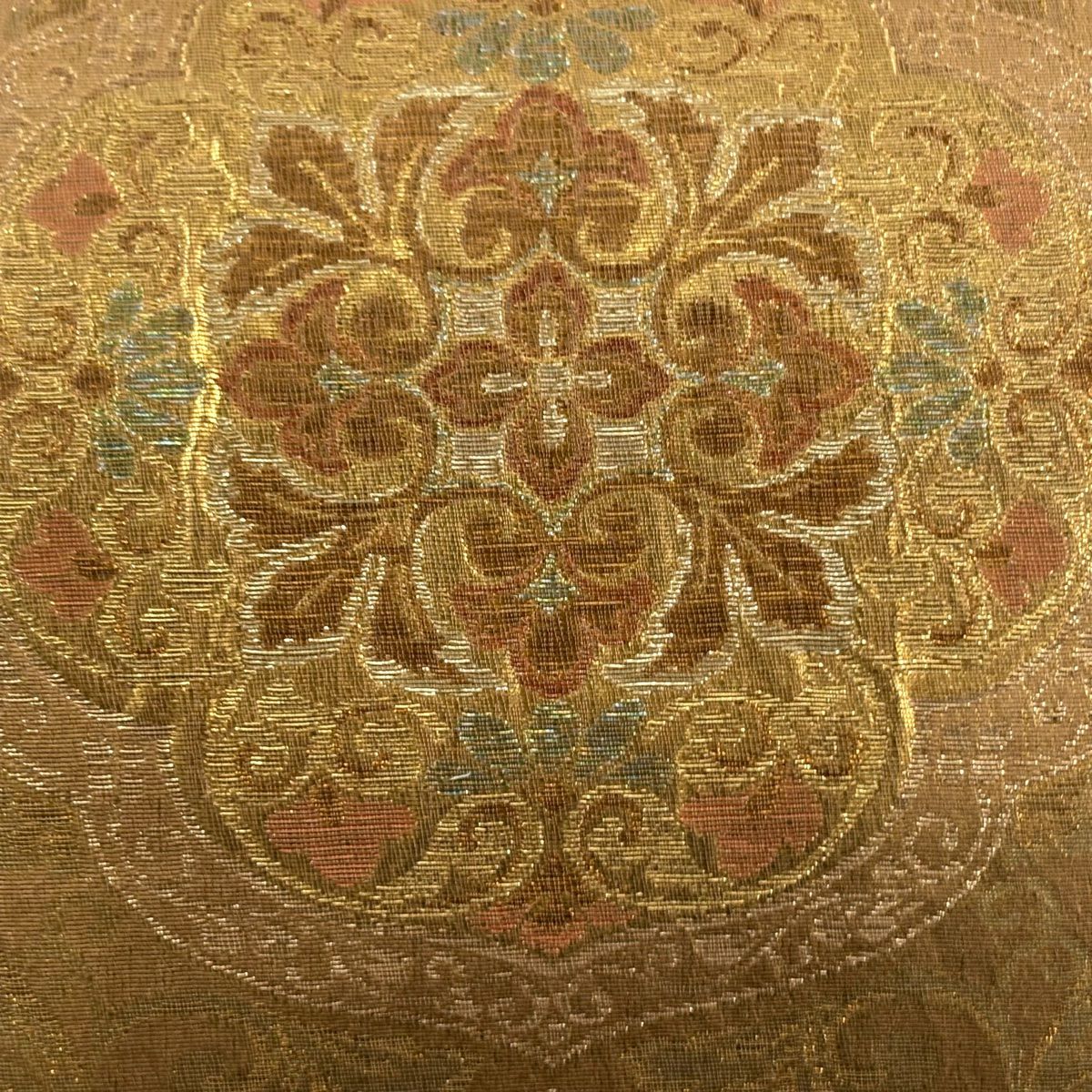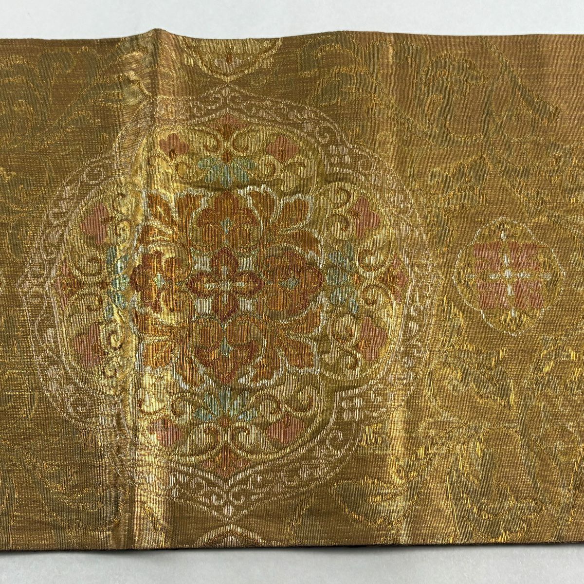 袋帯 逸品 やまと 華文 花唐草 金銀糸 ベージュ お太鼓柄 正絹