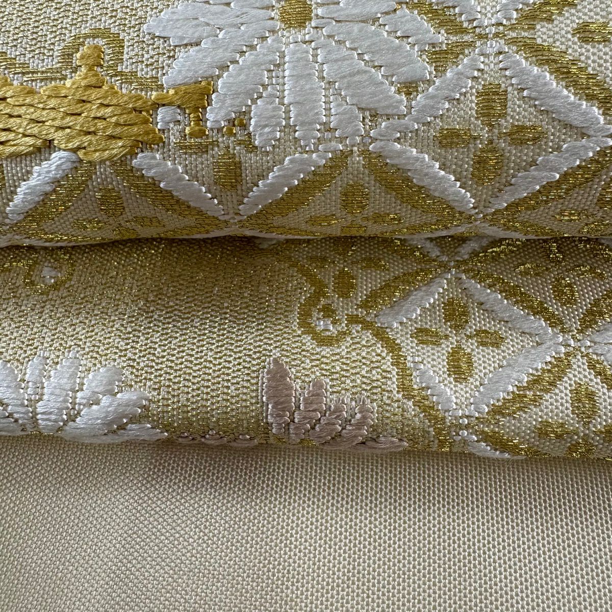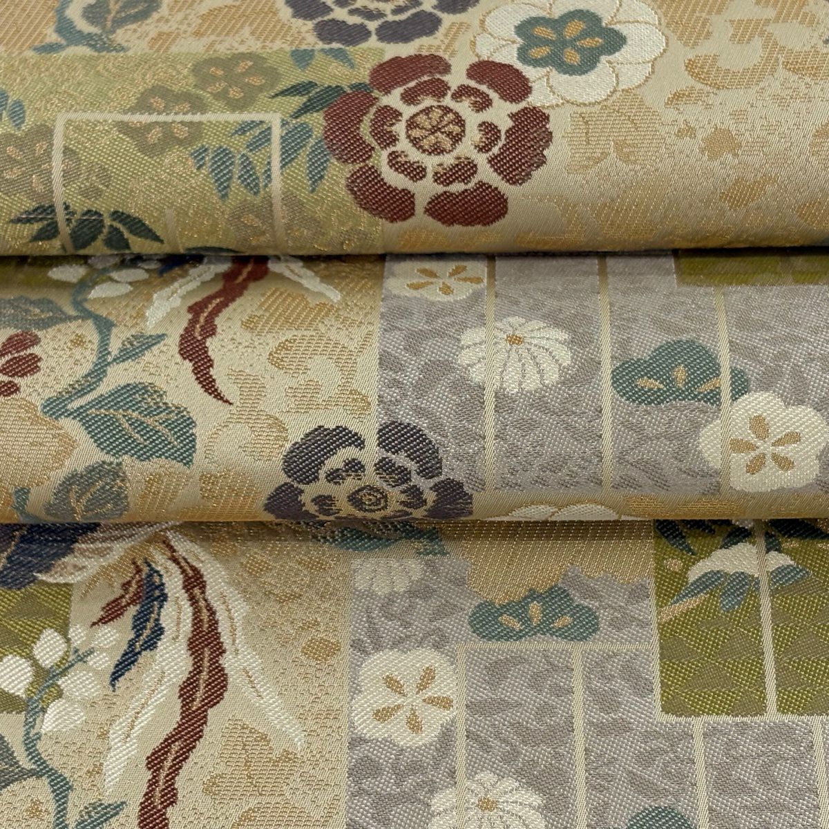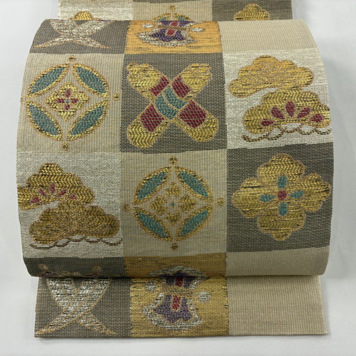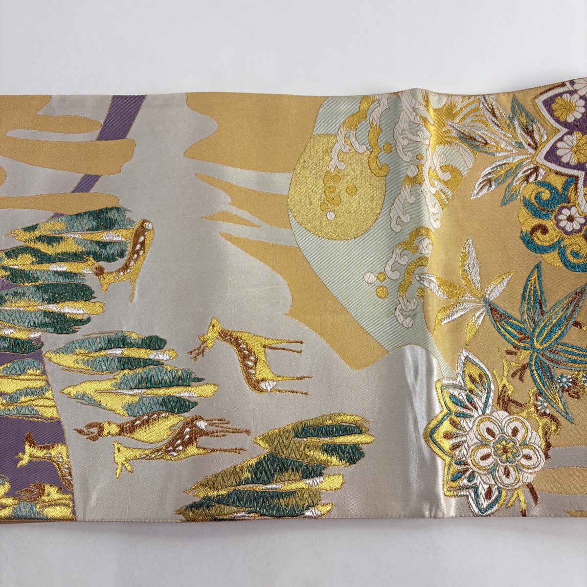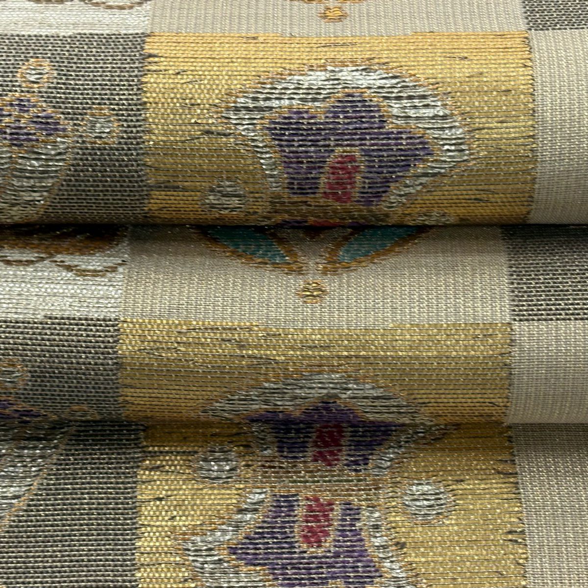 袋帯 逸品 やまと 華文 花唐草 金銀糸 ベージュ お太鼓柄 正絹