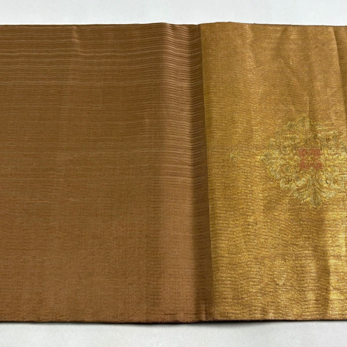 【美品】 袋帯 逸品 夏帯 菊 松 金銀糸 オレンジ お太鼓柄 正絹