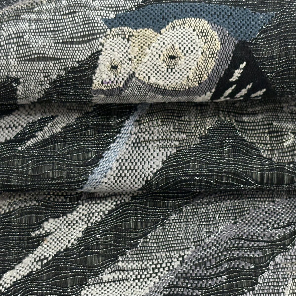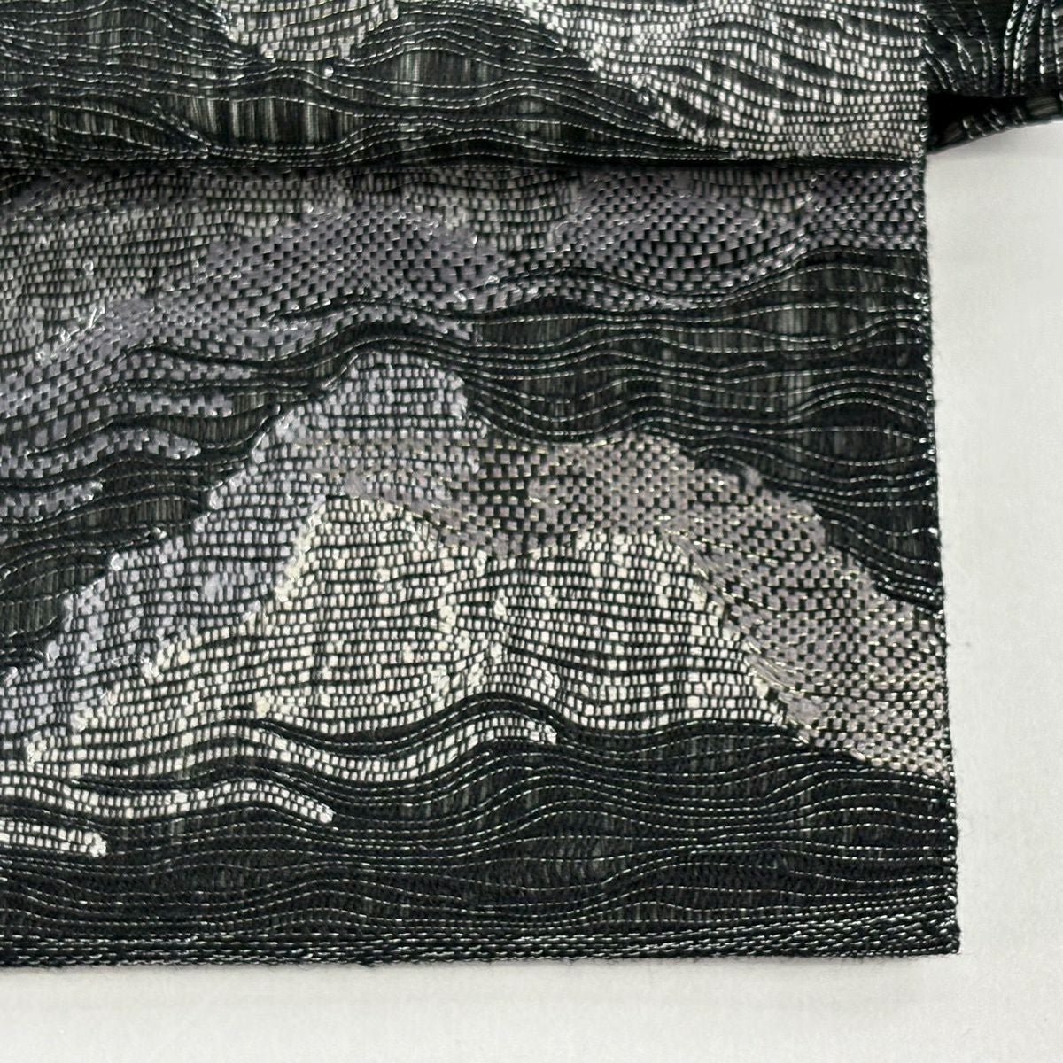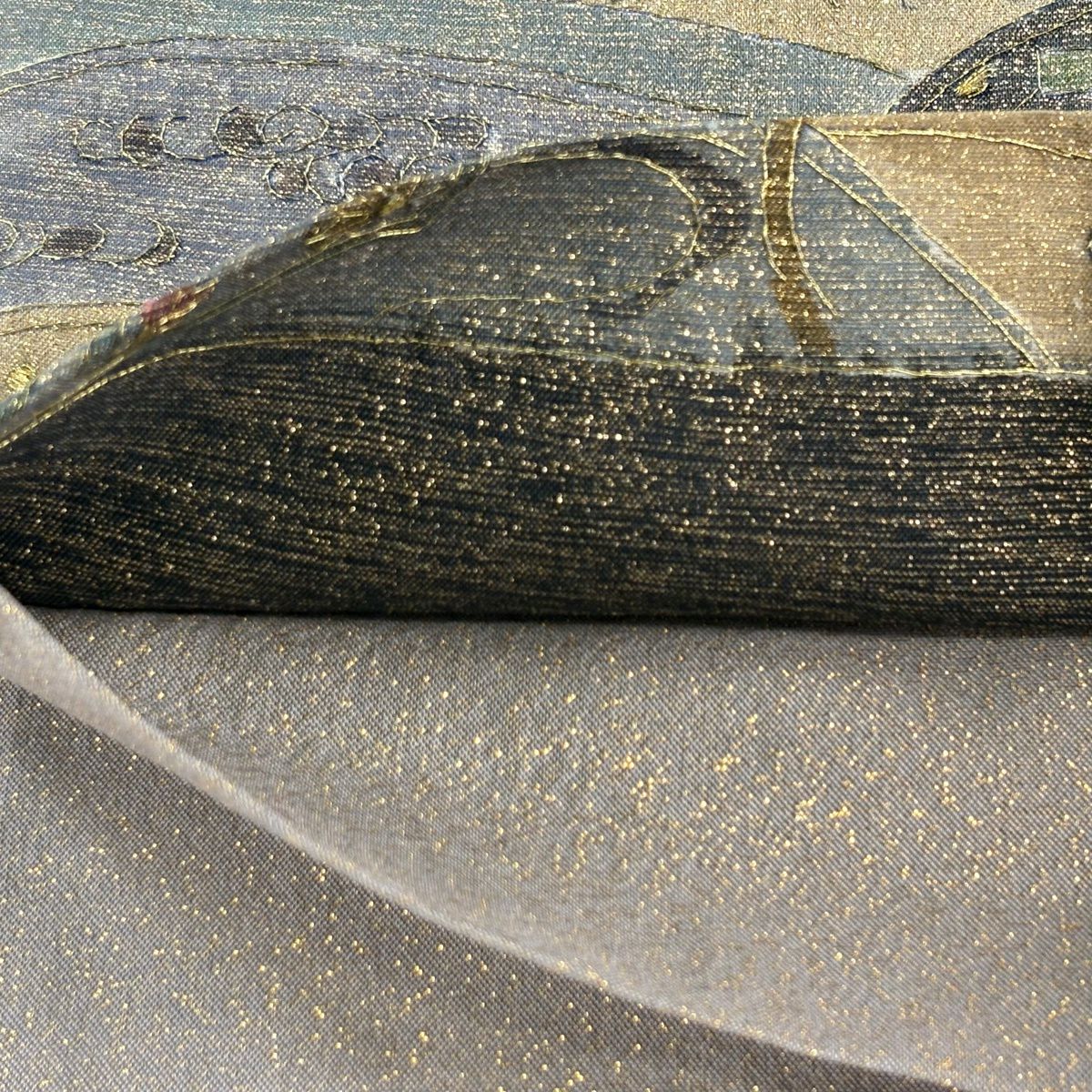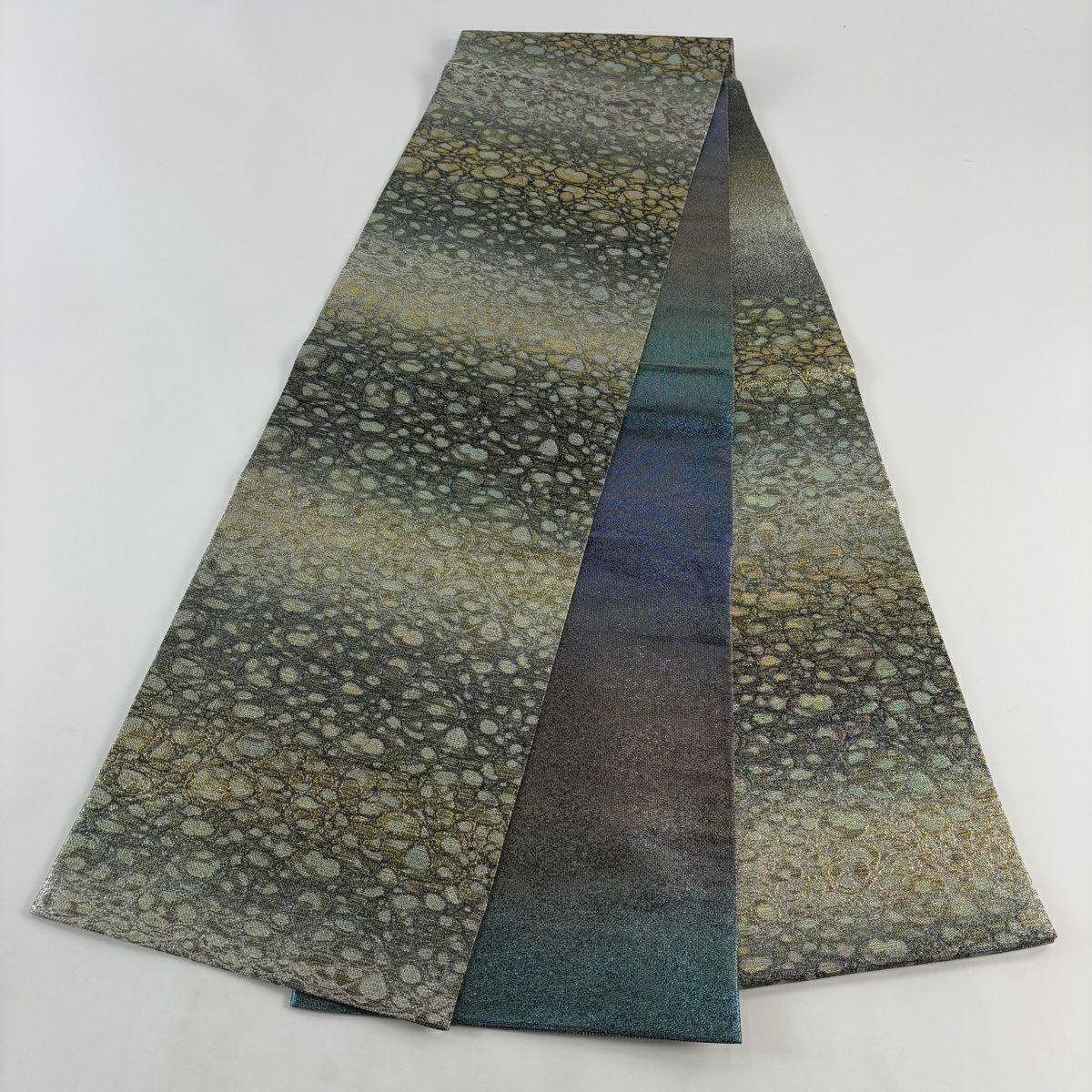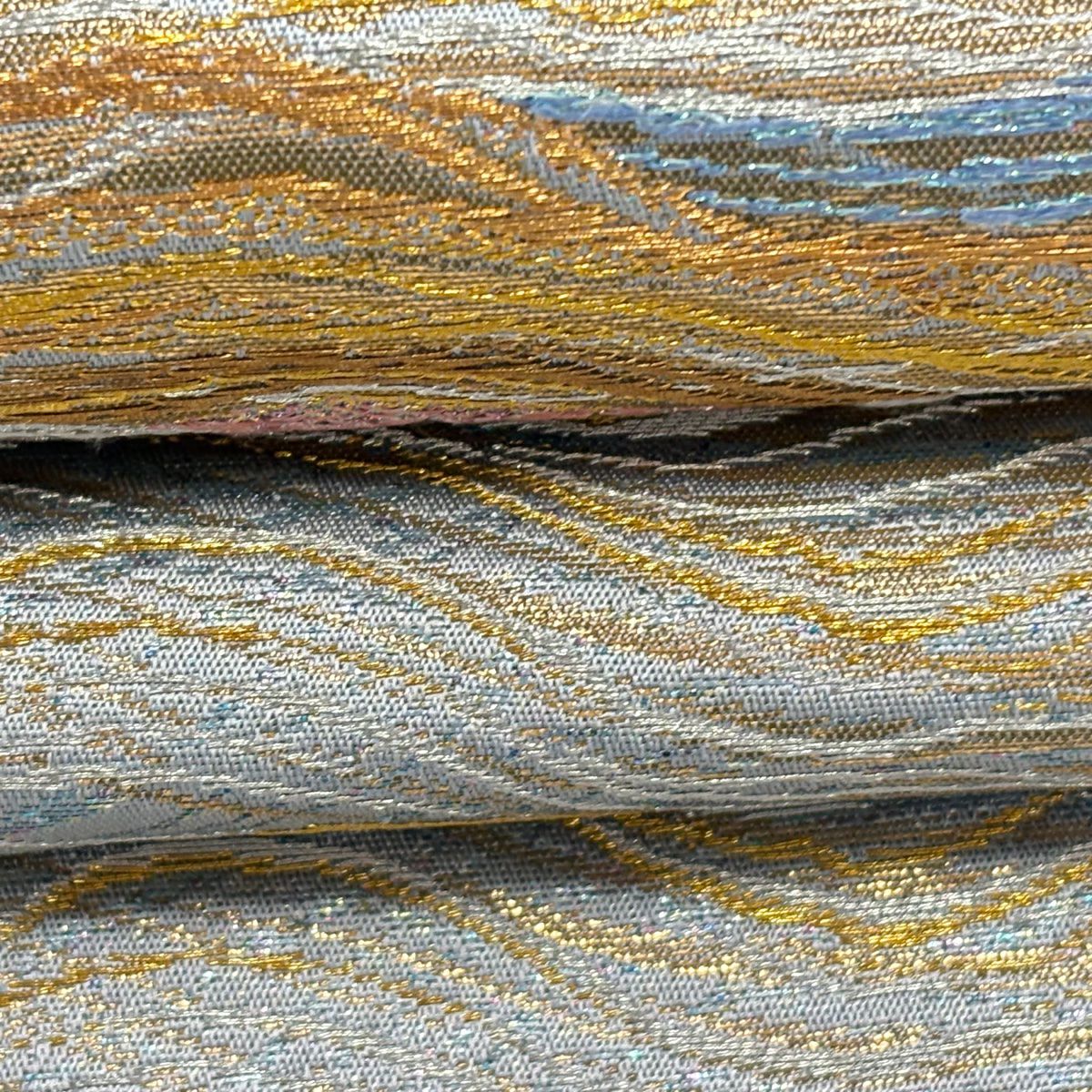 袋帯 逸品 じゅらく 落款あり 波 金銀糸 本金箔 青灰色 六通 正絹