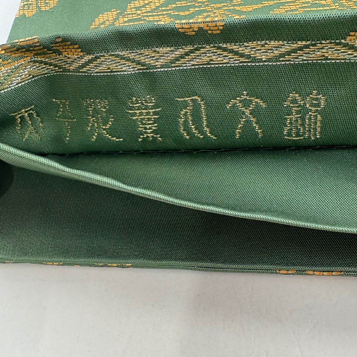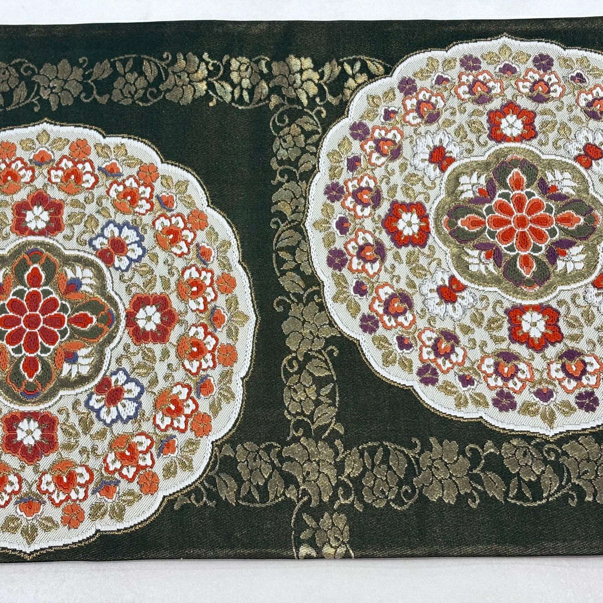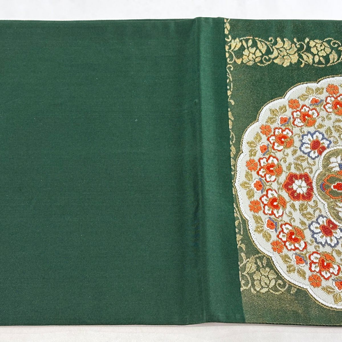 袋帯 逸品 河村織物 落款あり 上代彩華文 金糸 箔 深緑 六通 正絹