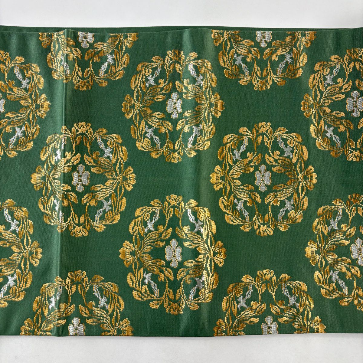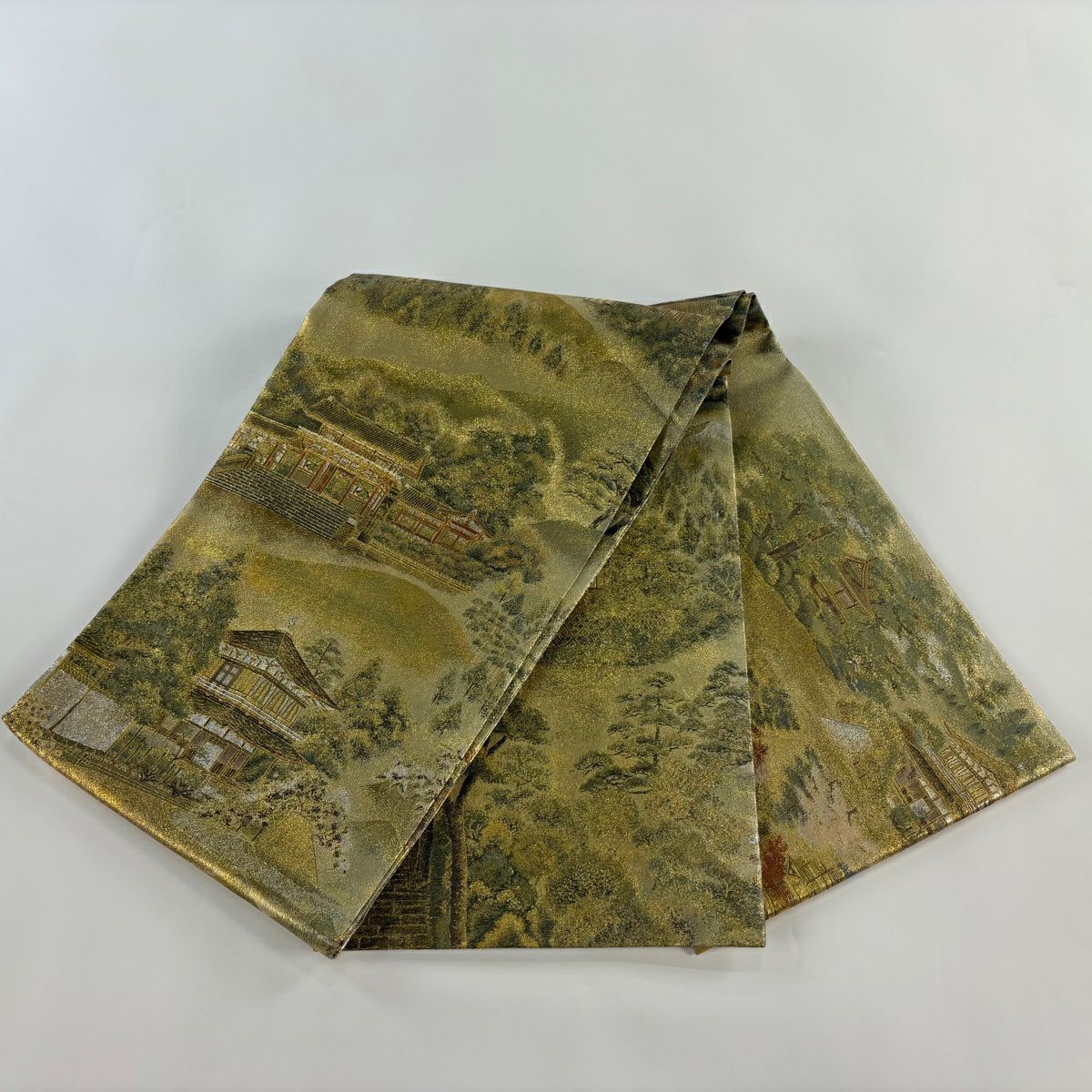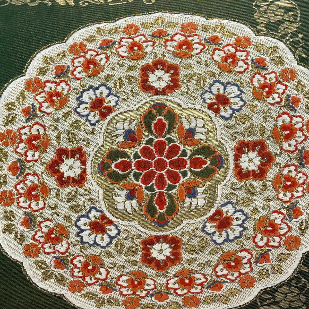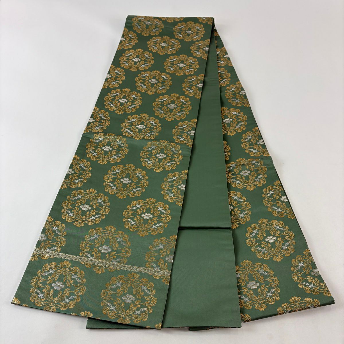 袋帯 逸品 河村織物 落款あり 上代彩華文 金糸 箔 深緑 六通 正絹