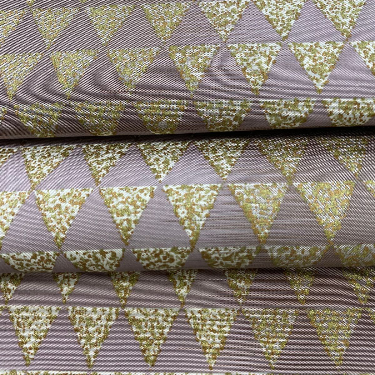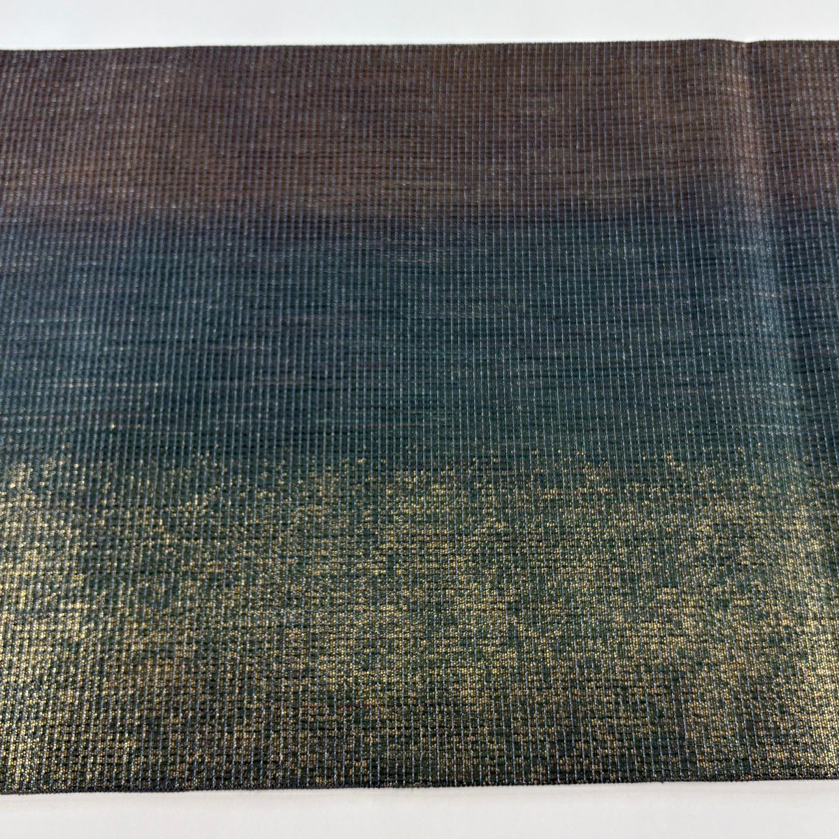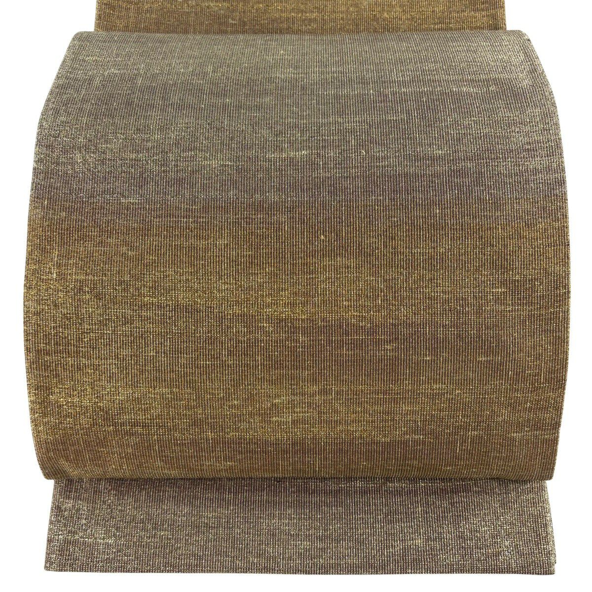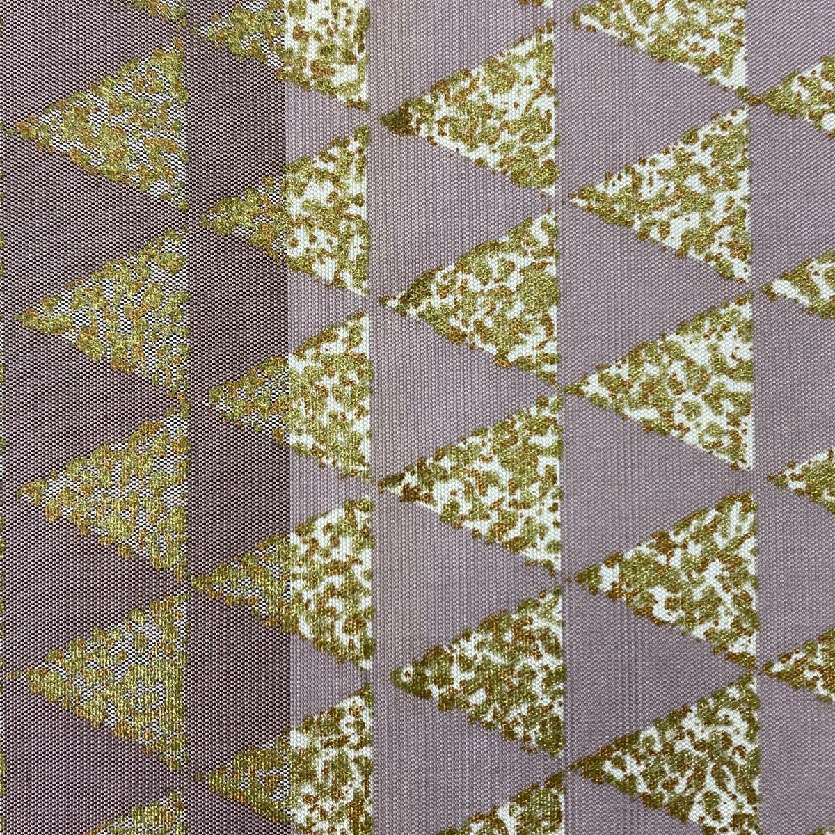 【美品】 袋帯 逸品 龍村晋 落款あり 縞 菱 箔 茶緑色 全通 正絹