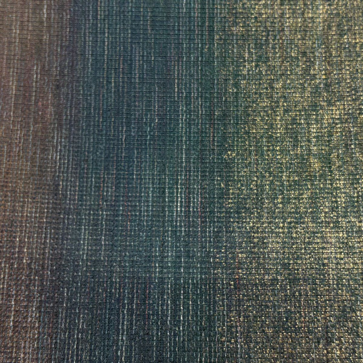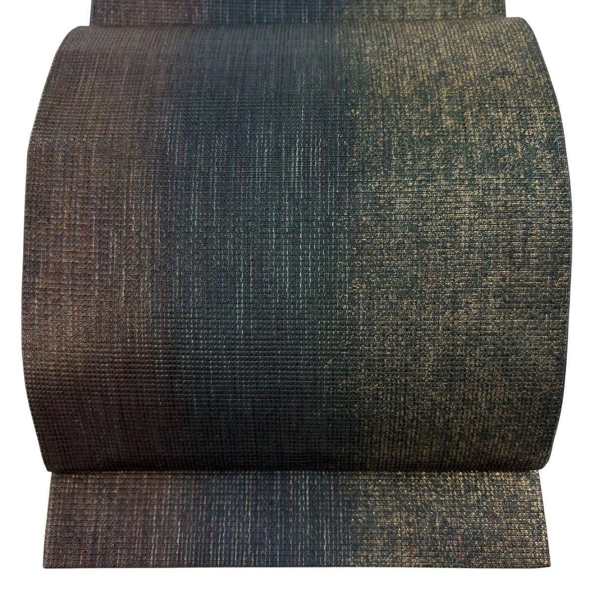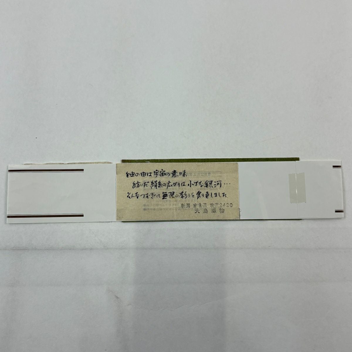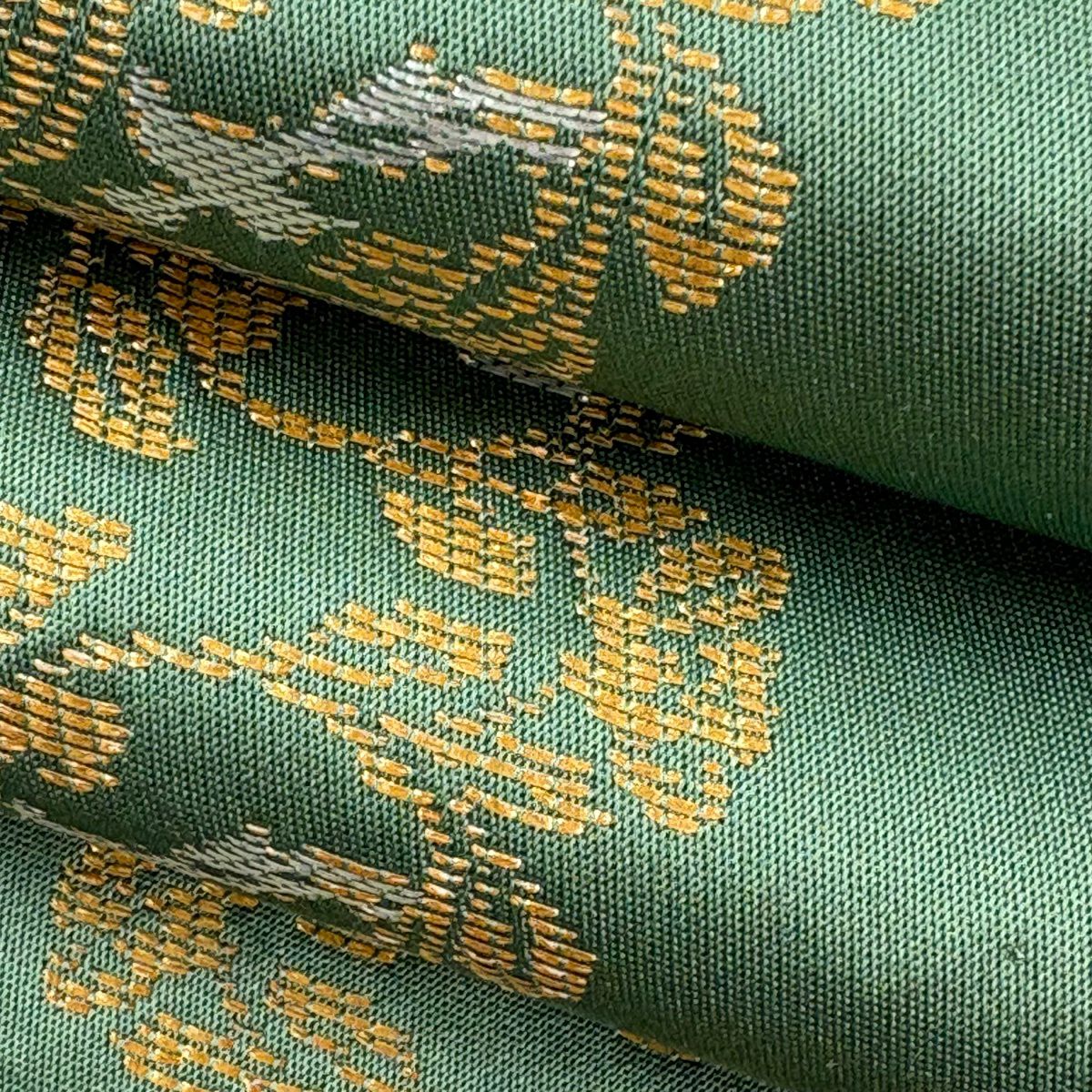 【美品】 袋帯 逸品 龍村晋 落款あり 縞 菱 箔 茶緑色 全通 正絹