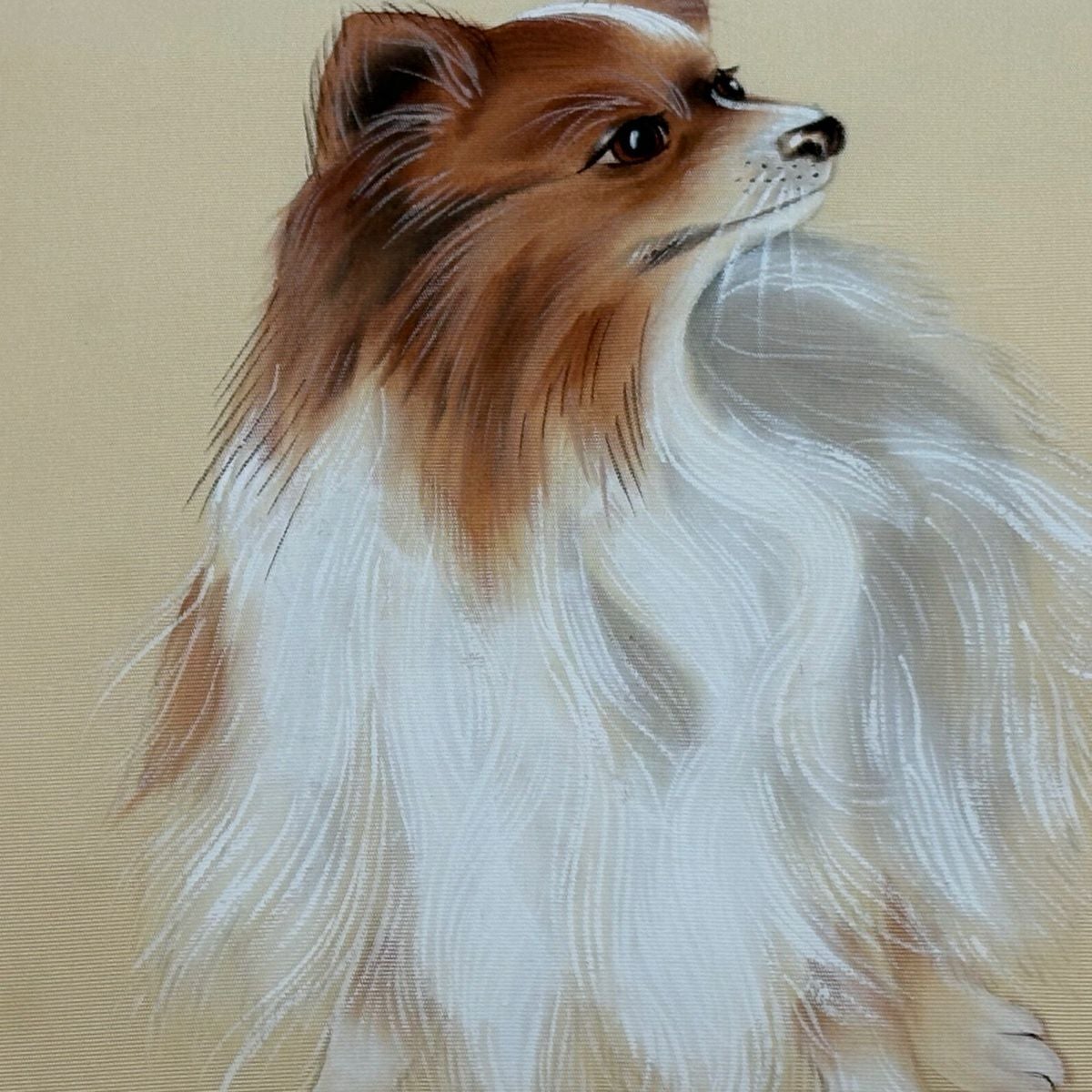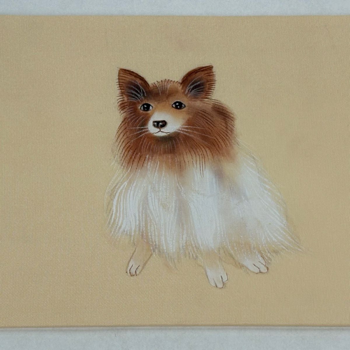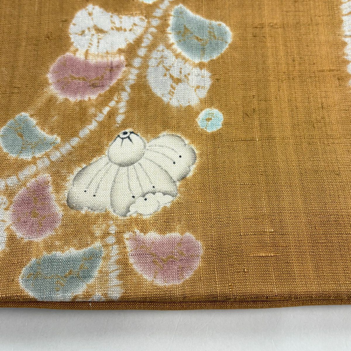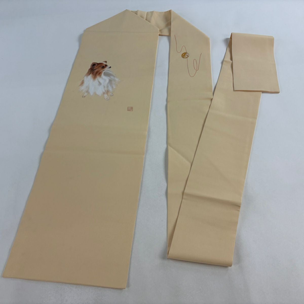 【美品】 名古屋帯 逸品 落款あり 犬 鈴 ぼかし 薄オレンジ 正絹