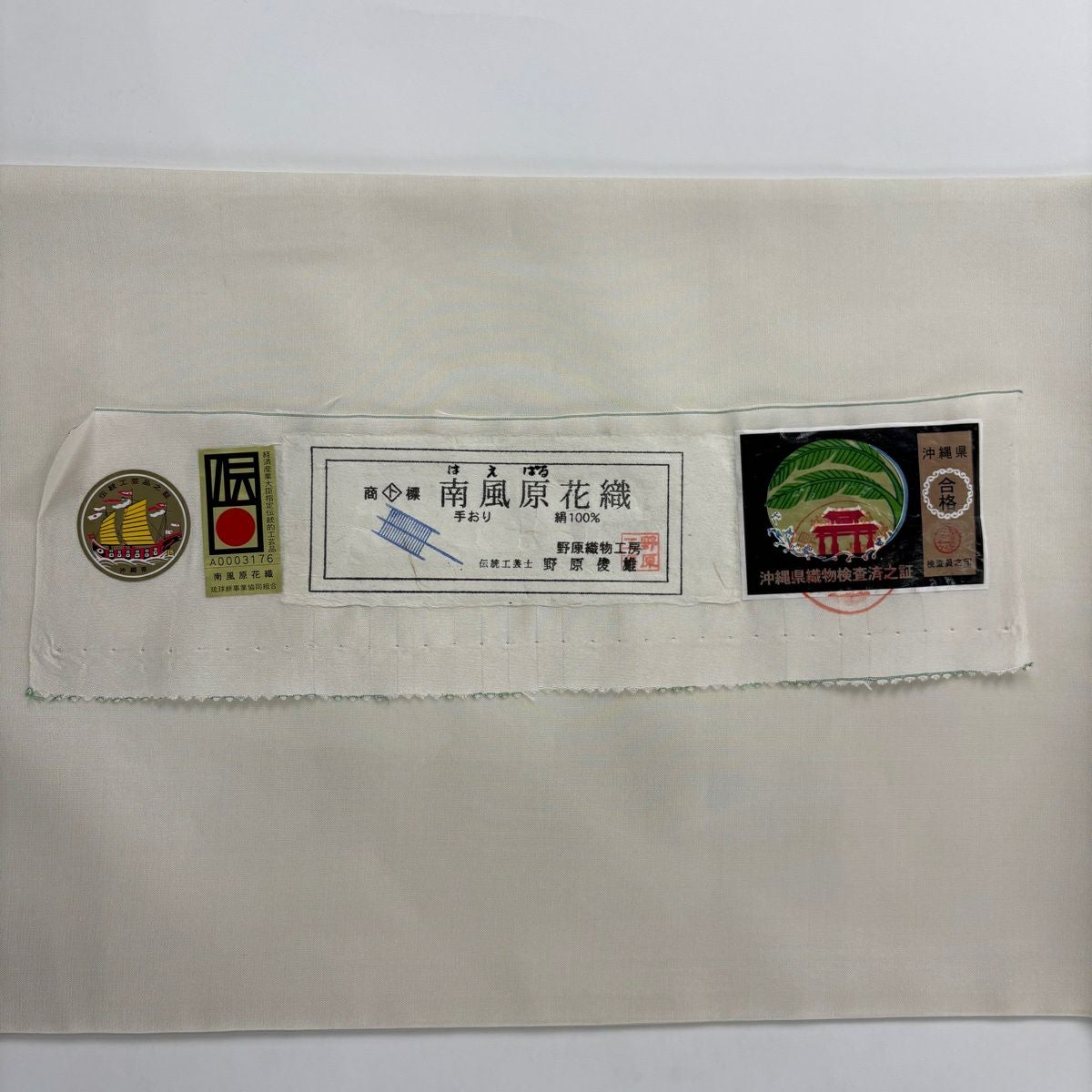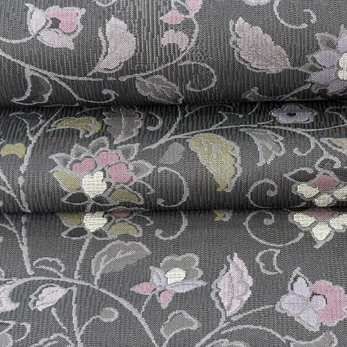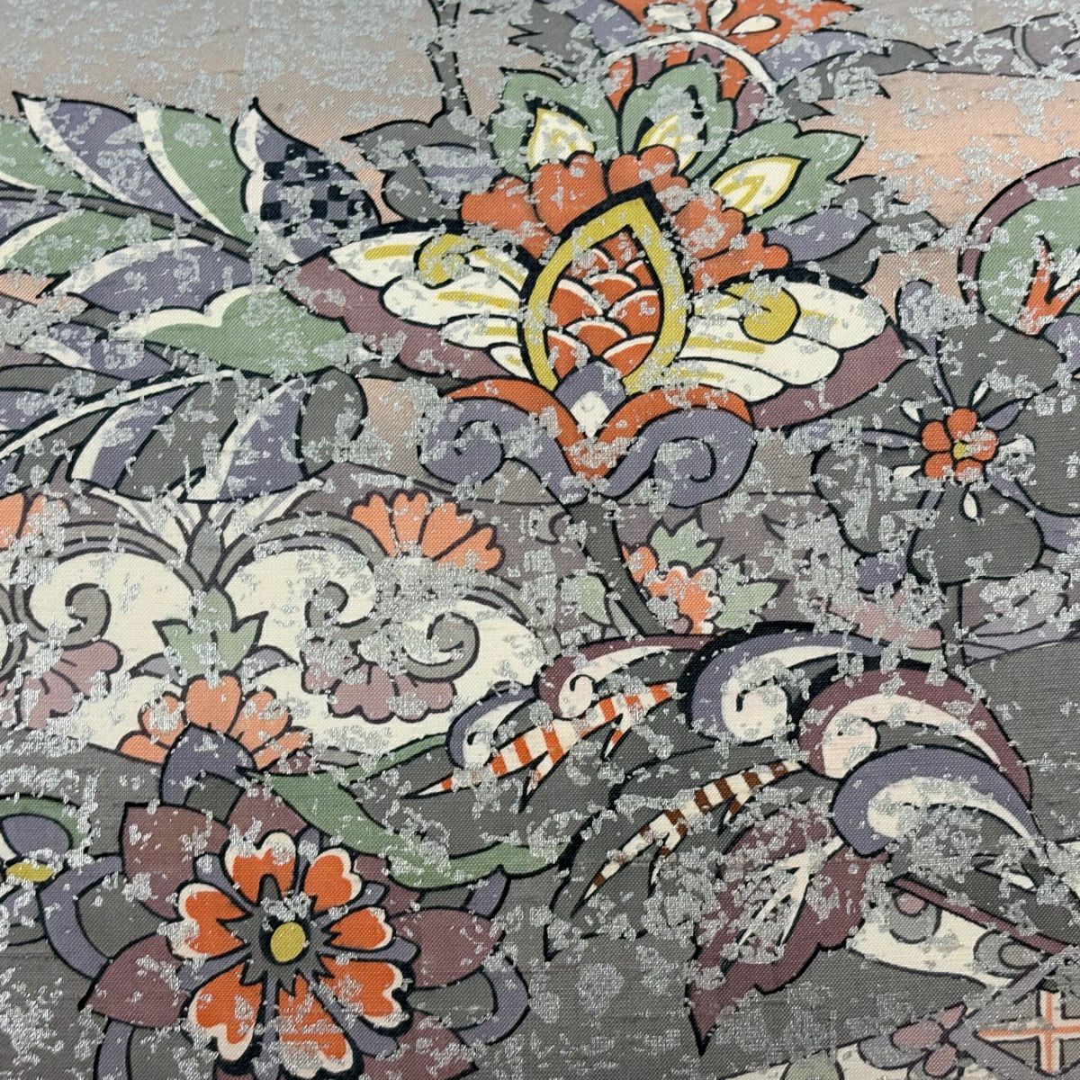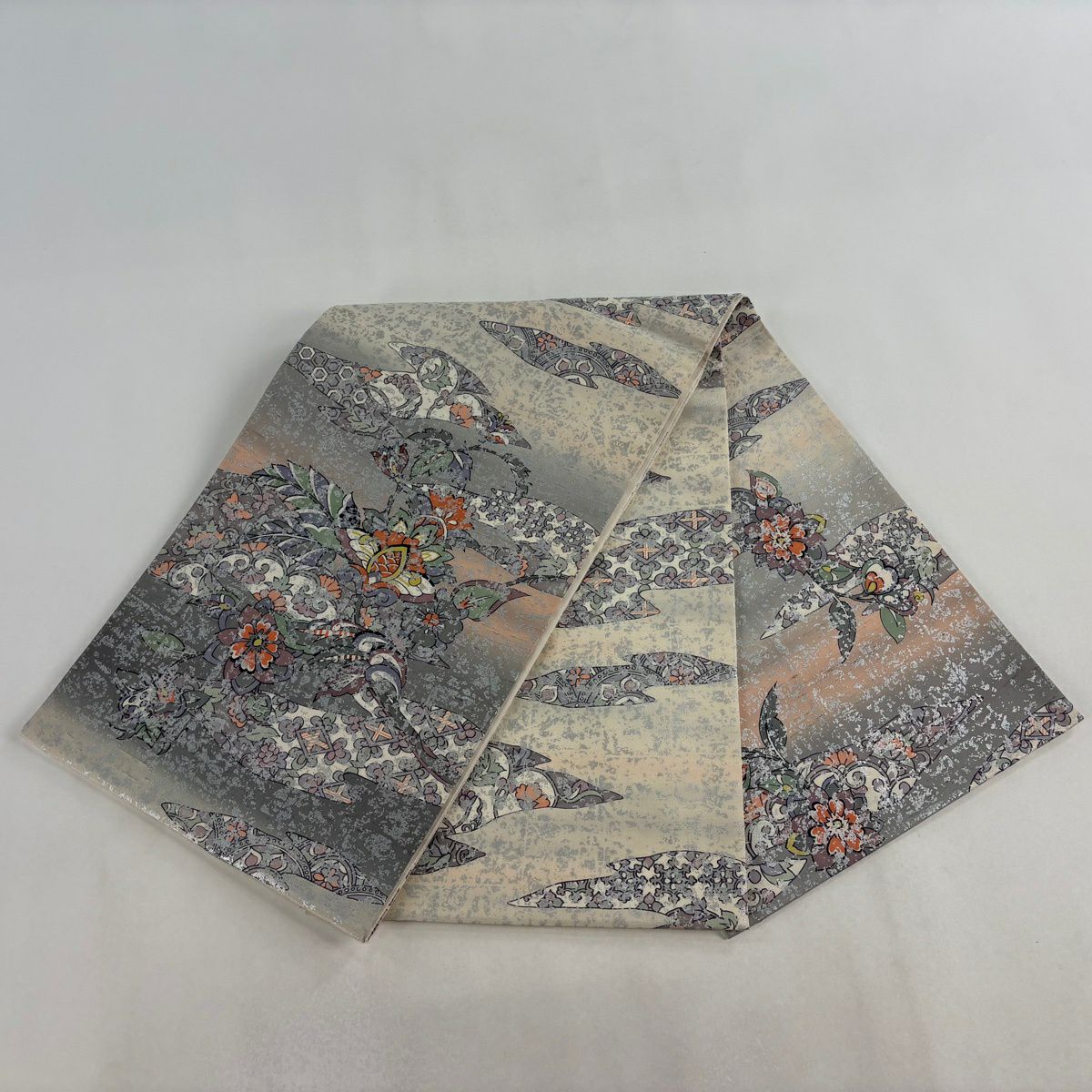 袋帯 逸品 落款あり 牛首紬 華文 花唐草 銀彩 クリーム 全通 正絹