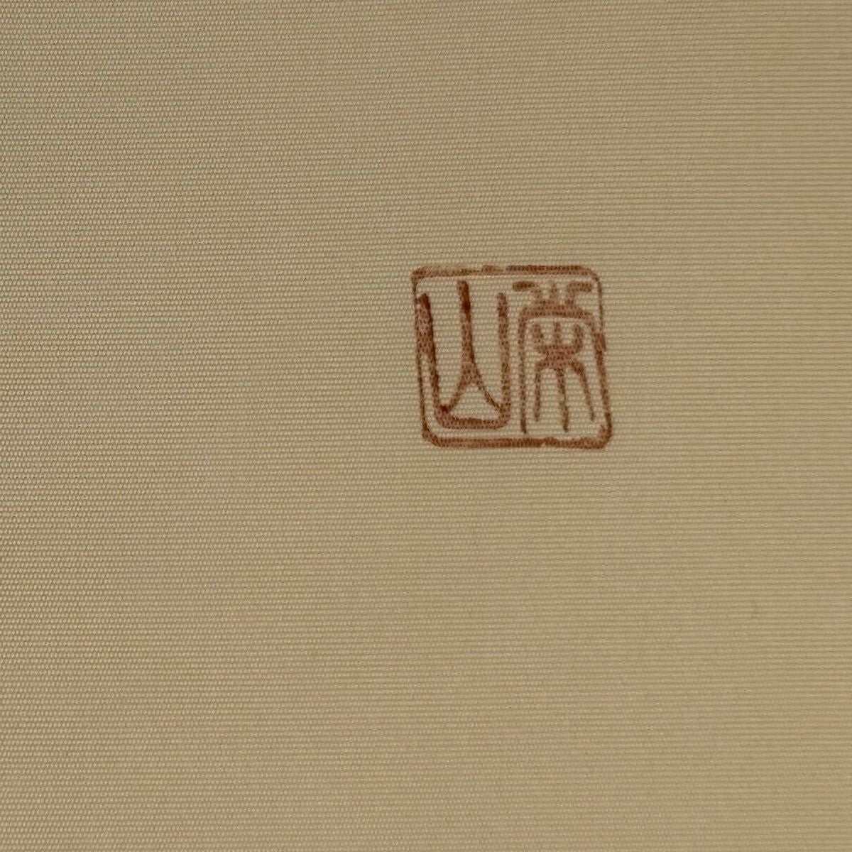 袋帯 逸品 福村廣利 落款あり 紬地 椿 桜 山吹茶色 お太鼓柄 正絹