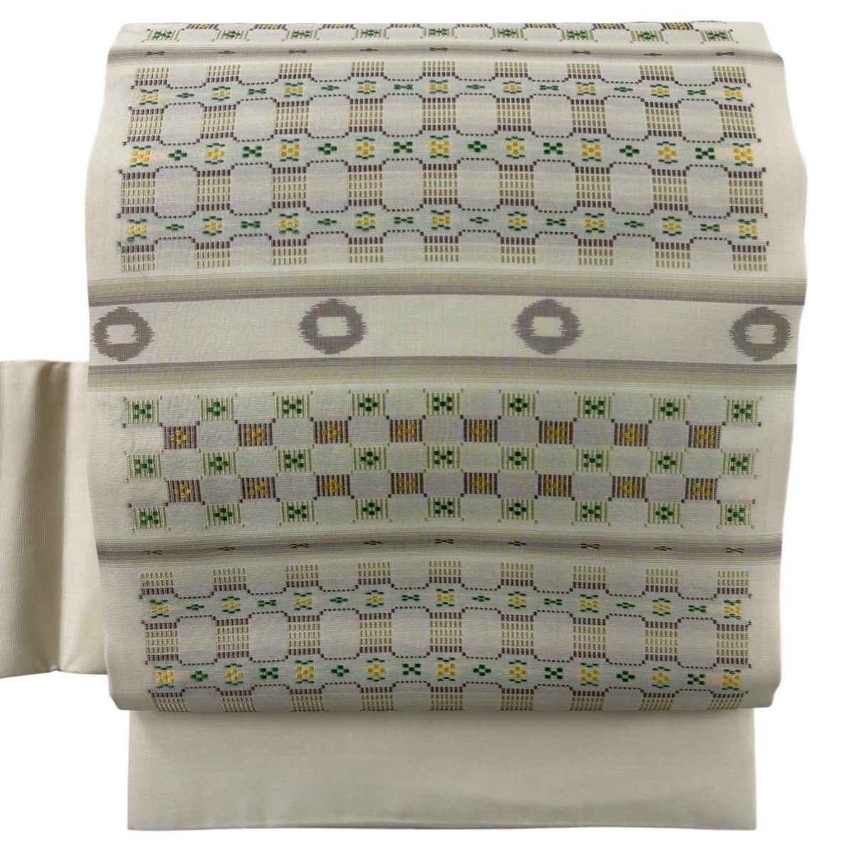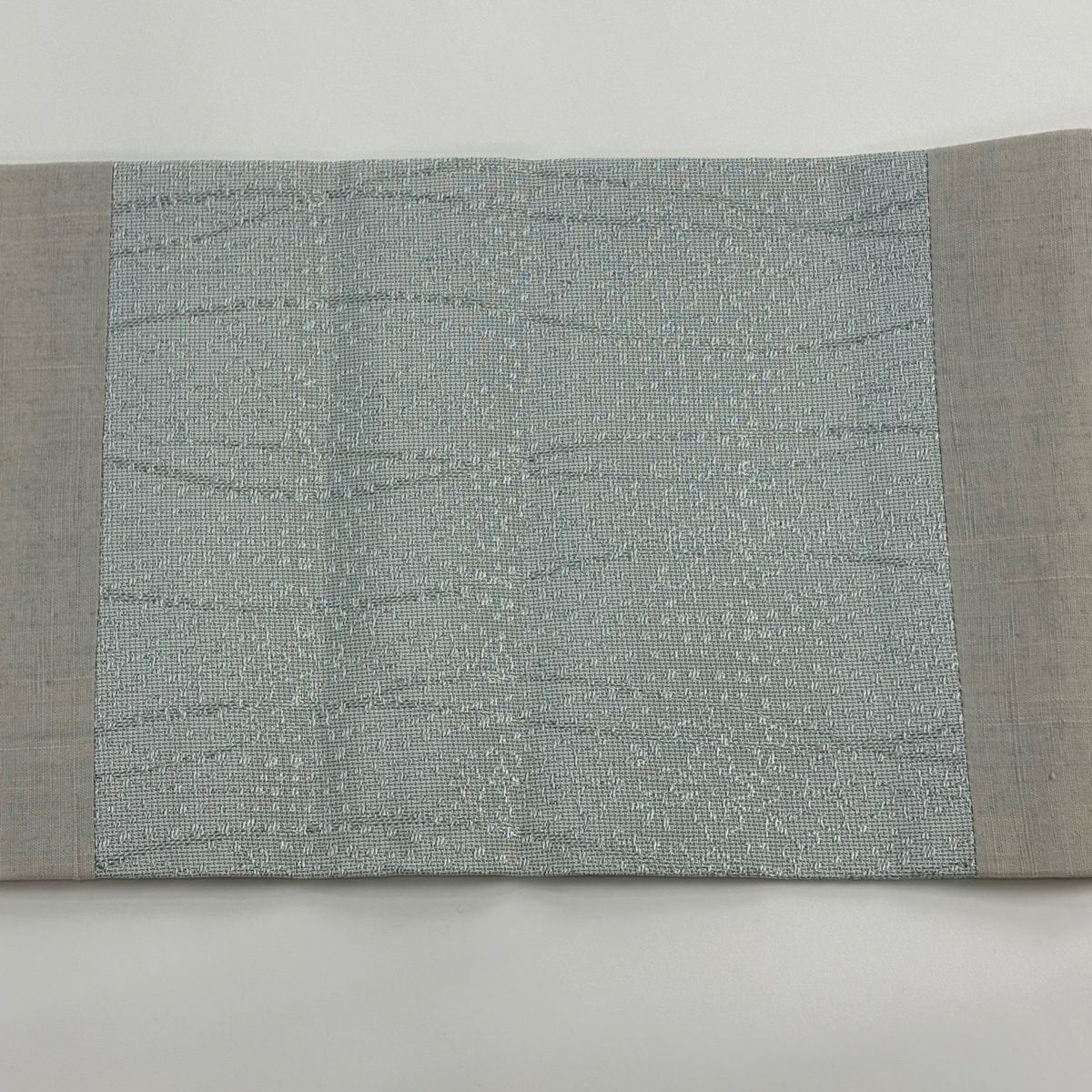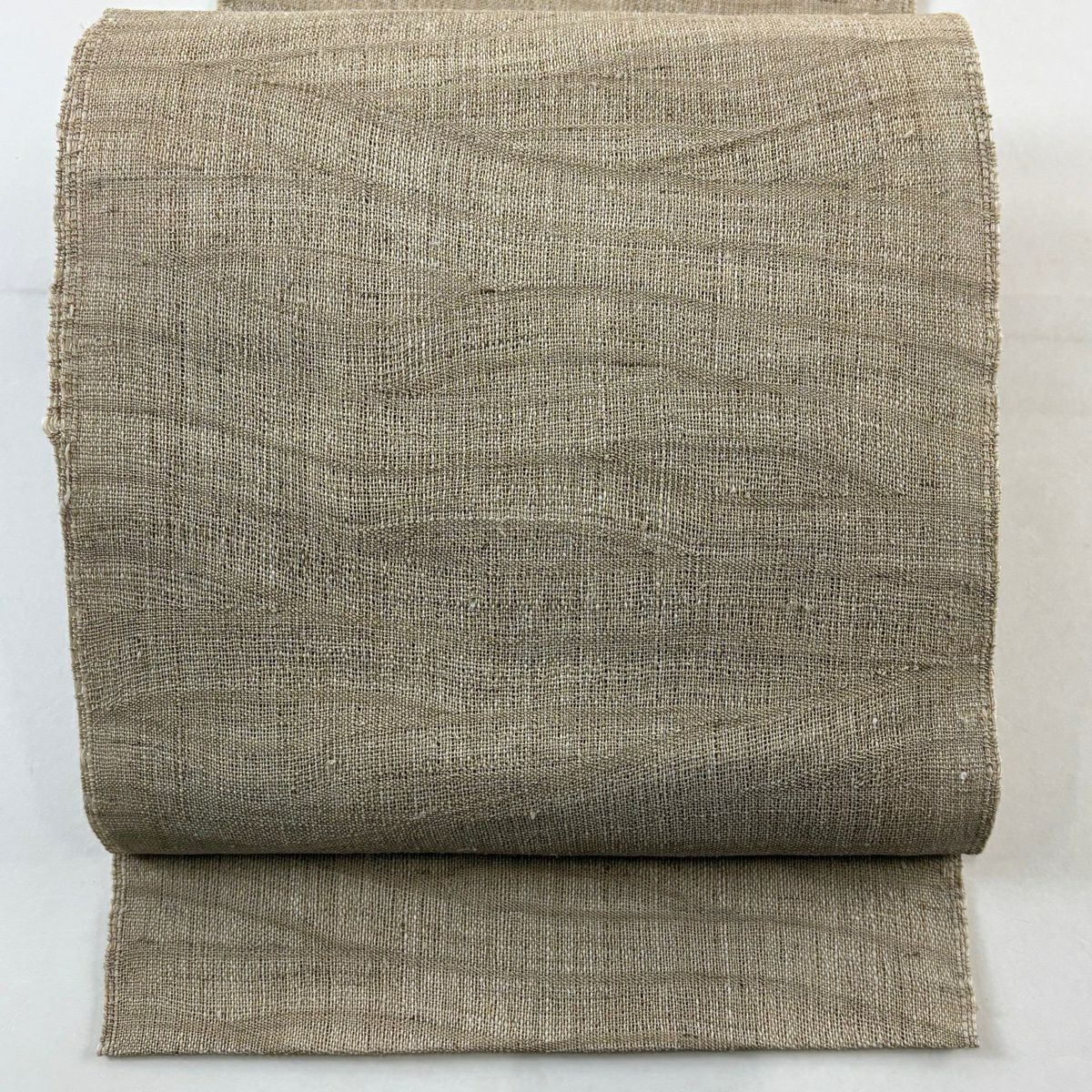 名古屋帯 逸品 夏帯 八寸名古屋帯 松葉仕立て 幾何学模様 ベージュ 麻