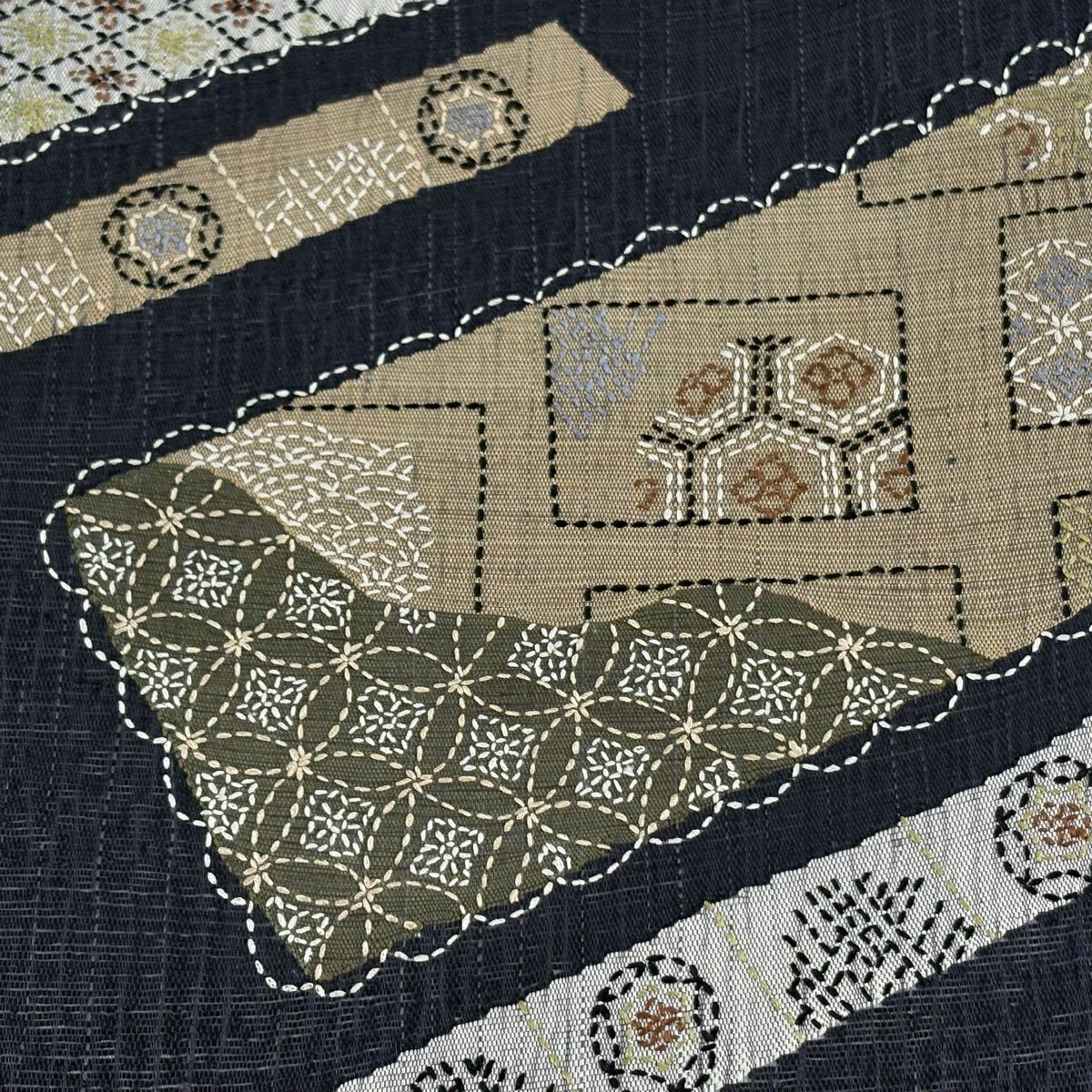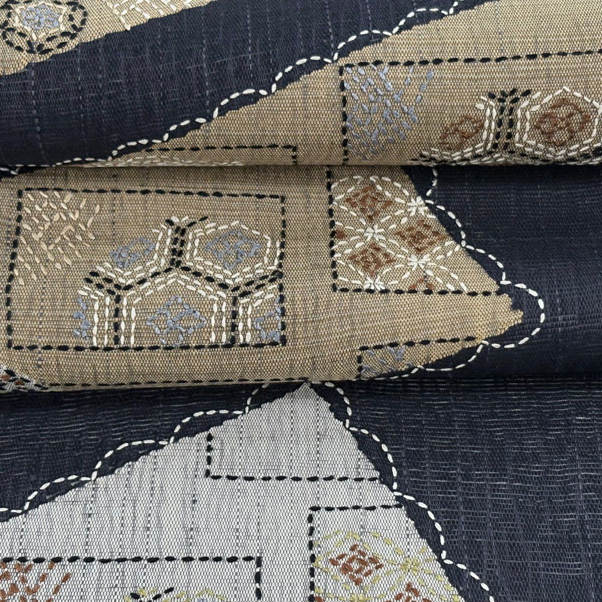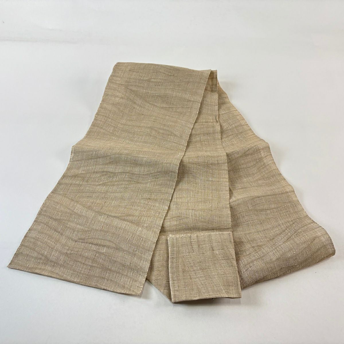 名古屋帯 逸品 夏帯 八寸名古屋帯 松葉仕立て 幾何学模様 ベージュ 麻