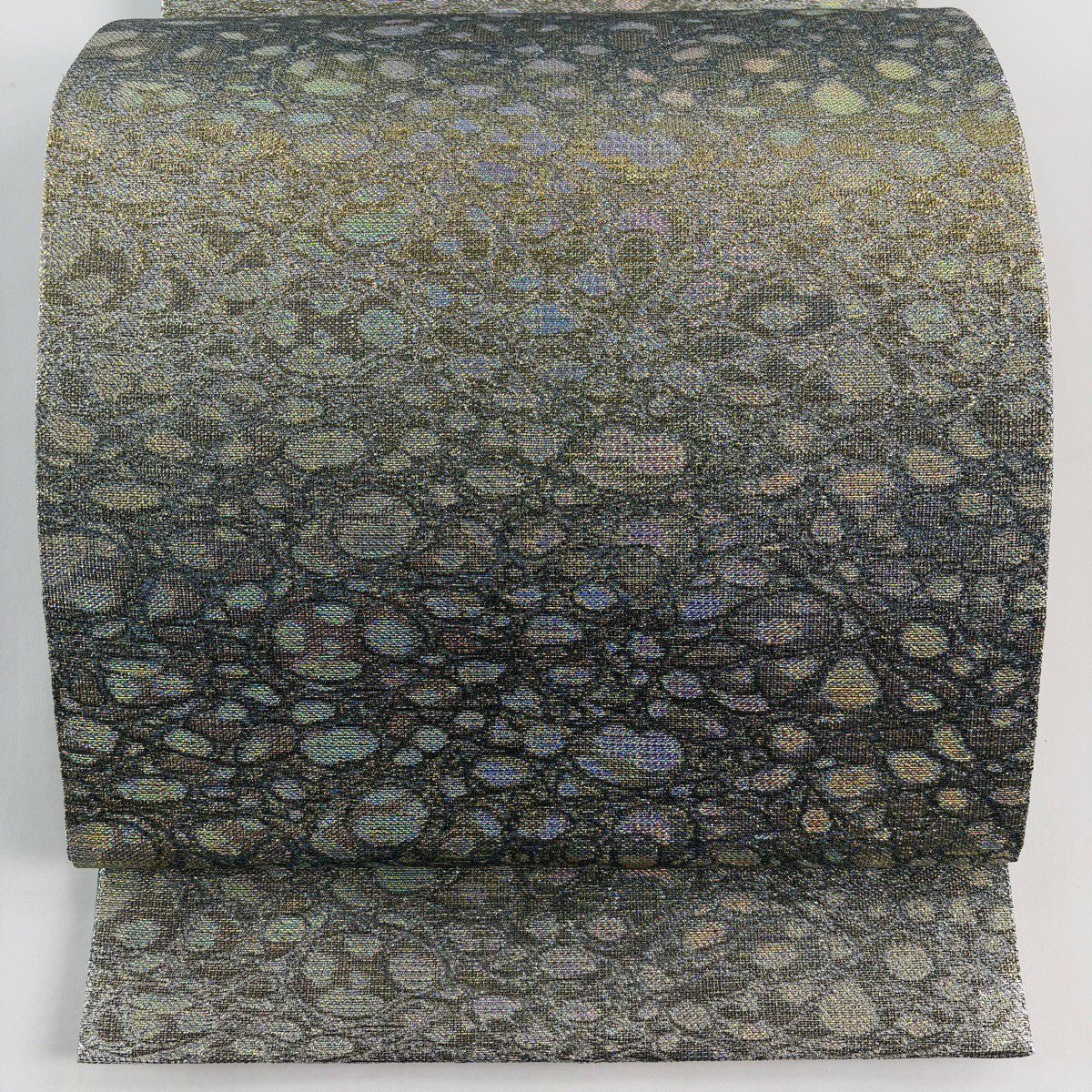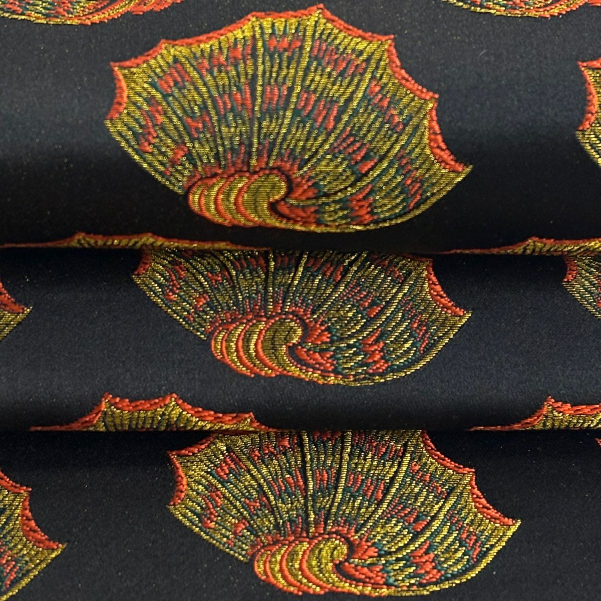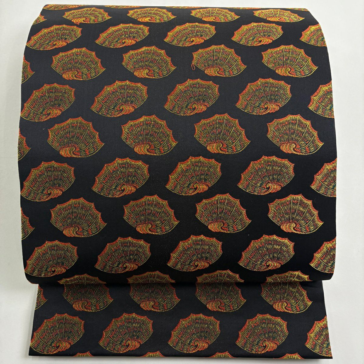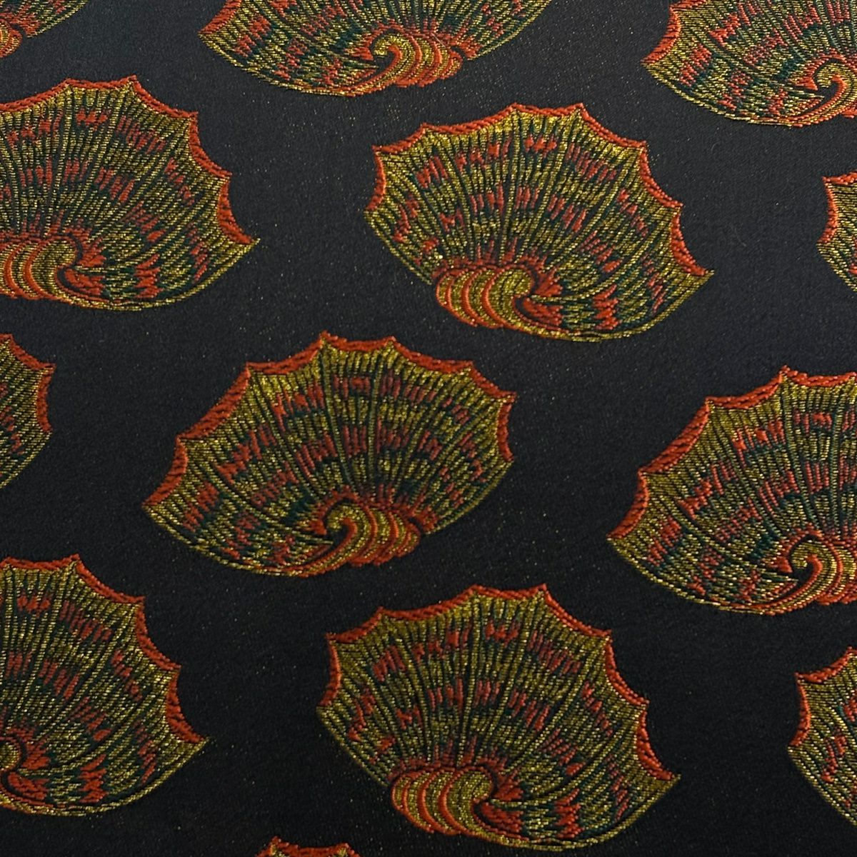 【美品】 開き名古屋帯 逸品 龍村美術織物 彩貝文 金糸 箔 黒 正絹