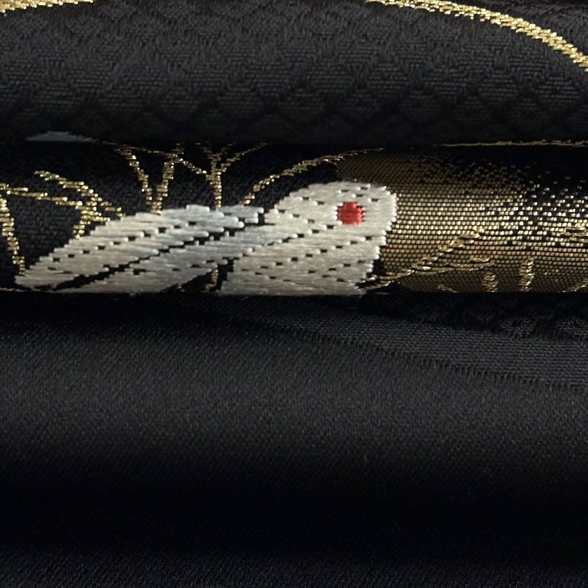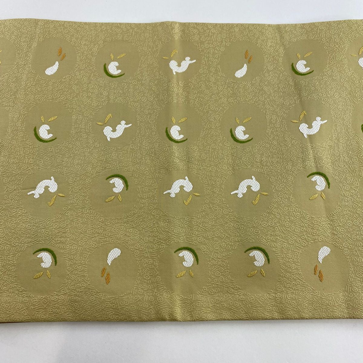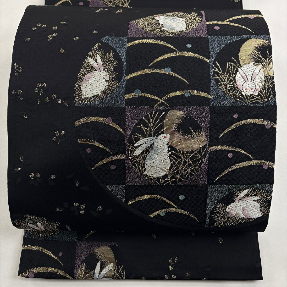 【美品】 袋帯 逸品 萬葉染 うさぎ 露芝 金糸 刺繍 黒 六通 正絹