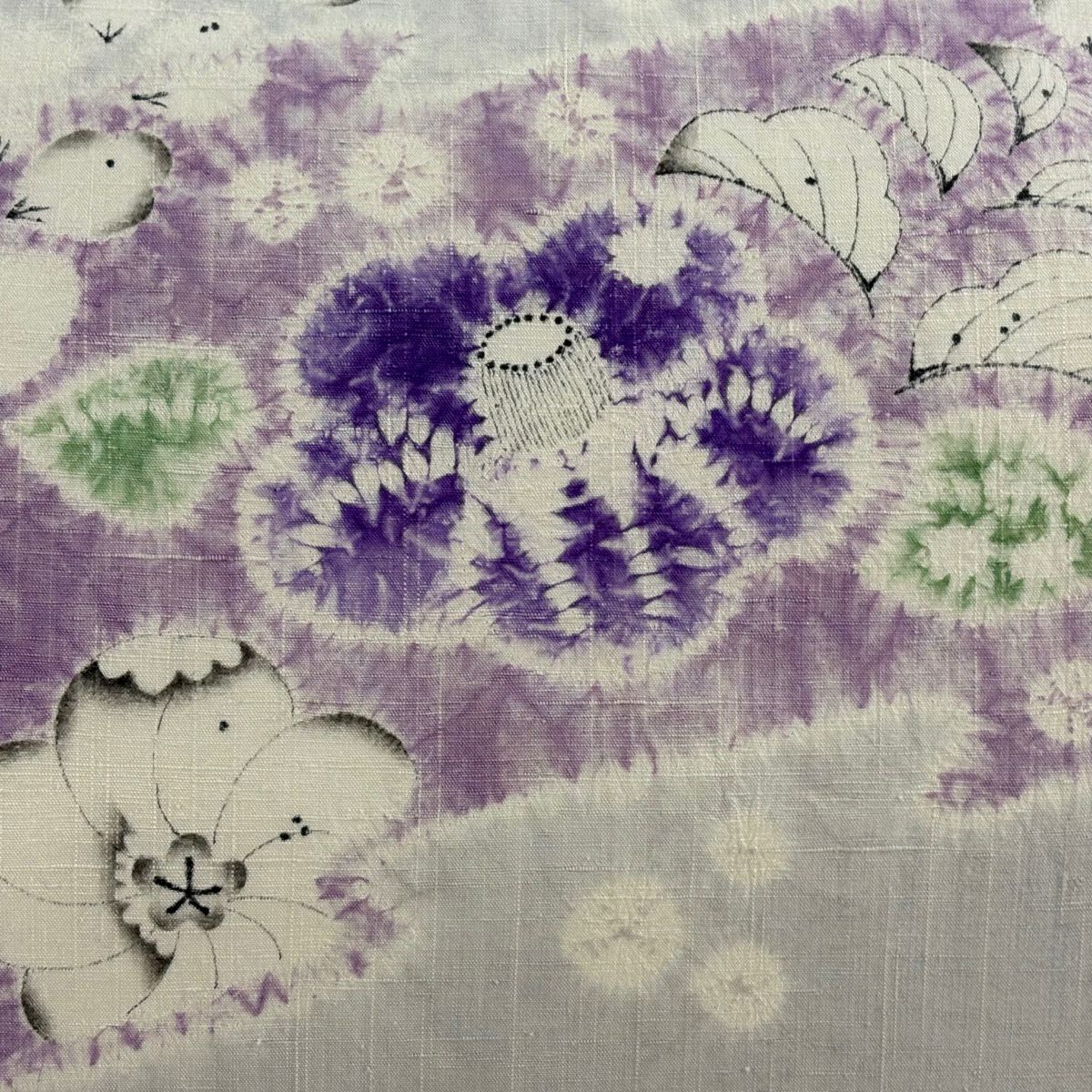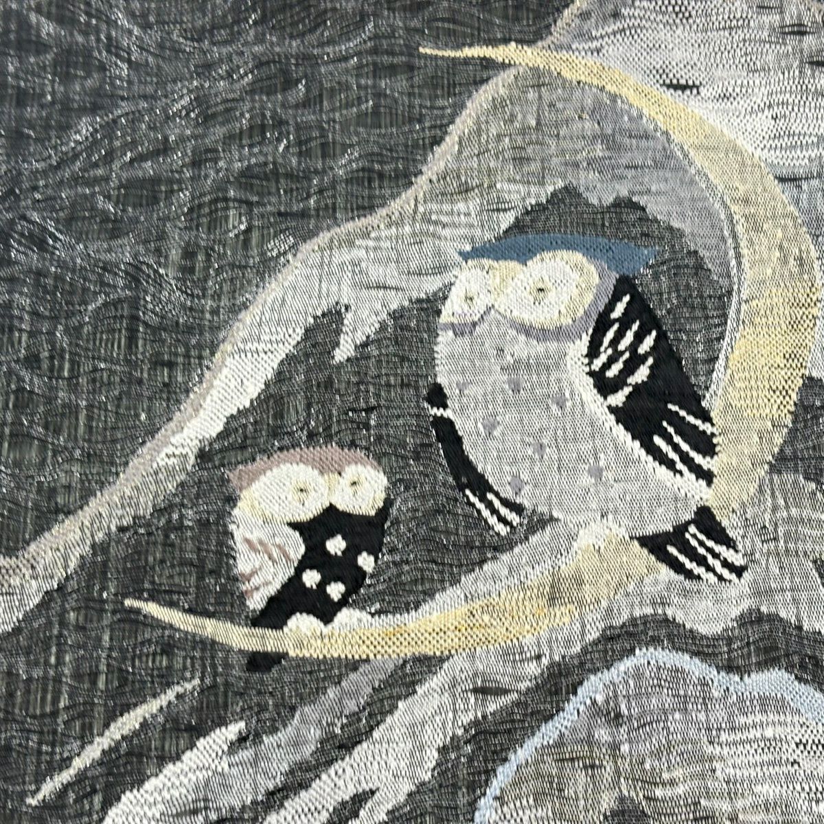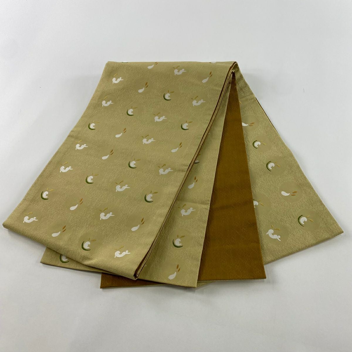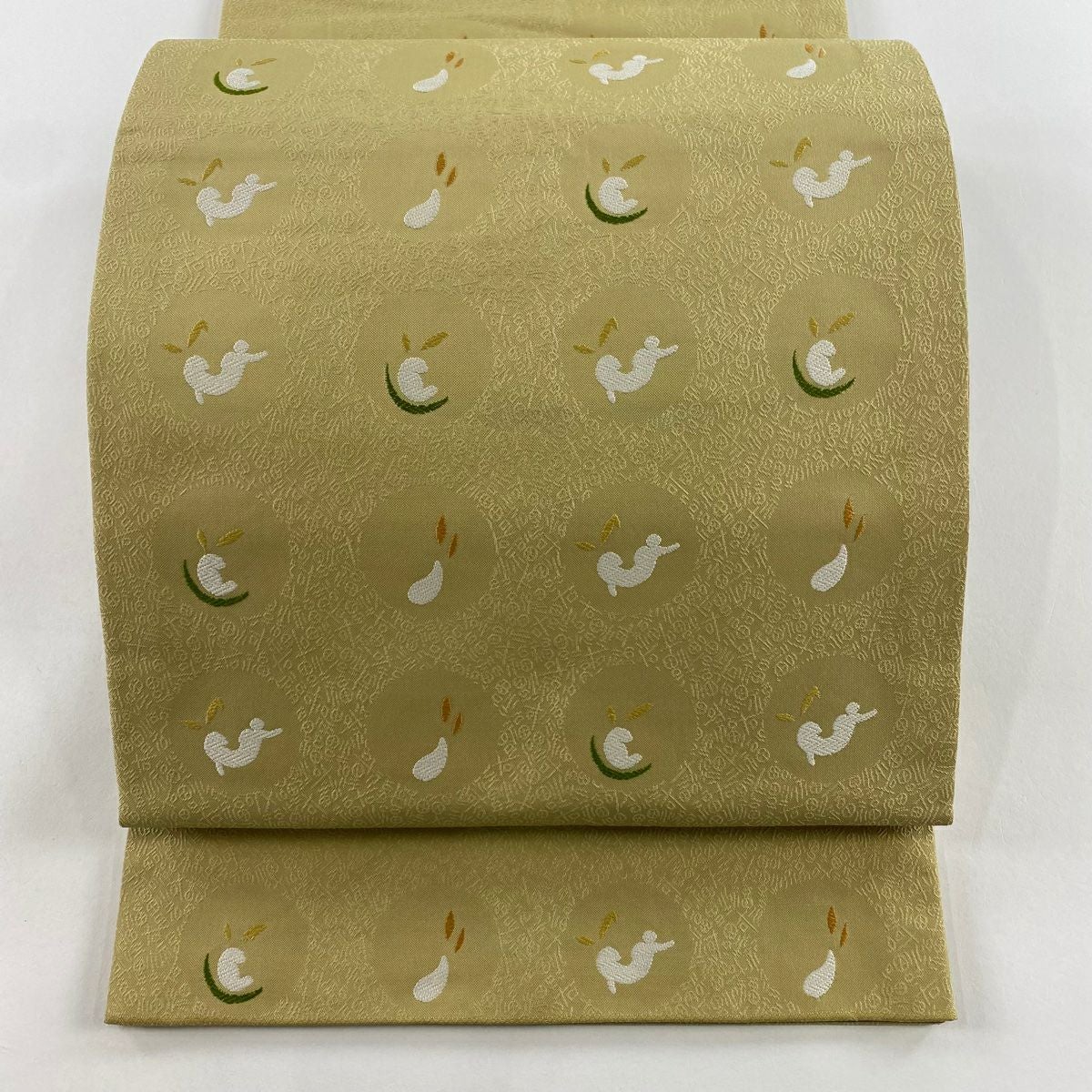 【美品】 袋帯 逸品 萬葉染 うさぎ 露芝 金糸 刺繍 黒 六通 正絹