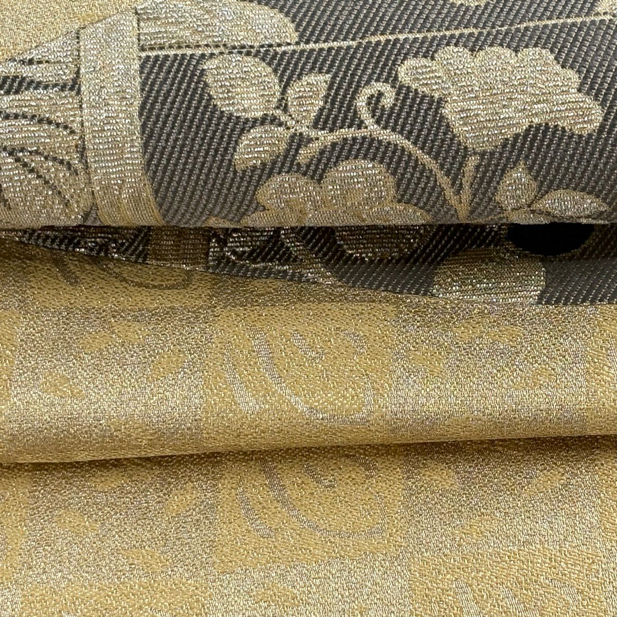 【美品】 袋帯 逸品 手先二通り 華文 花蝶 箔 金色 お太鼓柄 正絹