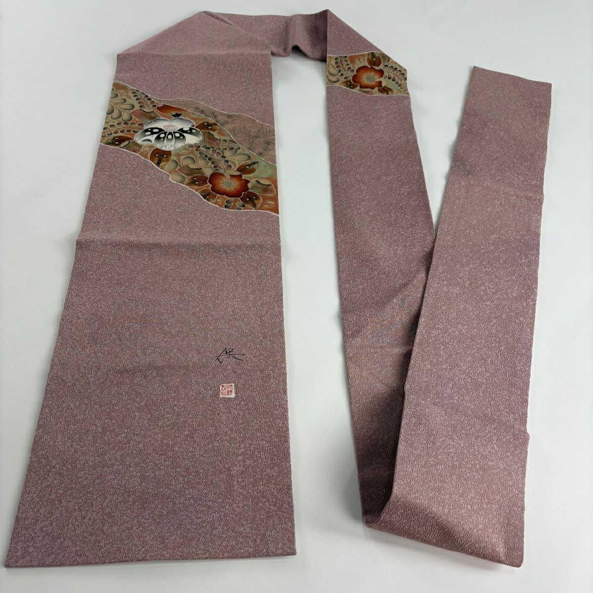 【在庫一掃】 名古屋帯 逸品 落款あり 水野保 辻が花 ピンク 正絹