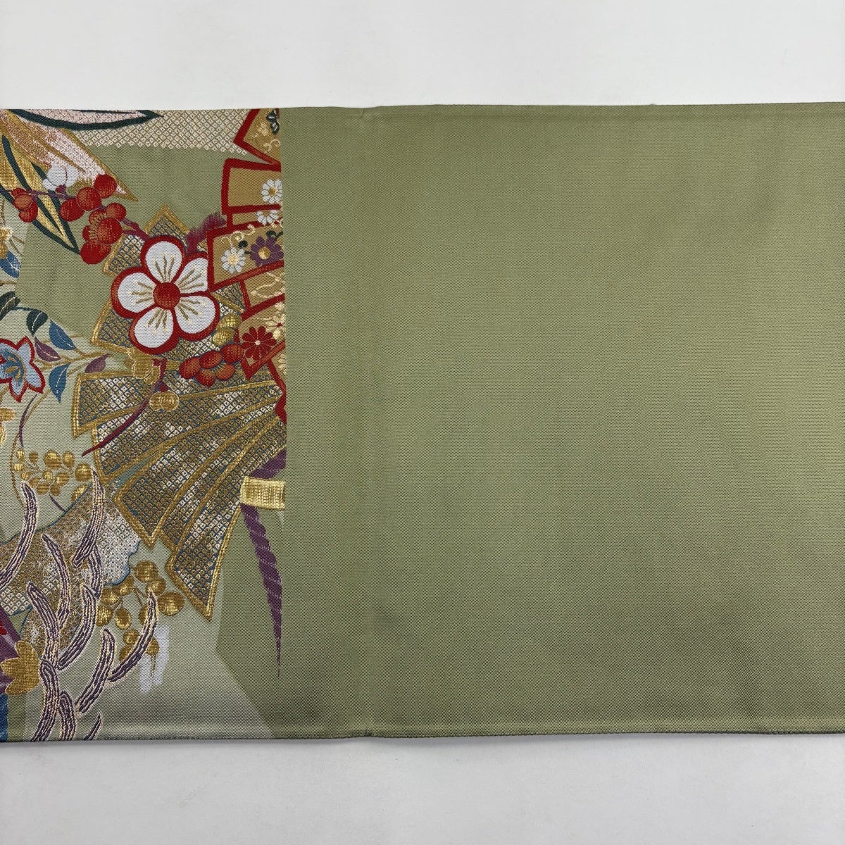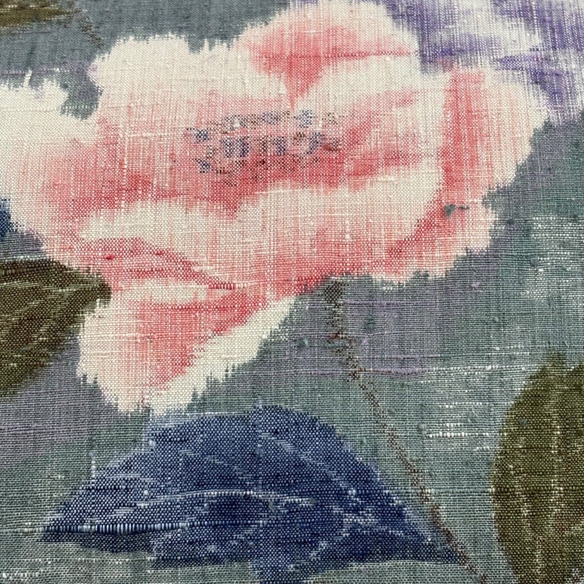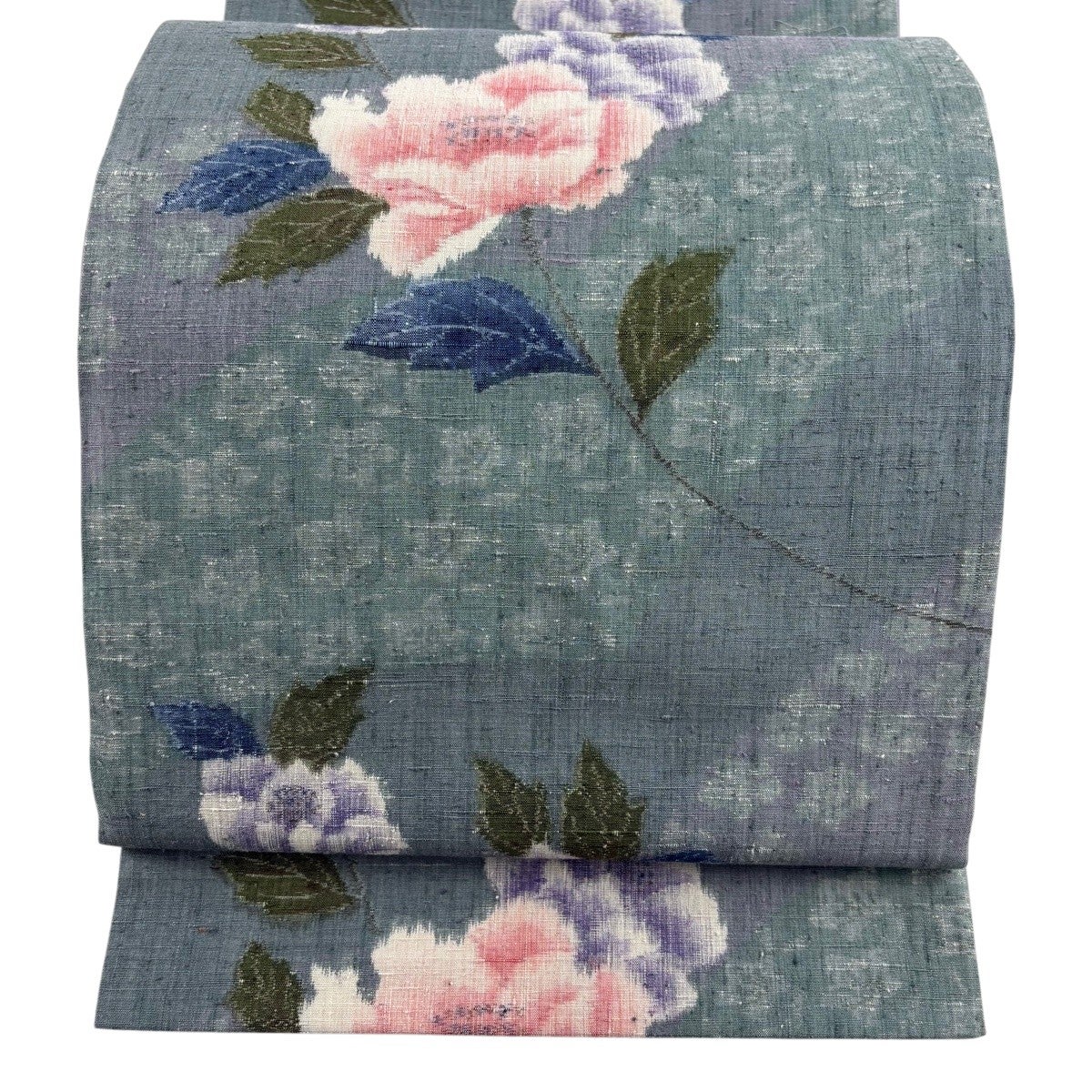 【美品】 袋帯 逸品 証紙あり はたおり娘 牡丹 桔梗 薄緑 全通 正絹